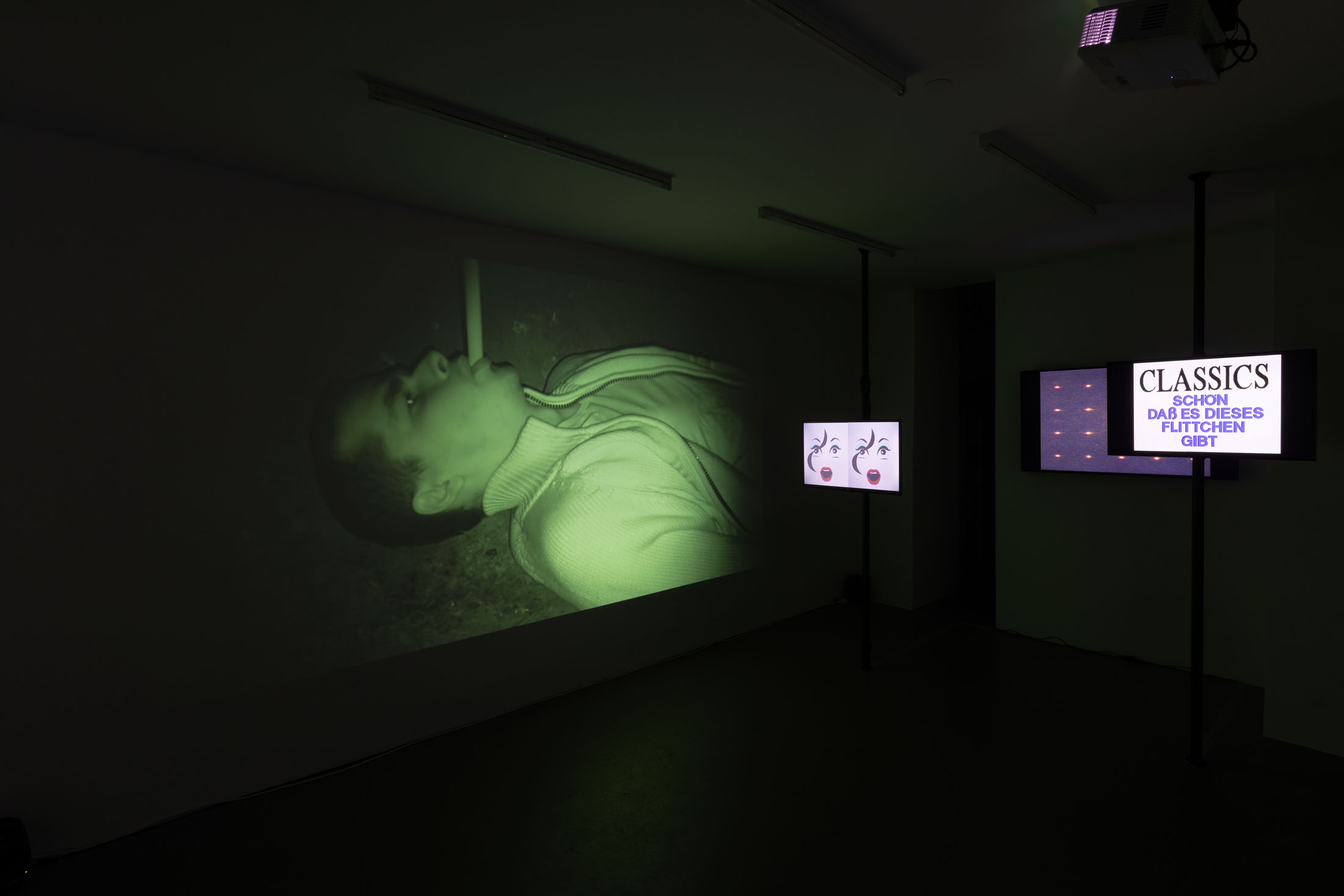 Van der Linden’s narcissistic, perfectionist cosmos pays homage to the most diverse forms of the entertainment industry: to Disney’s early cartoons from the late 1920s such as Silly Symphonies, and his groundbreaking feature films such as Snow White and the Seven Dwarfs (1937) or Fantasia (1940), to vogue and voguing, models and runways, commercials and Busby Berkeley musicals from the 1930s and 1940s, jingles and muzak. In her Depressiva trilogy (W+me, 2010, Skype, 2011, and Subterranean, 2012), van der Linden addresses the after-effects of narcissistic overdoses: cold turkey, depression, panic, paralysis – which she stages like screwball comedies or as slapstick chamber plays.