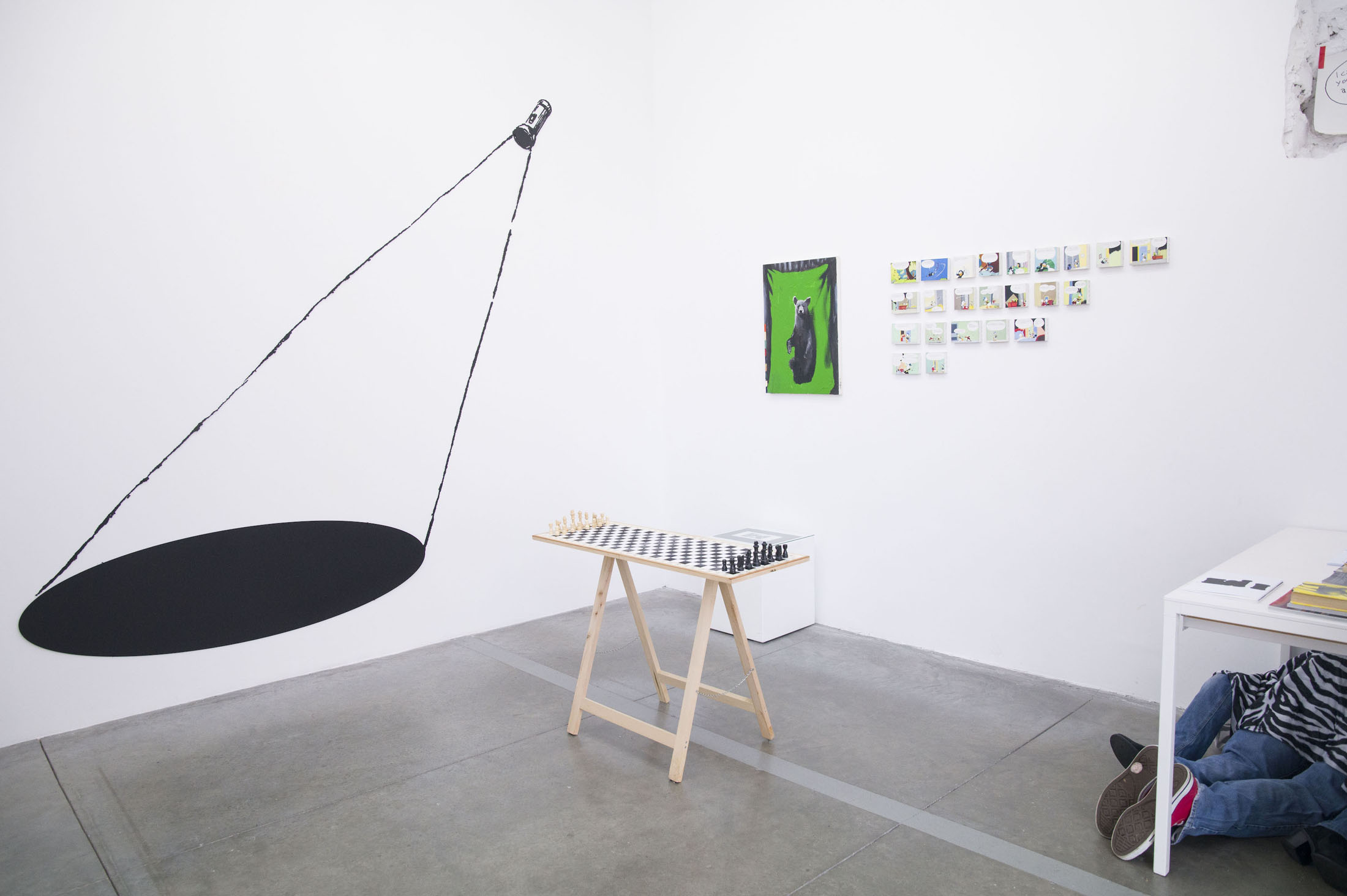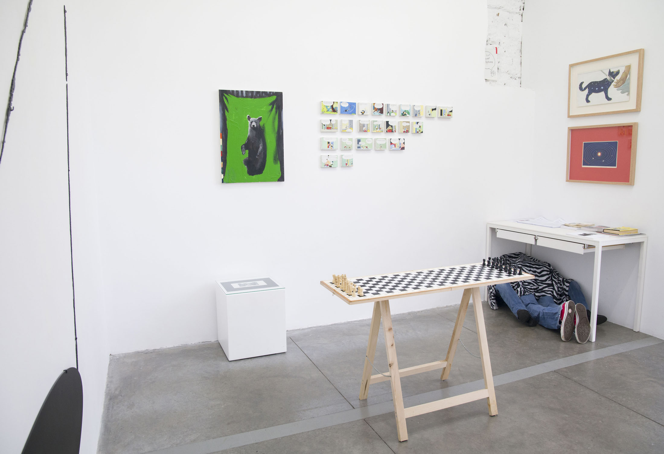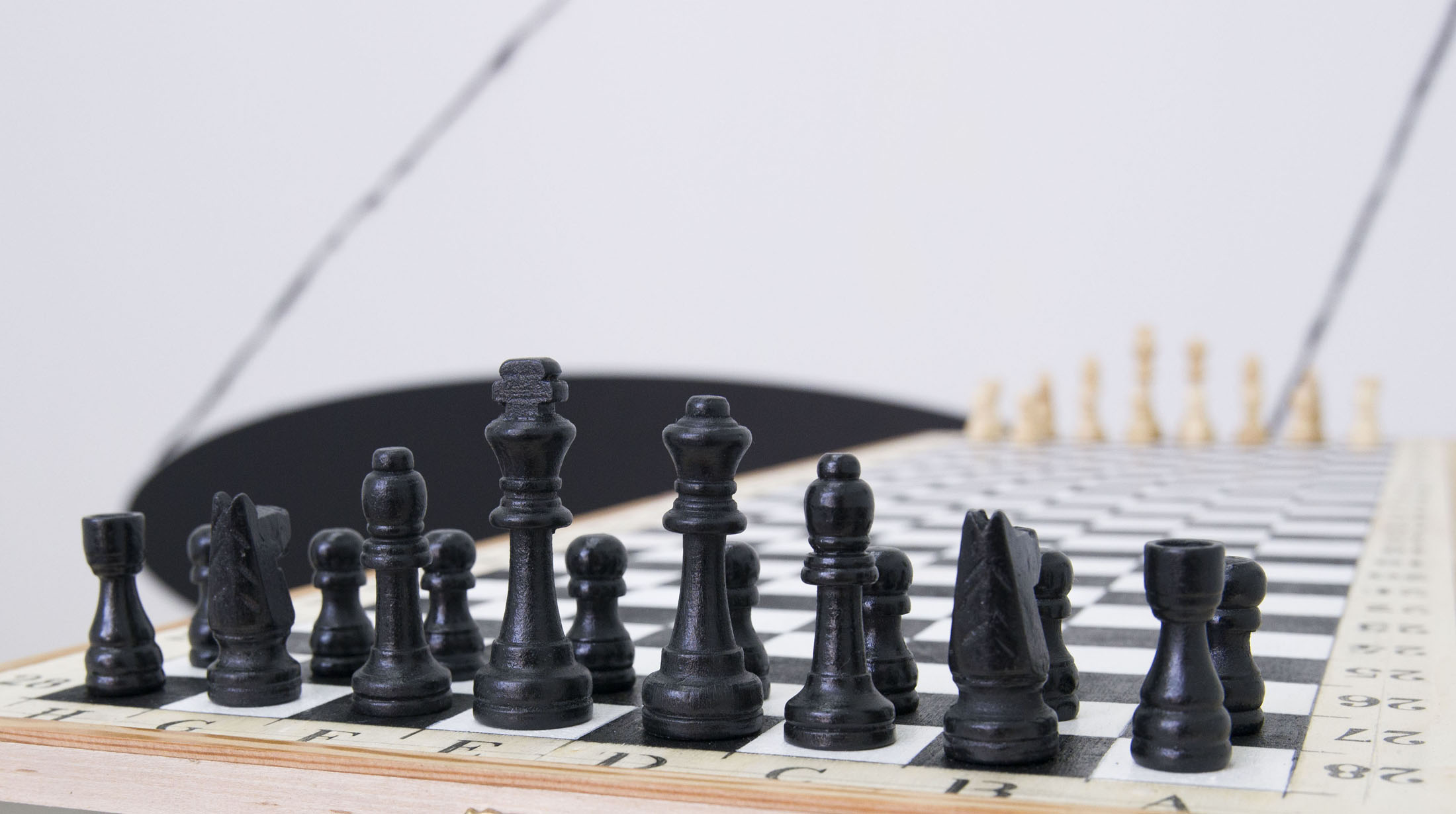 The exhibition includes two works by Luchezar Boyadjiev. The previously mentioned drawing titled after Tom Clancy’s well-known spy thriller “The Sum of All Fears” (2012), in which Marcel Duchamp sits before a black square instead of a chessboard, connecting the notion of the “black square” in painting with the idea of the “endspiel” in chess. The drawing visualizes the moment when an ending becomes a new beginning, touching on fears associated with the end – of art, of the world, of life, of the author. He also presents a new version of his legendary work “Intimate Endspiel (a domestic version of “Endspiel: The Good, the Bad and the Lonely”, 2012)” (2018–2025). Also inspired by Duchamp – who, at the end of his life, wrote a book on the final phase of the chess game – the work enables and anticipates a game without time limits. The message is clear: art has no end; there will always be someone who wants to play and participate, and someone who wants to watch the game.