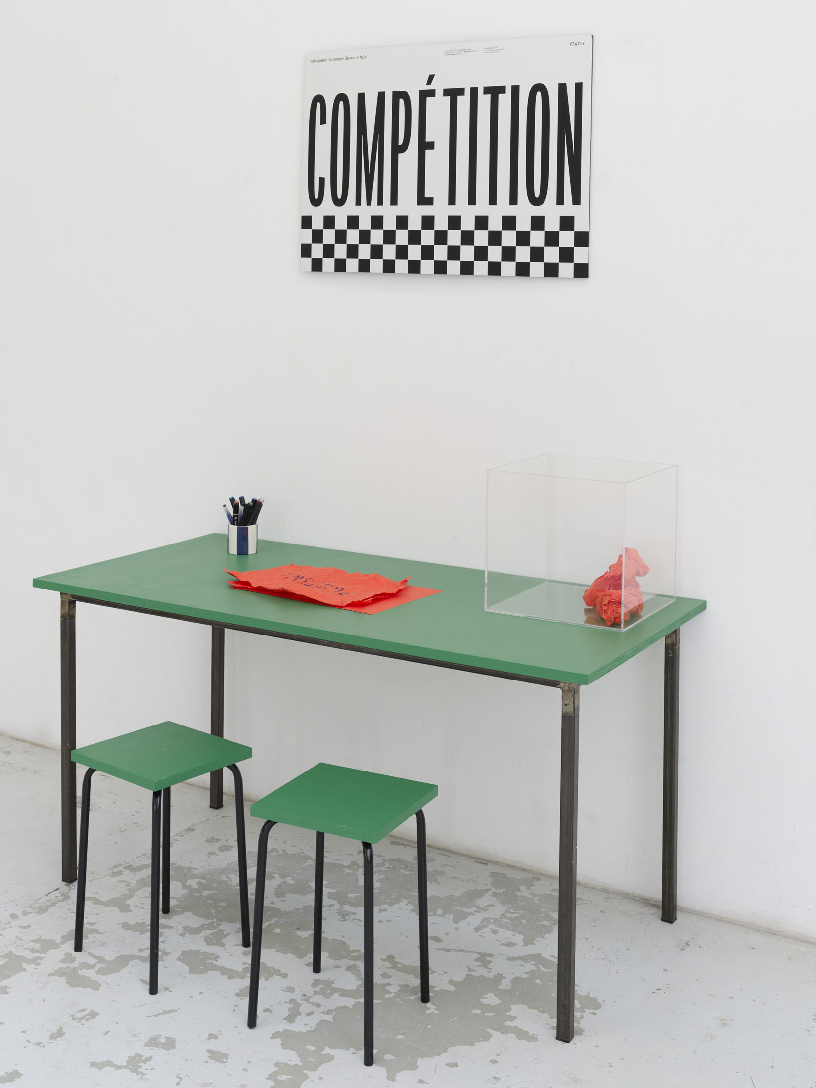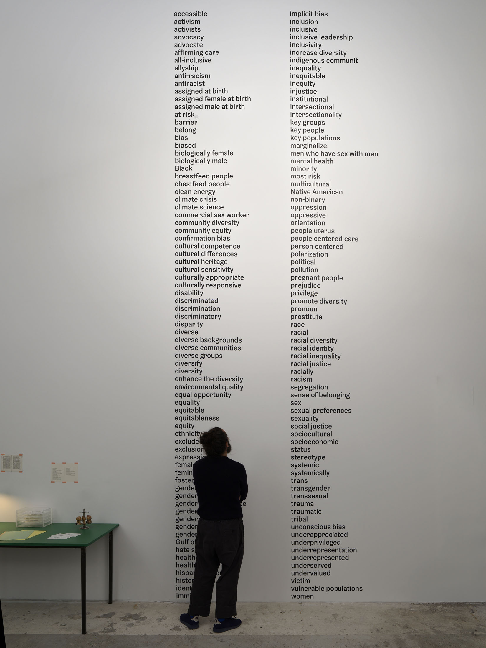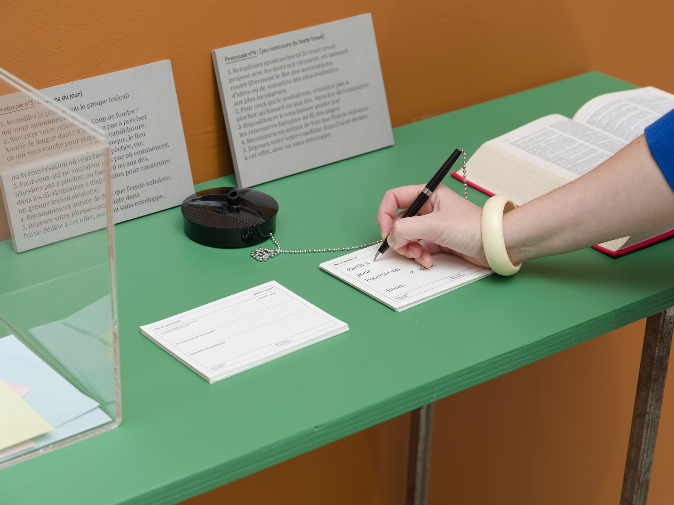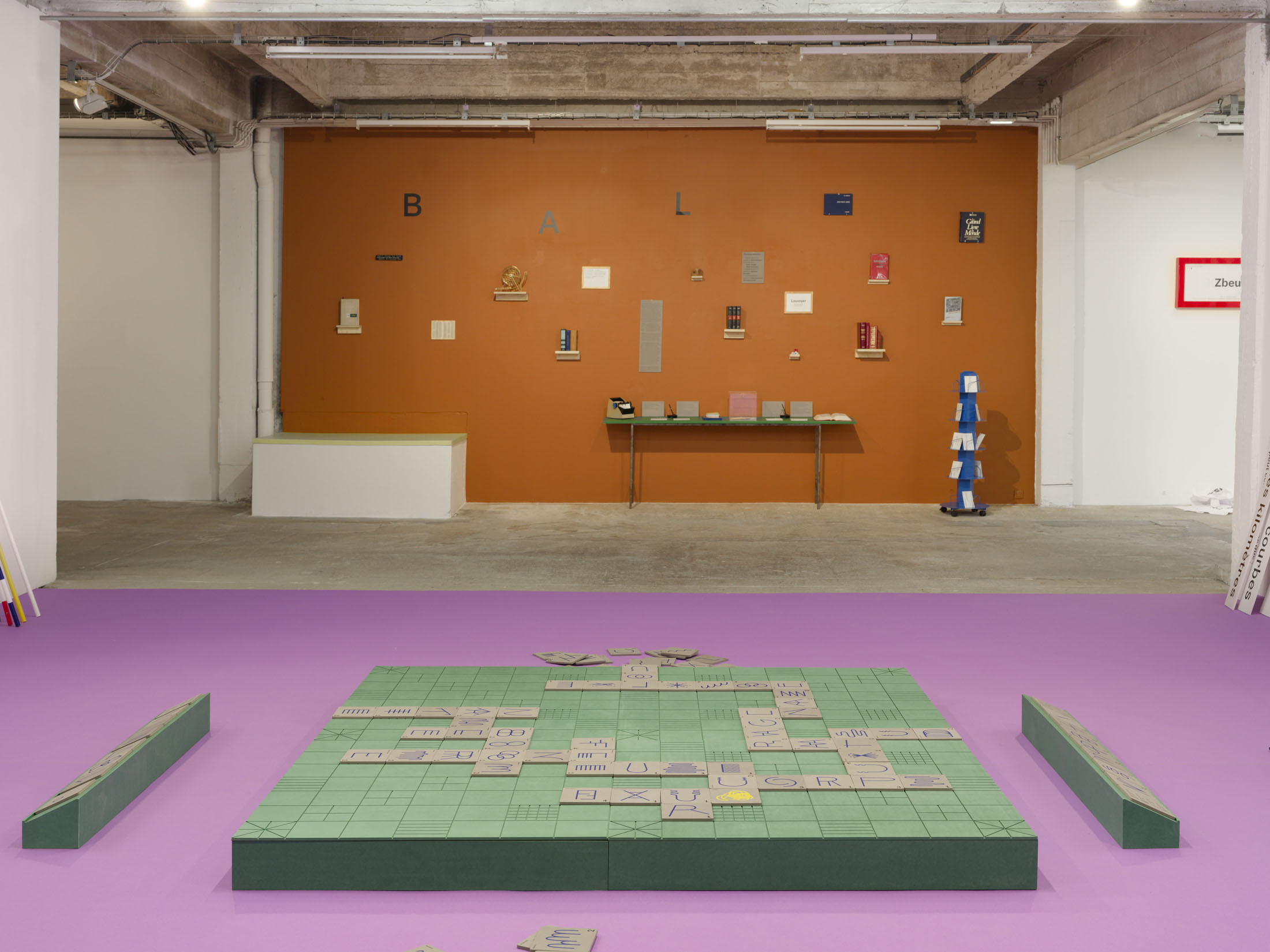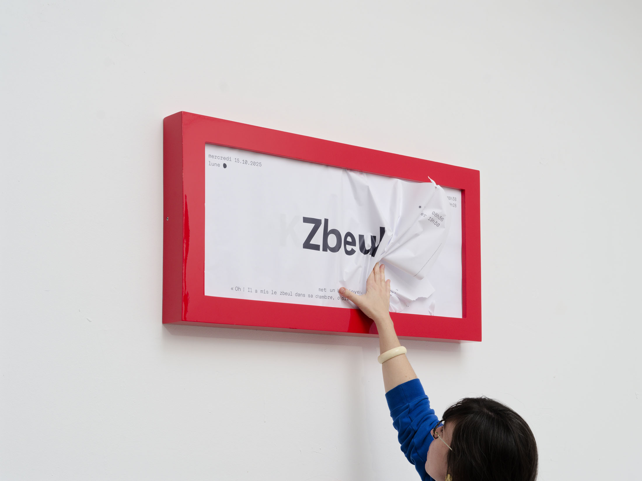 The Passerelle exhibition brings together a body of work produced by Sophie Cure and presented in 2021 at the Bel Ordinaire in Pau. It is further enhanced by new productions suggested by the local maritime context, the architecture of the Centre for Contemporary Art in Brest and current politics. Echoing this presentation, another delegation from the Bureau for Lexical Affairs, led by Mathilde Chéreau, has been installed since April in Place Napoléon III at Bellevue in Brest, where it will stay until the end of October 2025. This friendly and welcoming space invites local people to vote for the word of the day and take part in various graphic and typographic experiments