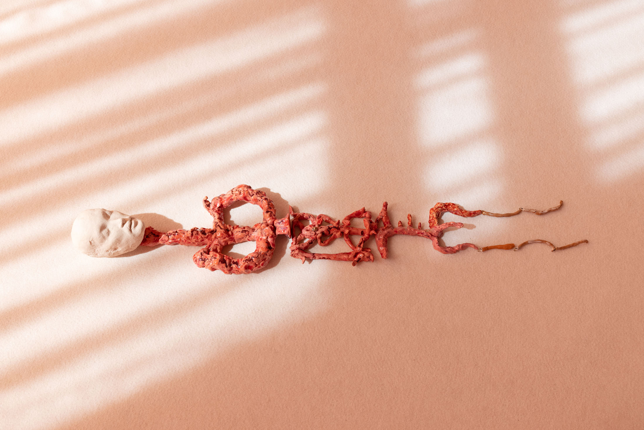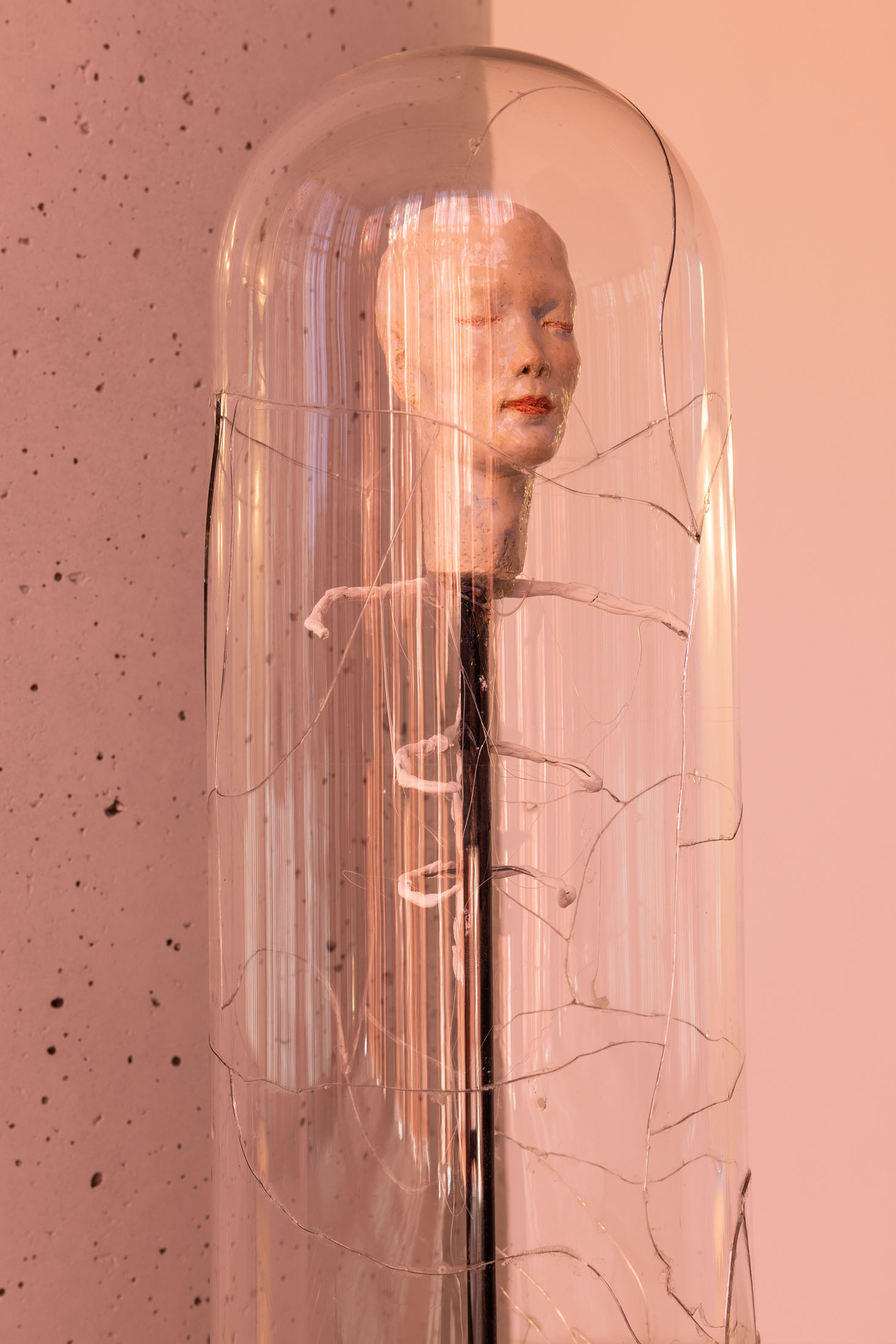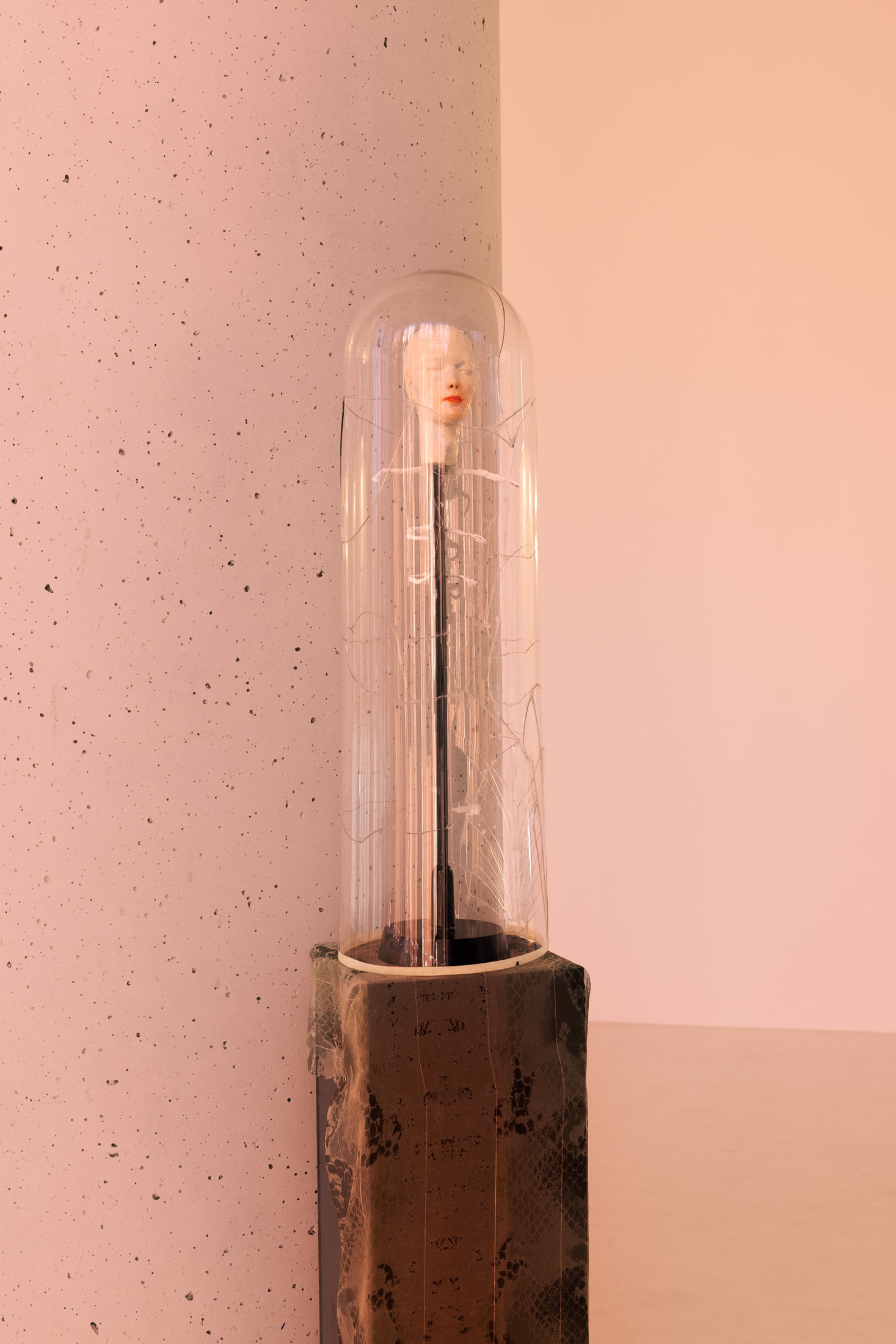 The title refers both to the sleeve of desire and to its cover—‘sleeve’ in the sense of a record sleeve: the outer appearance of capitalism’s melody; a desirable surface made for sale; a visual of consumption that also carries a deeper, unresolved emotional charge. While Matsubara addresses not only the affinities between desire, eros, and death, the exhibition is also reflecting on the appropriation of desire by capitalism—its constant stimulation, its obscene self-serving function without mystery. The belief that consumer goods might fulfill human dreams has long numbed everyday life with commodity fetishism. As Byung-Chul Han argues in ‘The Agony of Eros’ (2012), desire has become narcissistic, opening the door to a deep depression rather than enabling the playful, erotic exchange with the ‘Other’.