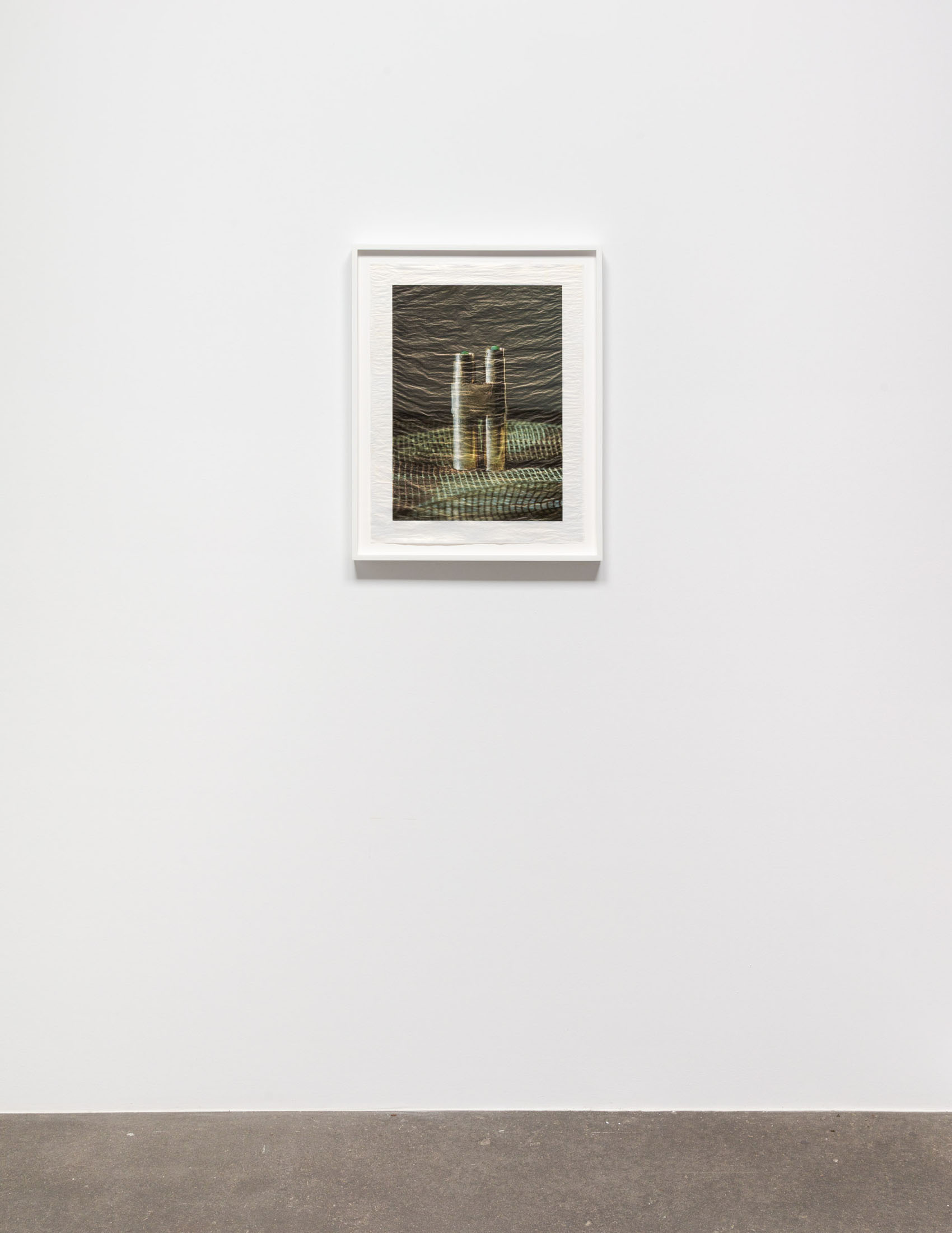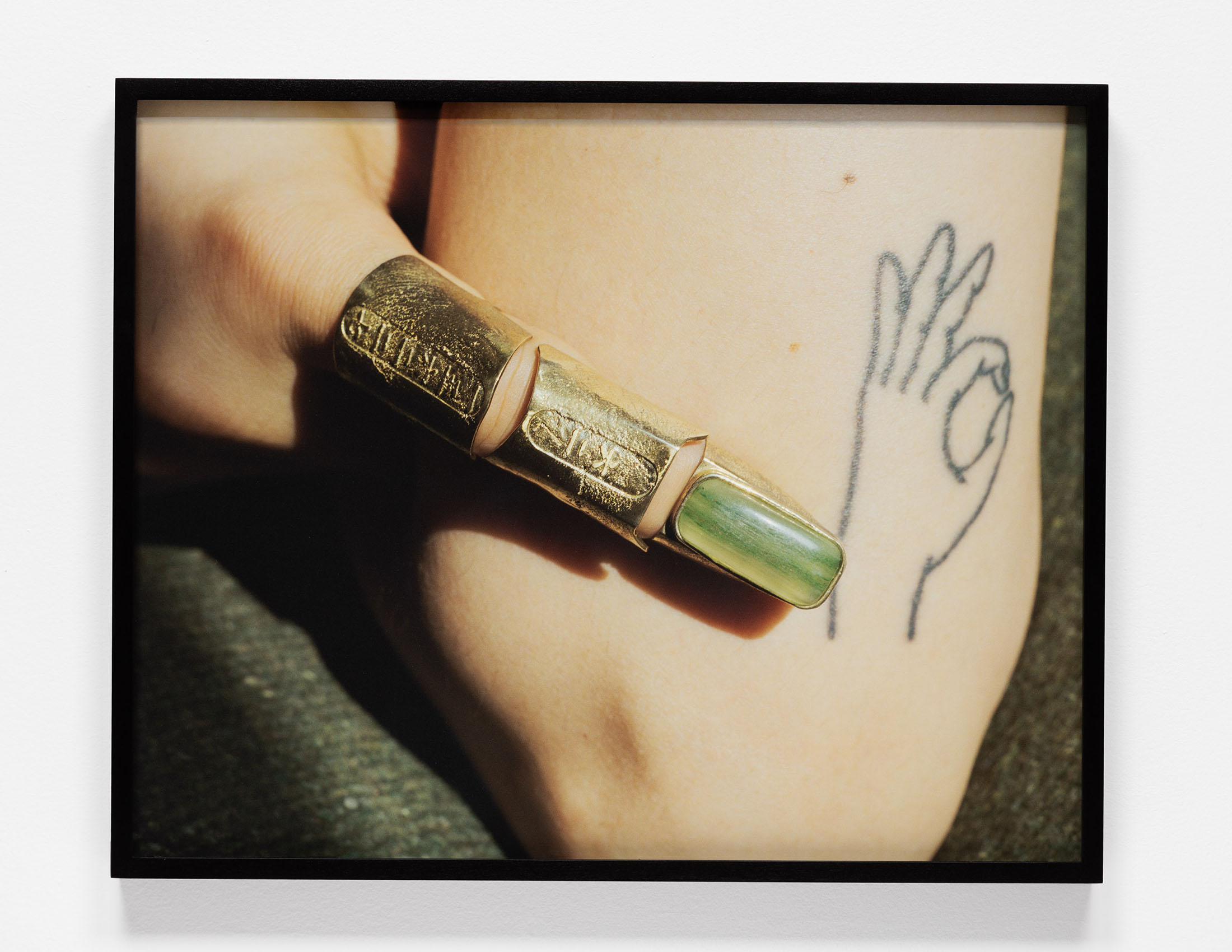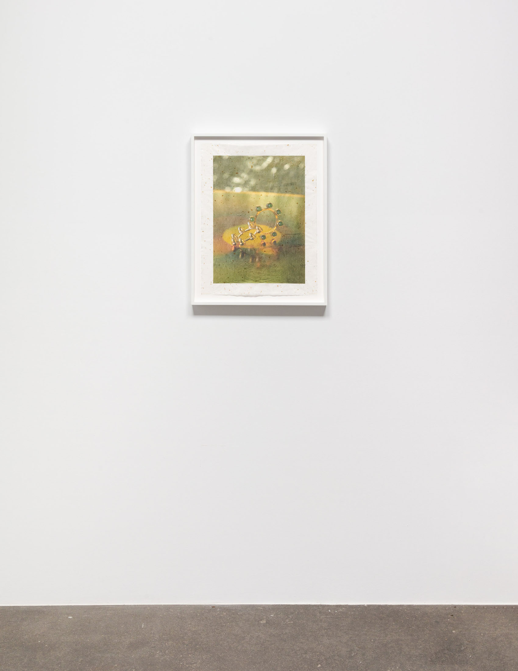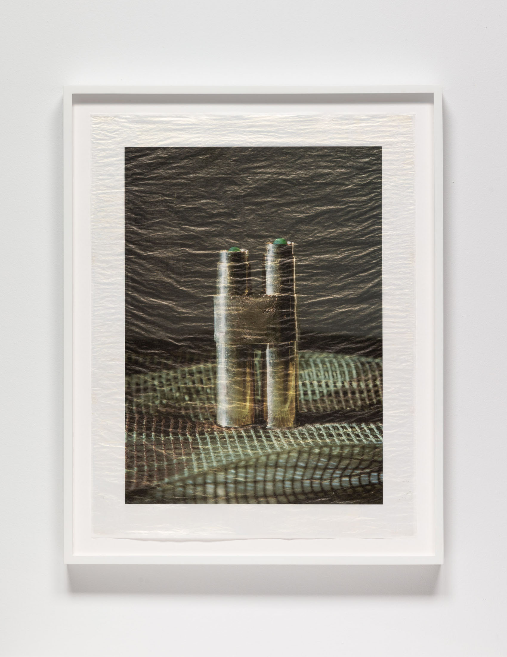 In Beckly’s photographic practice he expands and manipulates the medium by printing on materials such as tissue, handmade paper, plastic, or foil, many of which bend, distort, and sometimes fold the image. He often involves jewelry-like fixtures—chains, pins, gems, or shells— which fasten his work to the walls or hang in front of it like a veil. In Handy Work this process is reversed: the sculptural adornments appearing within, rather than outside of, the photographs.