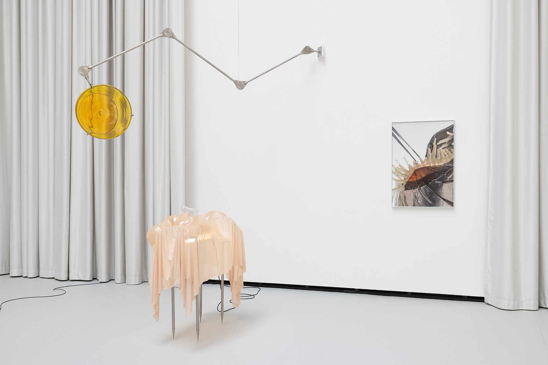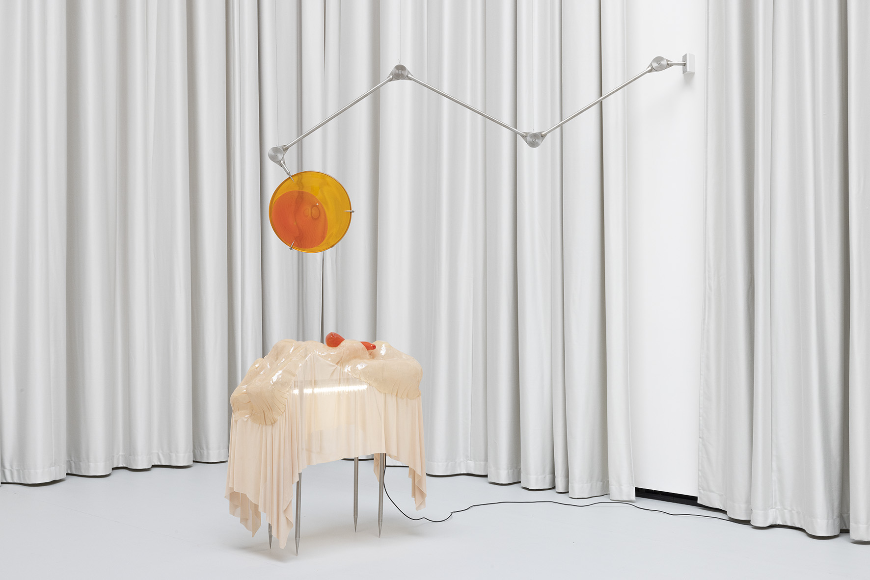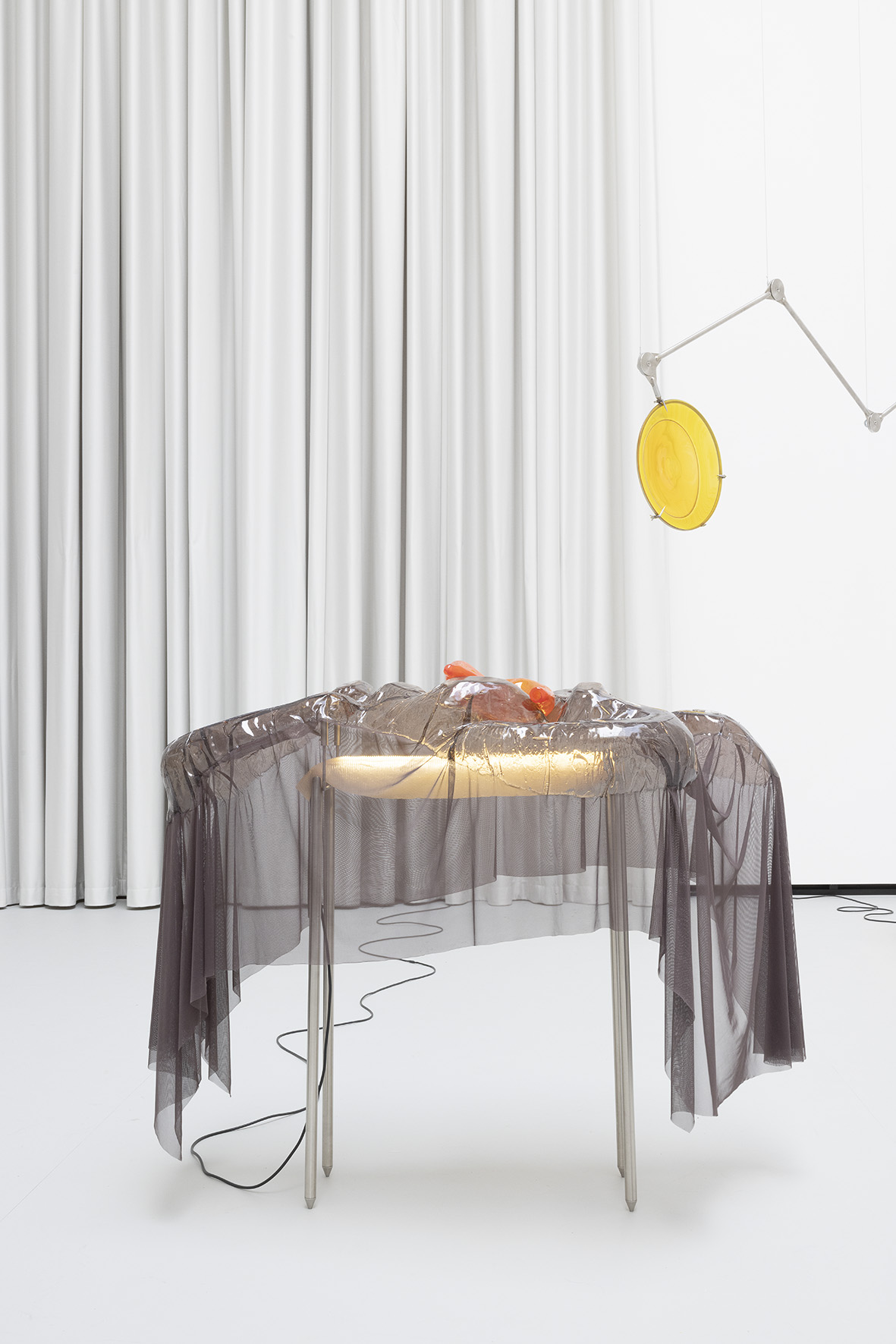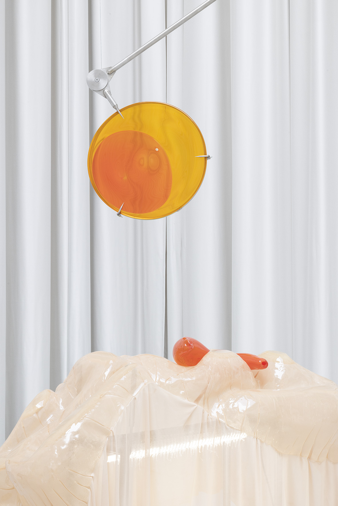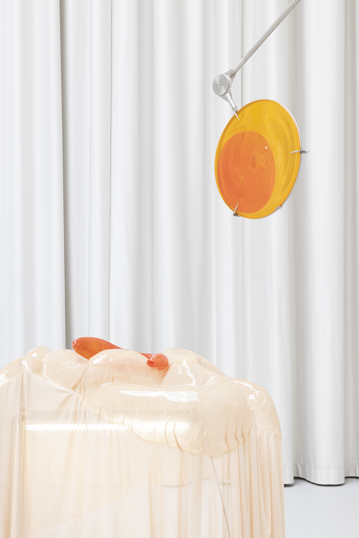 Operating tables, mechanical arms and glass lenses in PAKUI HARDWARE’s The Host echo Tyrell’s godlike role: absolute, yet distant. Life is possible, but only through hierarchical, remote control. The host body does not own itself. It becomes a vessel, an optimized surface for labor, measurement, and experiment. Telemedicine, robotic surgery, hands that never touch flesh yet exert authority, create a “cold intimacy”: extreme closeness without compassion, a post-organic form of care. Assembled from glass, textiles, resin, latex, metal, and plastic, these bodies function as composite systems, where organic and synthetic elements are inseparable.