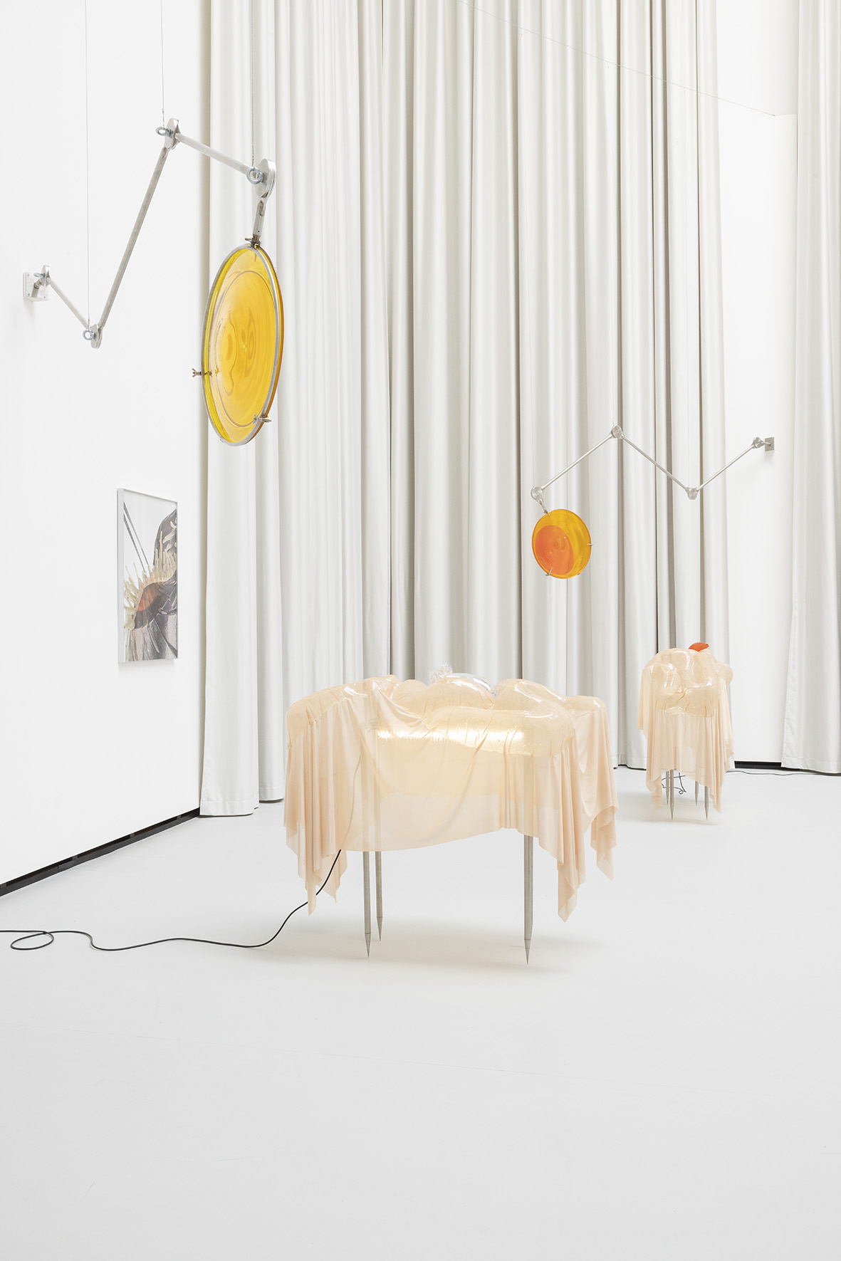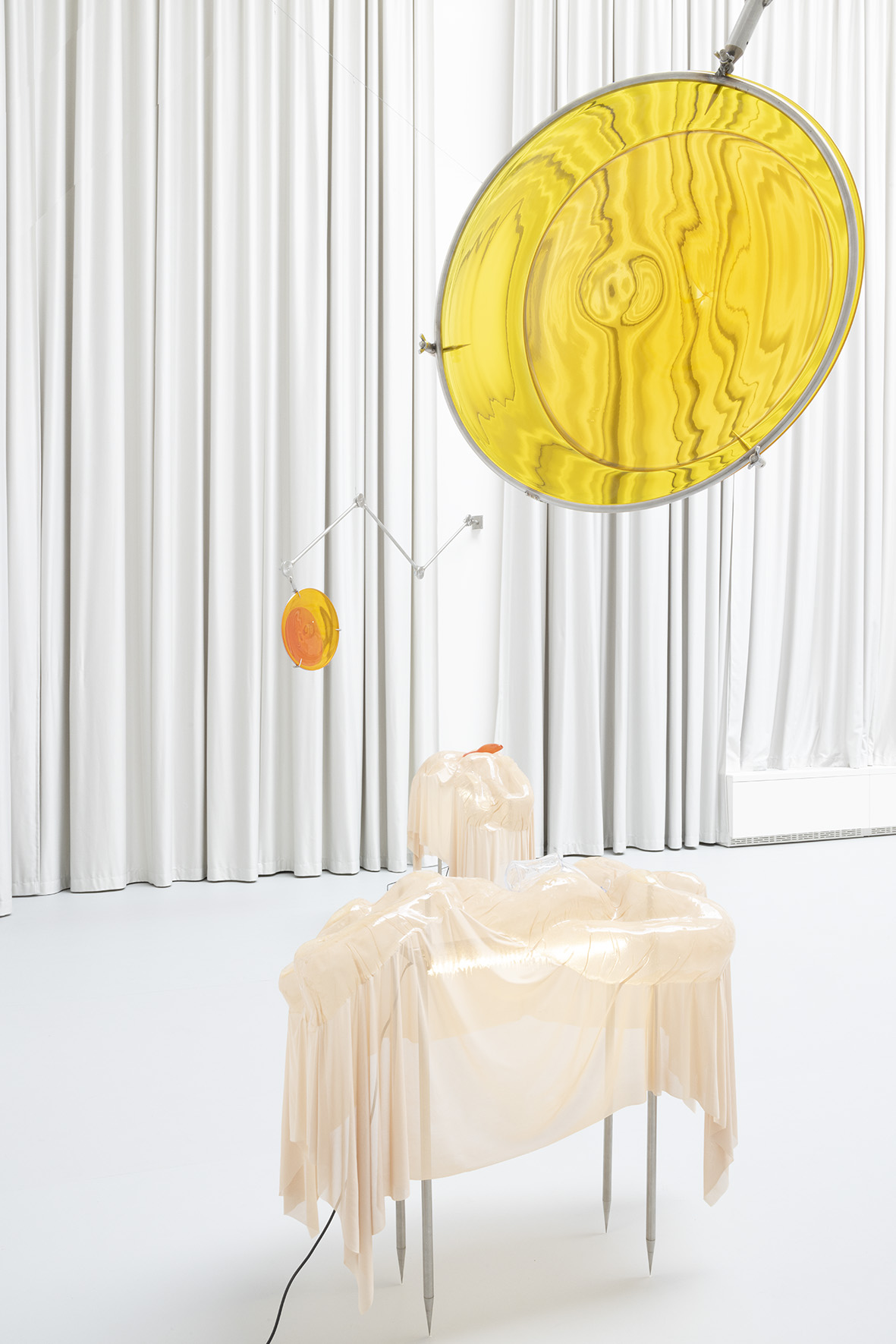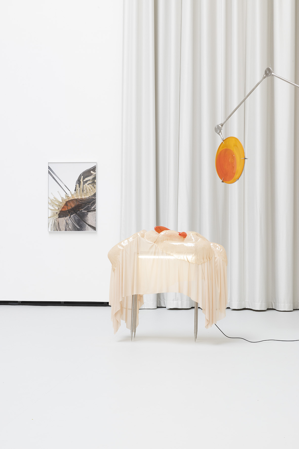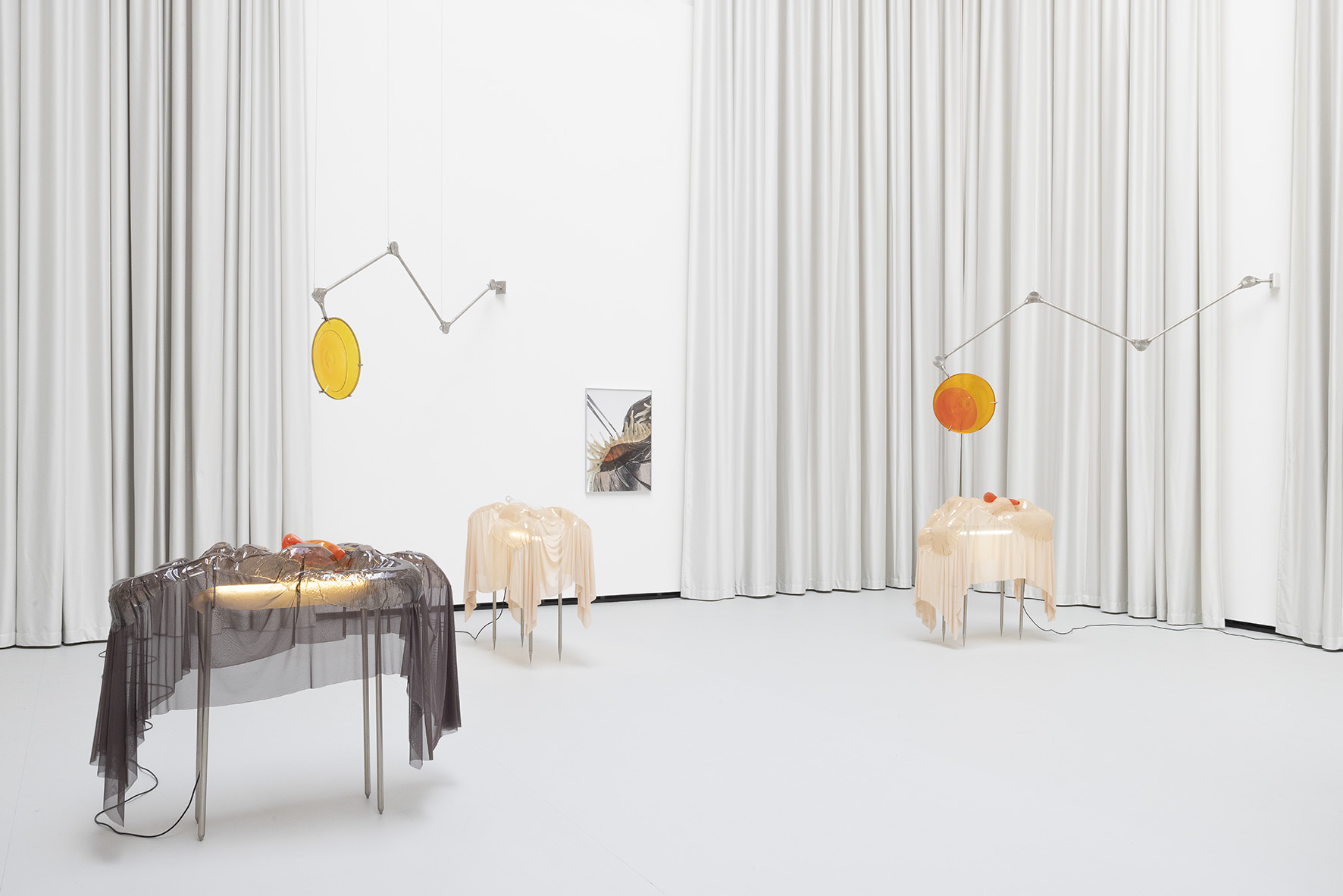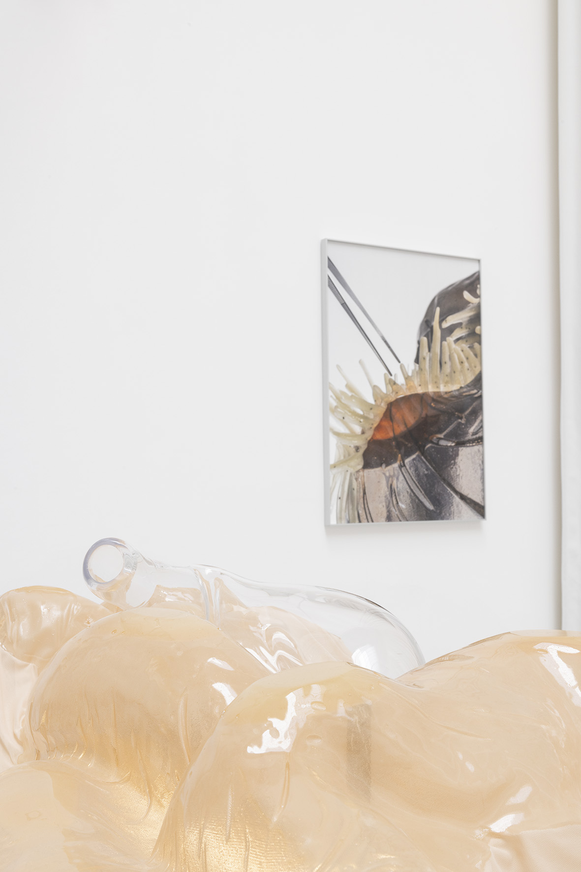Operating tables, mechanical arms and glass lenses in PAKUI HARDWARE’s The Host echo Tyrell’s godlike role: absolute, yet distant. Life is possible, but only through hierarchical, remote control. The host body does not own itself. It becomes a vessel, an optimized surface for labor, measurement, and experiment. Telemedicine, robotic surgery, hands that never touch flesh yet exert authority, create a “cold intimacy”: extreme closeness without compassion, a post-organic form of care. Assembled from glass, textiles, resin, latex, metal, and plastic, these bodies function as composite systems, where organic and synthetic elements are inseparable.