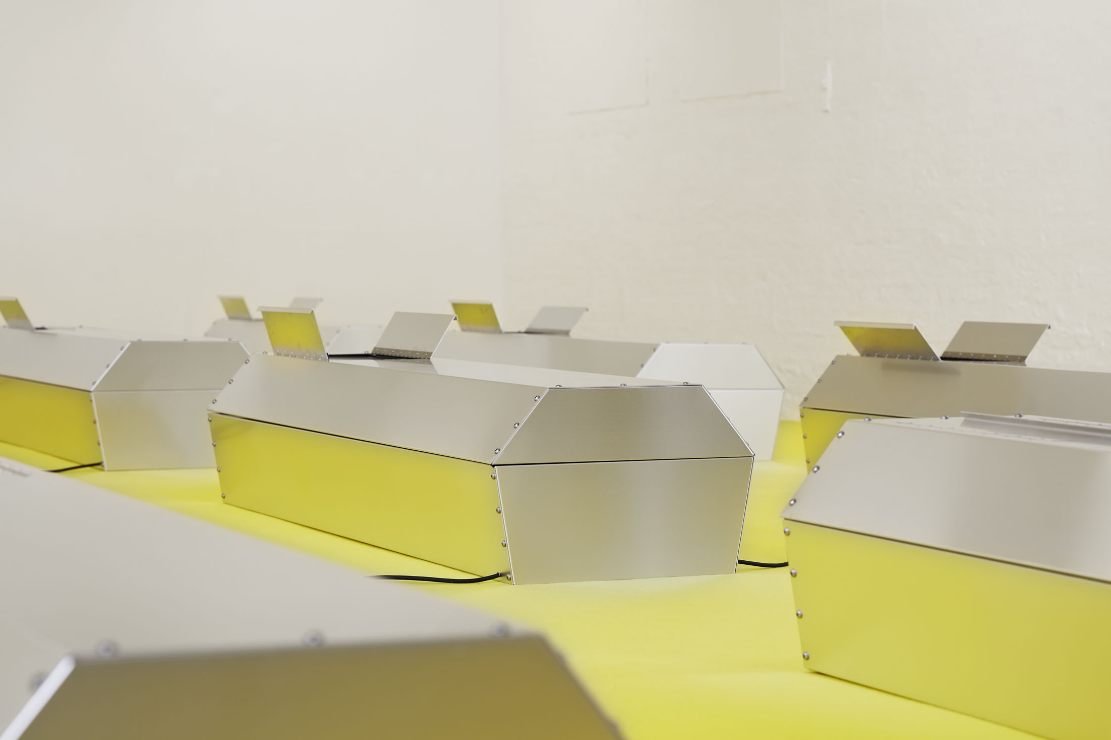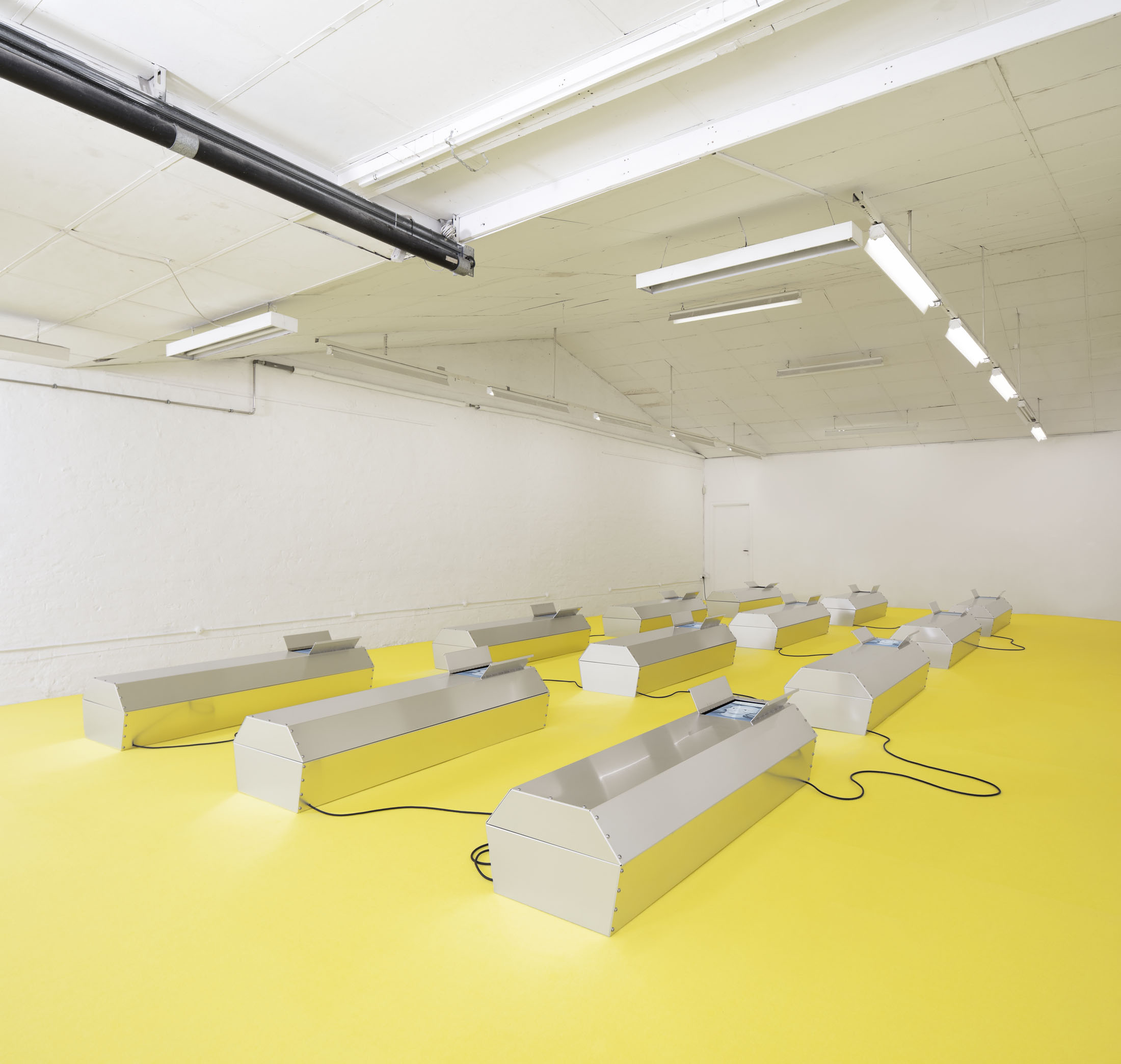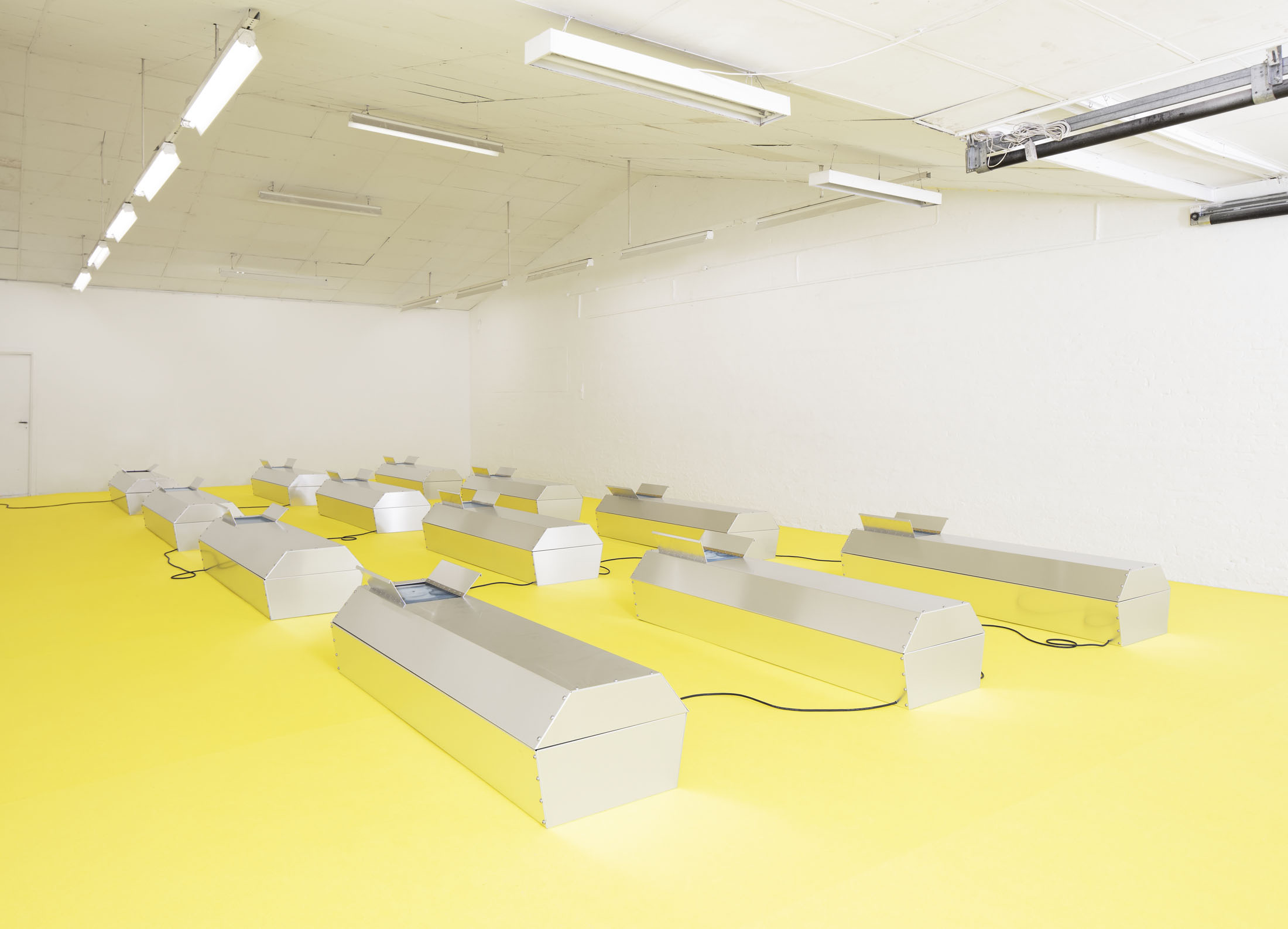 Take off your shoes but keep your socks on before stepping onto the carpet and moving towards the coffins. You are about to enter a simulated sacred space.