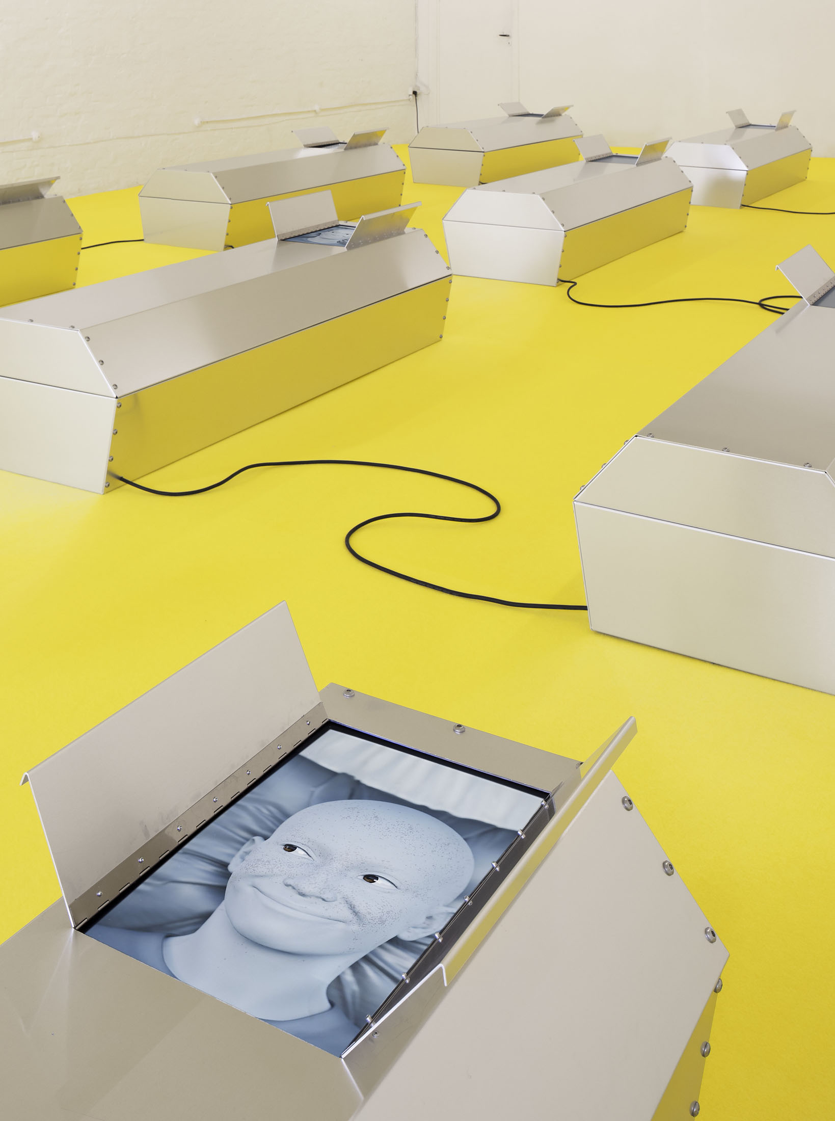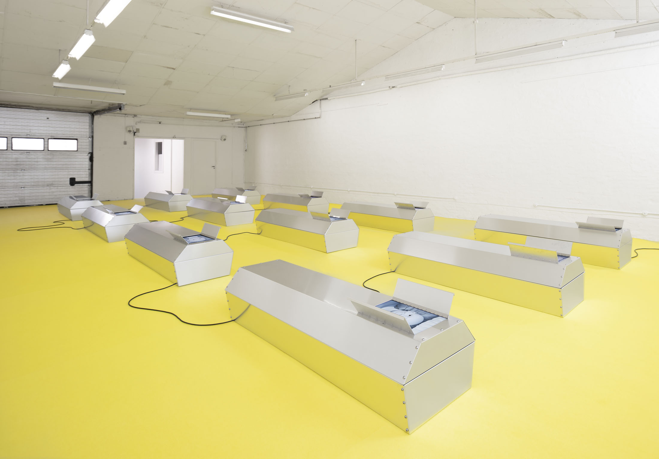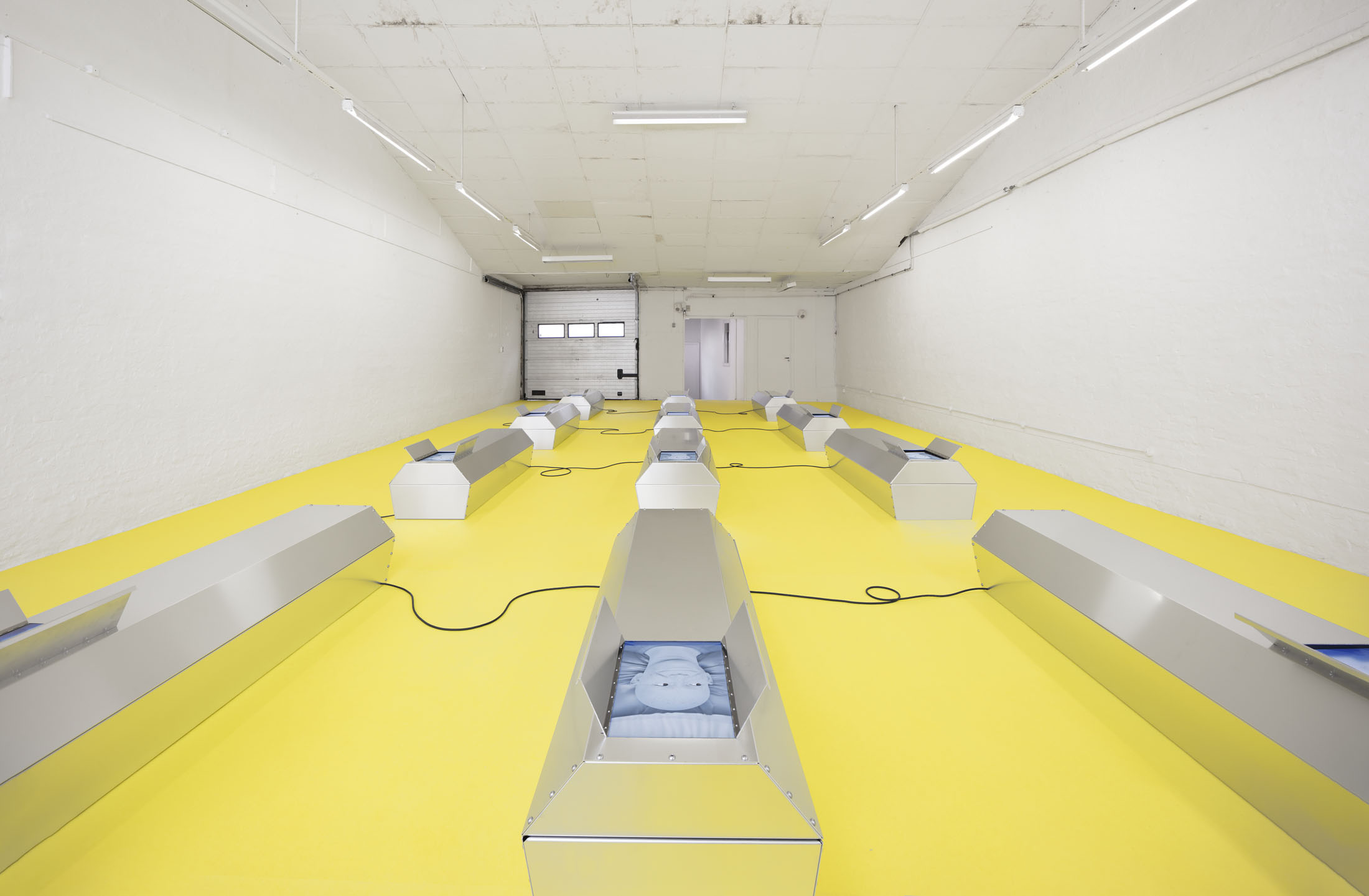 Stine Deja’s GRAVE MATTERS is wonderfully ambivalent. Even the title suggests it. This ambivalence is typical of Deja, whose practice revolves around existential reflections that are both unsettling and seductive. Whether it’s cryogenically frozen bodies in sleeping bags that unconsciously live on after death or a roller coaster ride into your own grave, with Deja you often find yourself on the threshold between life and death, between biology and technology.