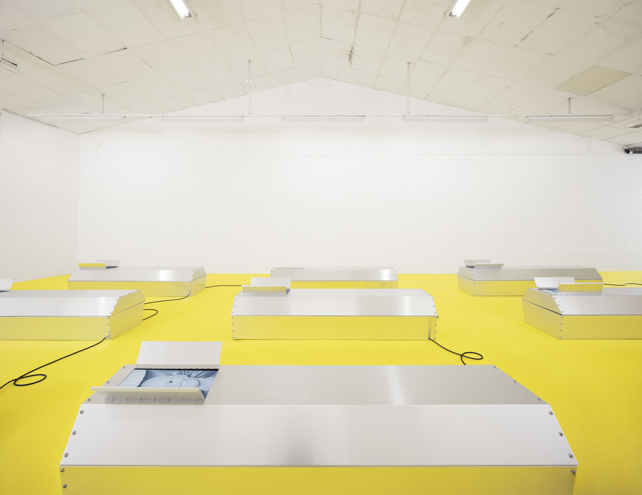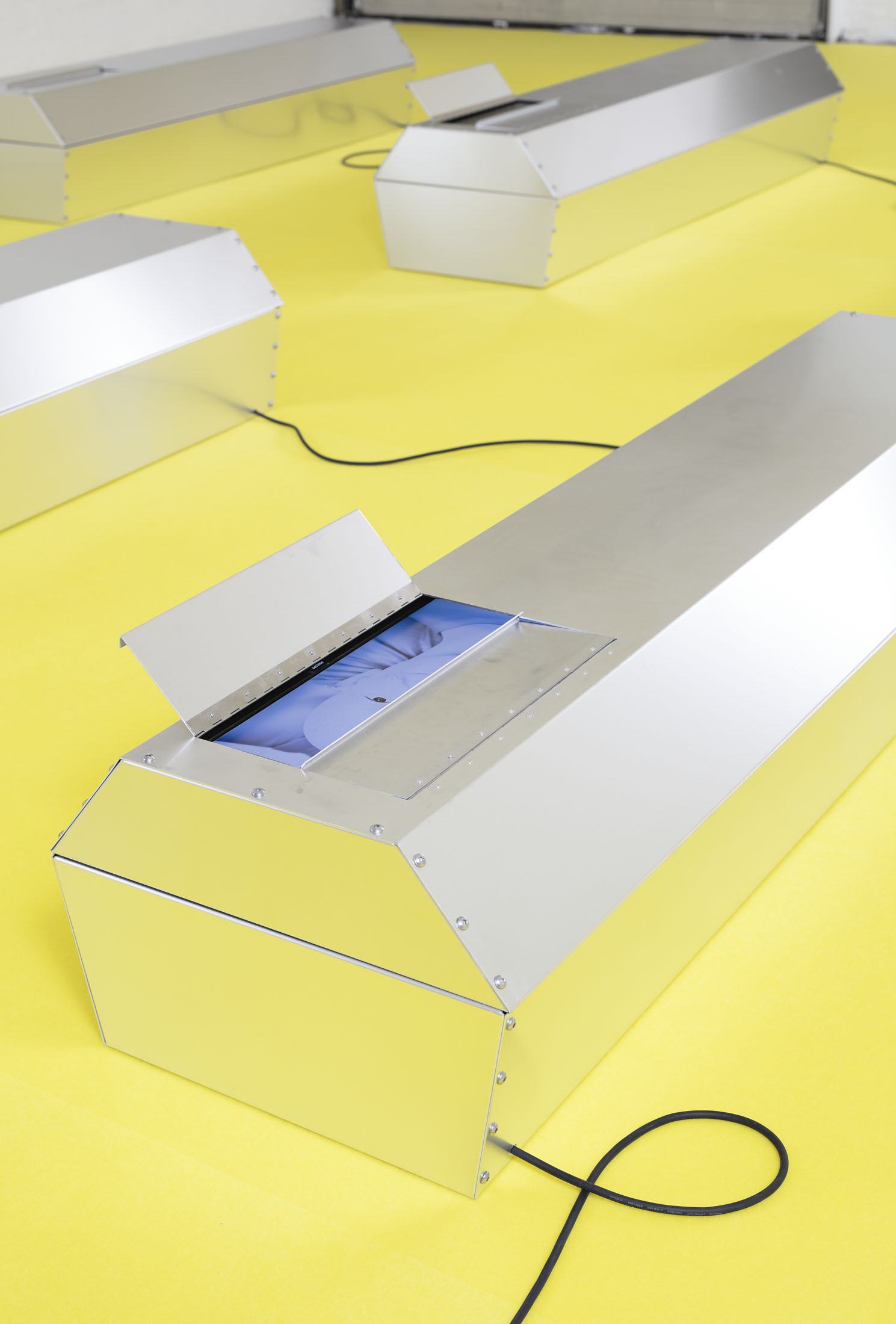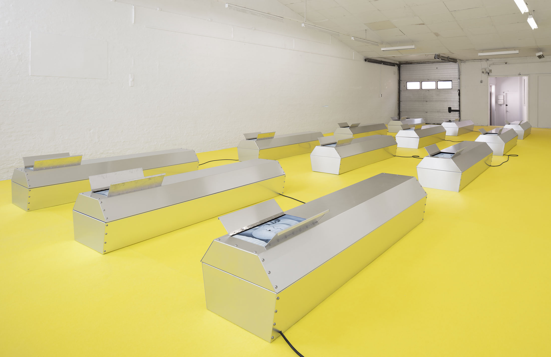 Stine Deja’s GRAVE MATTERS is wonderfully ambivalent. Even the title suggests it. This ambivalence is typical of Deja, whose practice revolves around existential reflections that are both unsettling and seductive. Whether it’s cryogenically frozen bodies in sleeping bags that unconsciously live on after death or a roller coaster ride into your own grave, with Deja you often find yourself on the threshold between life and death, between biology and technology.