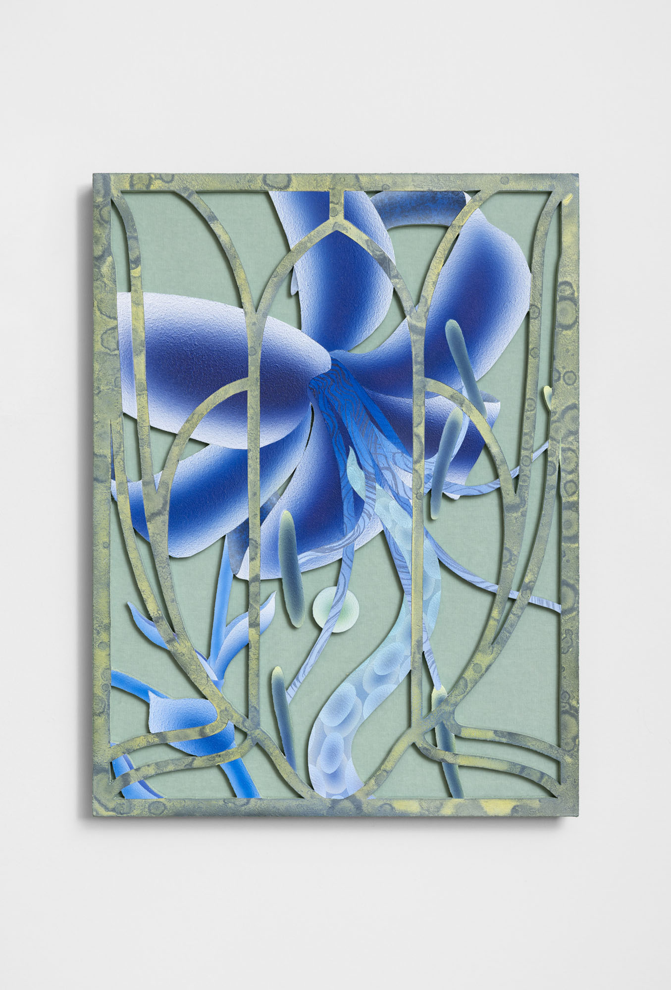 Alice Wang’s ambrotype totem of electronic circuit and paired sculptures of electron clouds, along with Feng Chen’s time-based photographic portraits of sound, transform the unseen dimension into perceptible reality. In his sculpture and video Carving water, melting stones, Hu Yun investigates the heritage and practitioners of woodcarving in a Philippine village. Kyle Coniglio’s portrayal of the lone traveller is a self projection onto the Fool from the Tarot. In Maya Kramer’s panel pieces, spectral silhouettes of birds fly across the light-polluted sky. Mevlana Lipp’s reliefs radiate in a dreamscape of flora and fauna.