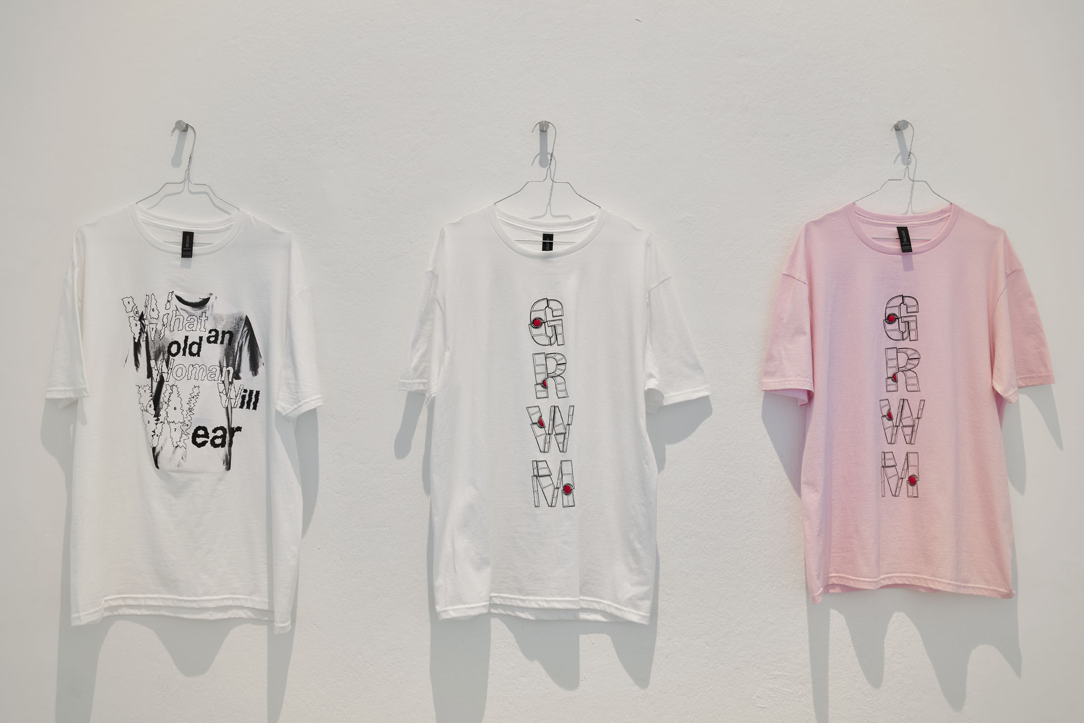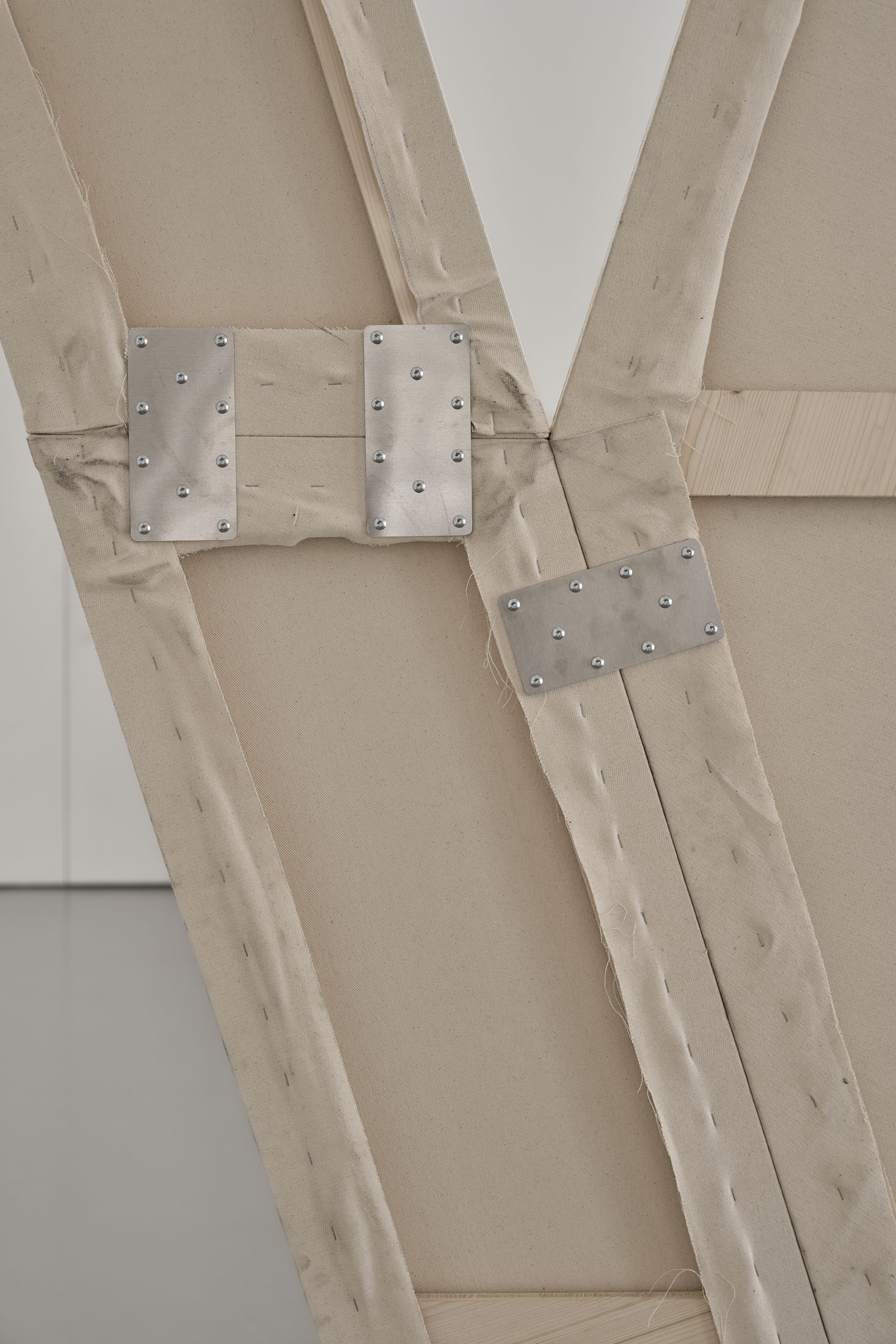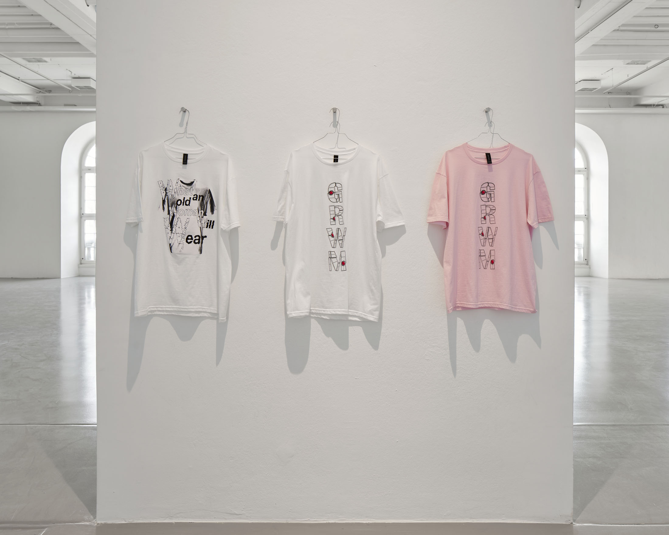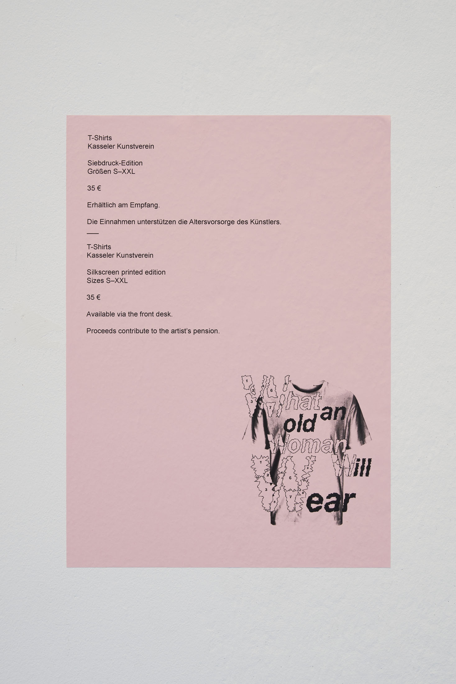 Where Nis-Hansen’s work in the past has often dealt with the liminal spaces of illness, both in the affective register of uncertainty as much as its literal infrastructure dictated by the anonymity of waiting rooms and confided spaces, the works on view in What an Old Woman Will Wear shift more explicitly towards the relation of the (female) body to its representation and formation, both in visual culture as well as through language.