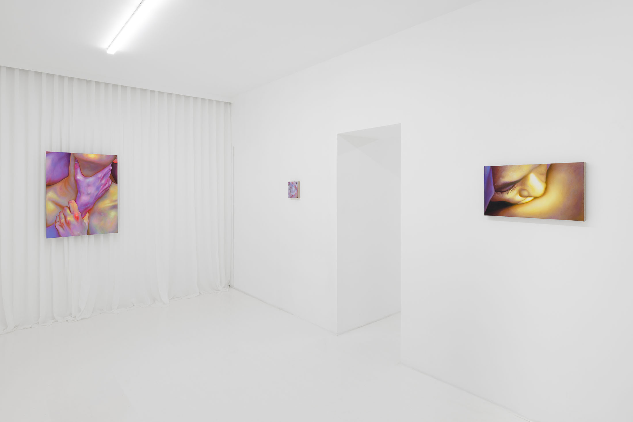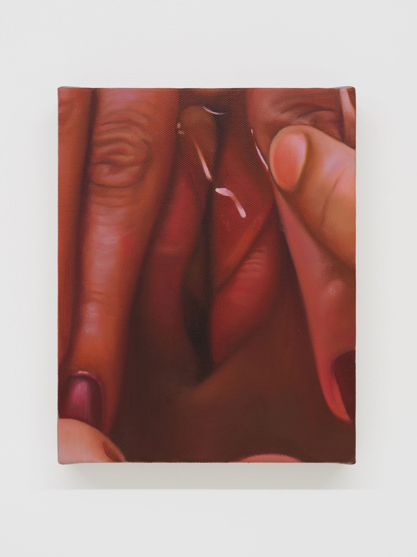 Tao Siqi is not a morning person. She paints at night, and her work reflects that–the feeling of time stretching out in the quiet dark while the waking world rests. She crafts strange scenes of love, touch and abjection with quiet brushstrokes and delicate glazes. This exhibition’s title, The Naked Eye, evokes seeing without obstruction. This disrobing of sight itself provides a counter point to the painted nudity we expect. Contrary to the conventional gaze, a ‘naked eye’ suggests seeing more truthfully, acutely and with precision. Yet Tao Siqi never paints a full picture. Instead she crops, providing only fleeting glimpses into a lustful world.