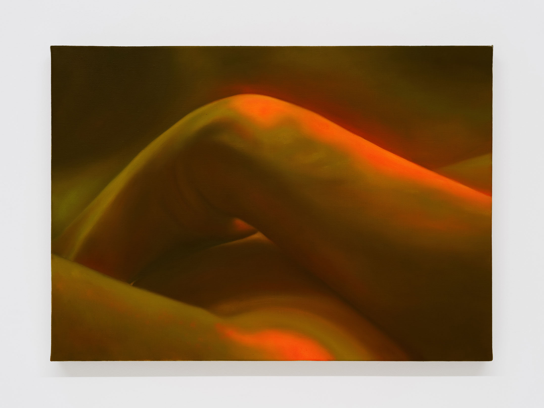 While not always apparent at first, Tao Siqi’s impulse to paint springs from tenderness. Each piece is a small act of devotion, as the artist brings dignity to various types of love: caring, compulsive, taboo, ecstatic. She is also a painter of light. At times, the intimate glow of skin; at others, a spotlight’s stark interrogation. The artist uses light as a passage between reality and fantasy, often verging on the mystical. These illuminations are invocations of spells, solace, or rituals of exposure. Tao Siqi’s light wells up from deep within the canvas, igniting body parts like the flash of a match. Through layered glazes and gentle scumbling, her light gains an almost tactile presence.