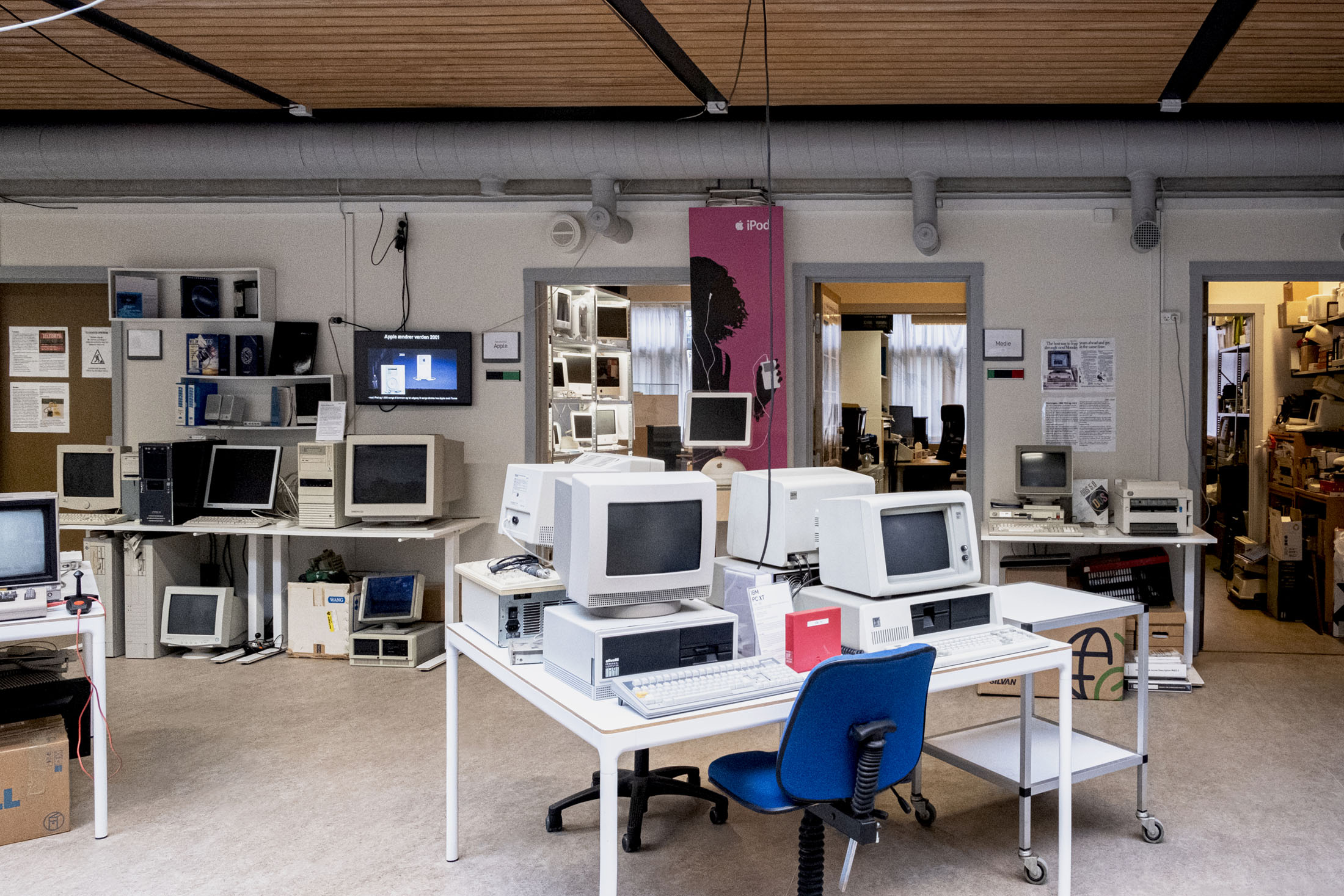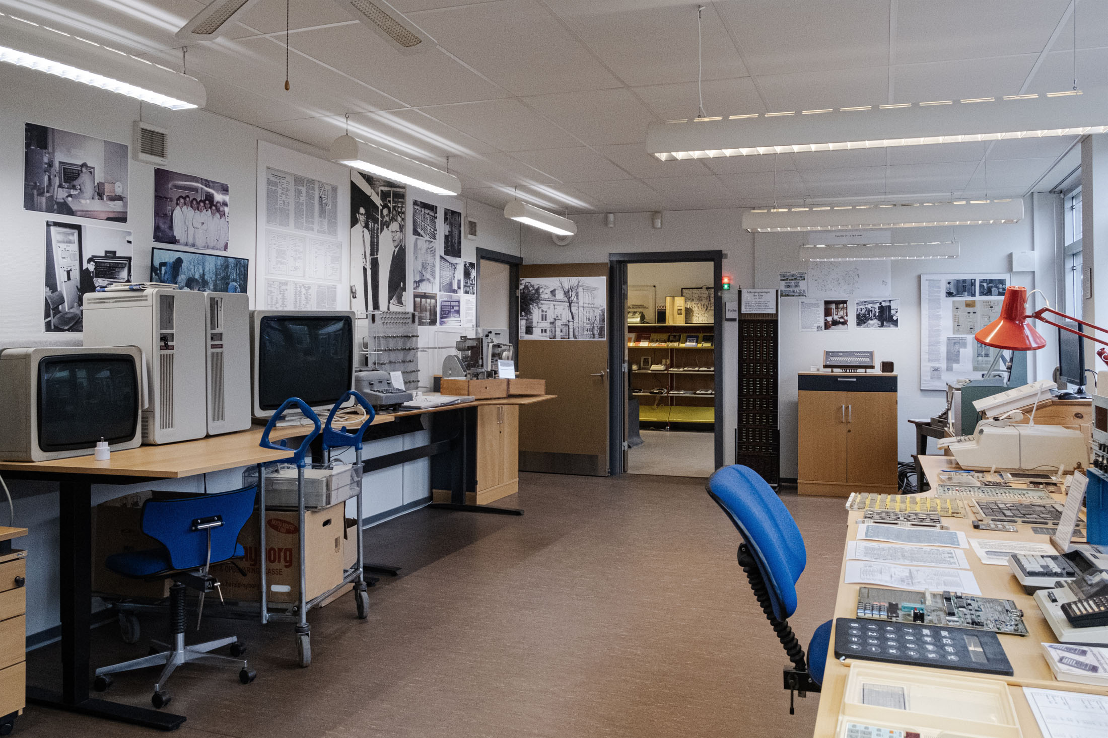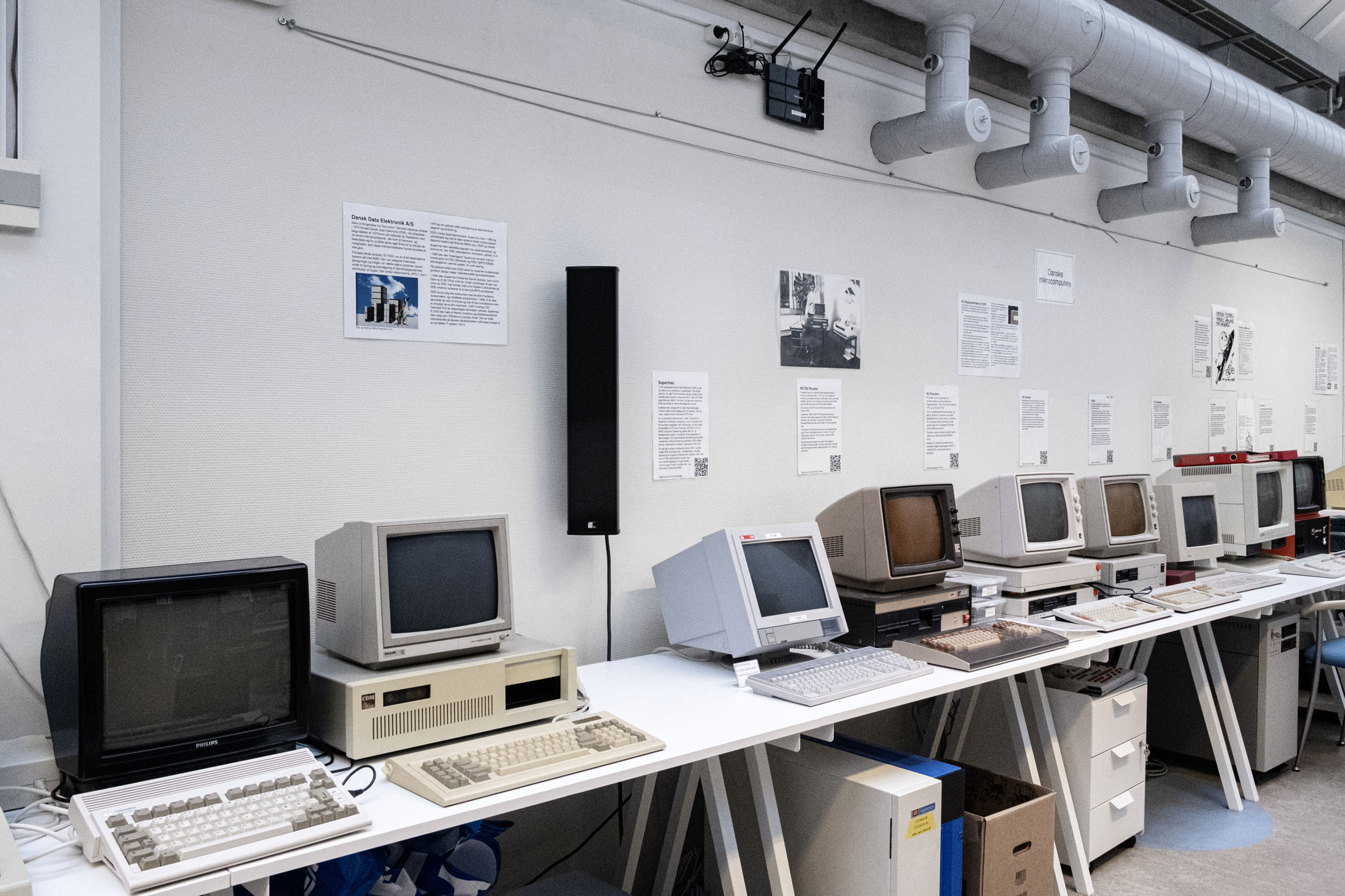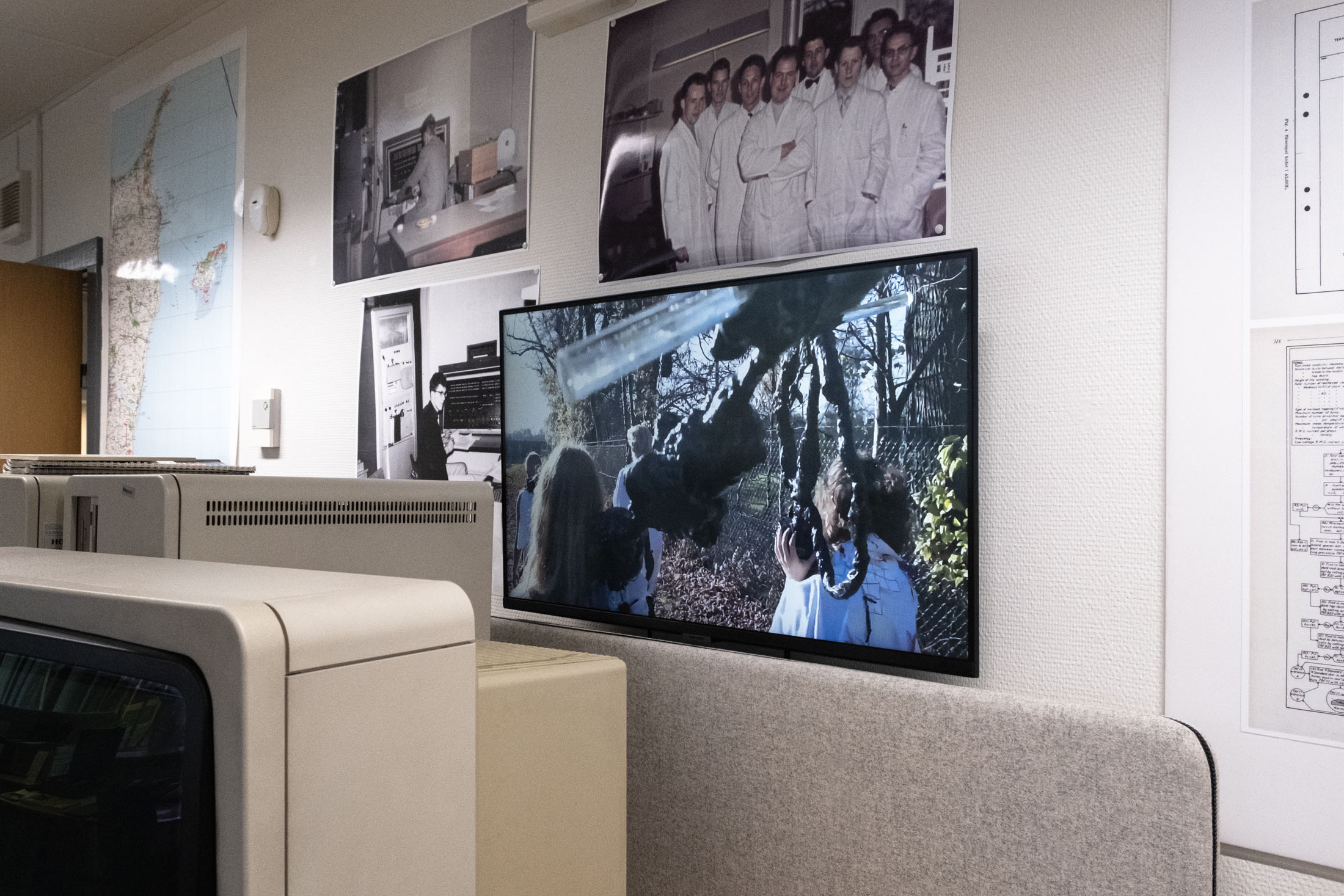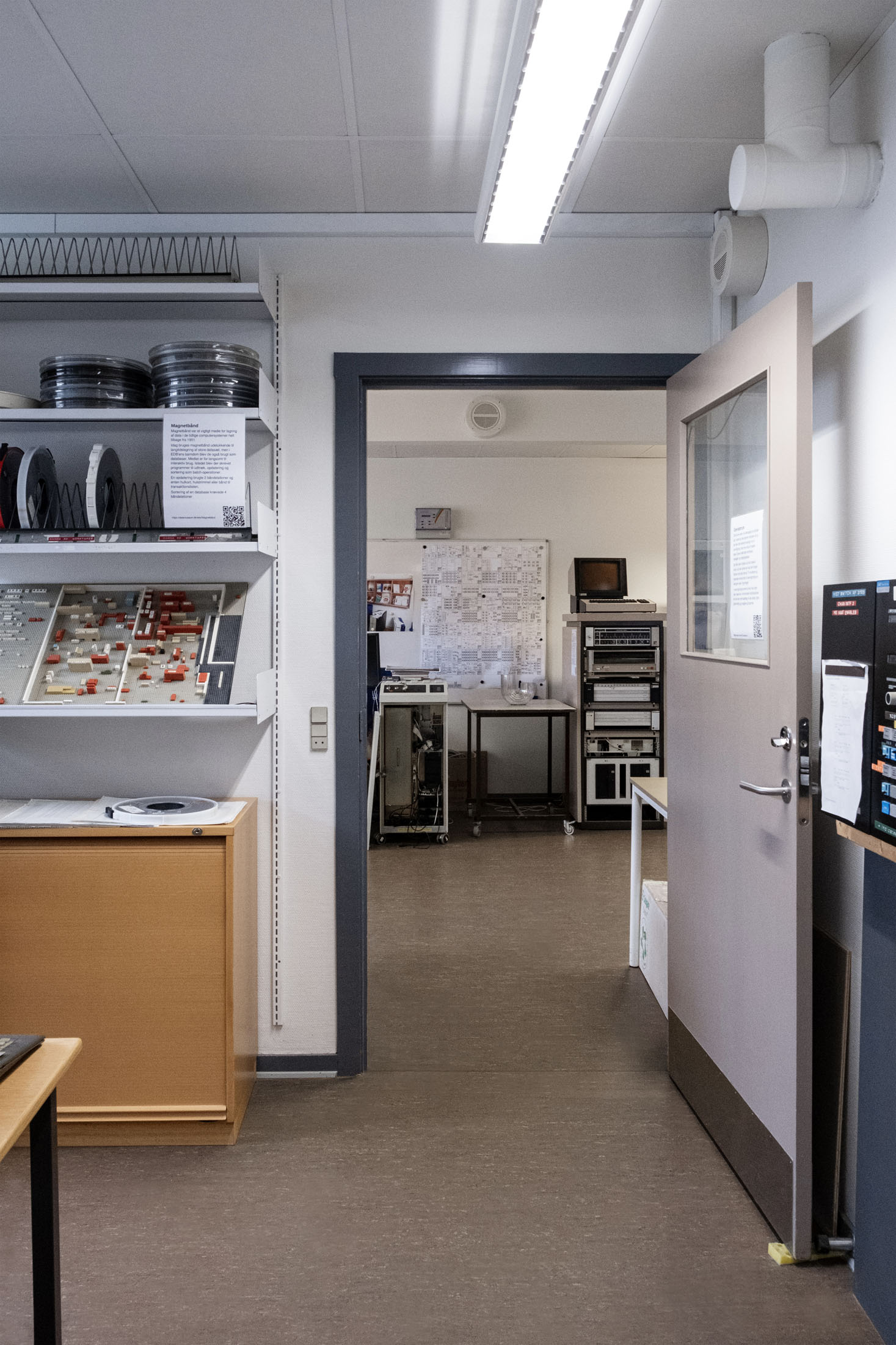 The exhibitions integrate contemporary works into the museum’s collection, workspaces and archives, among mechanical counting devices, components of Denmark’s first computer DASK (Dansk Aritmetisk Sekvens-Kalkulator, nicknamed the Electro Brain, originally built into an entire villa), as well as rare mainframes, early personal computers, and pivotal developments in global computing history.
