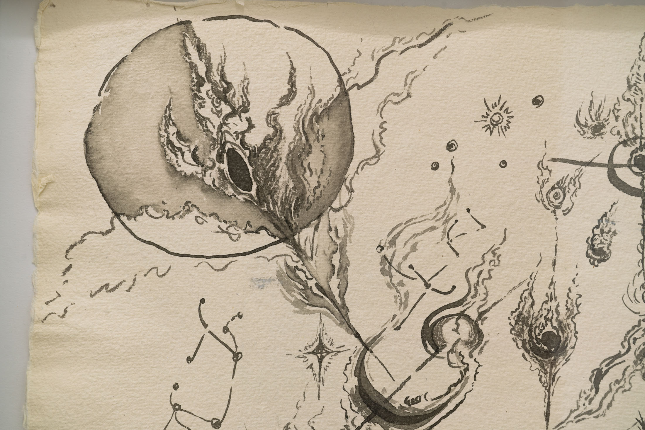 The title is found within a poem by the SF Renaissance surrealist poet Philip Lamantia, who had influence on Will Alexander, one of the artists in the exhibition.