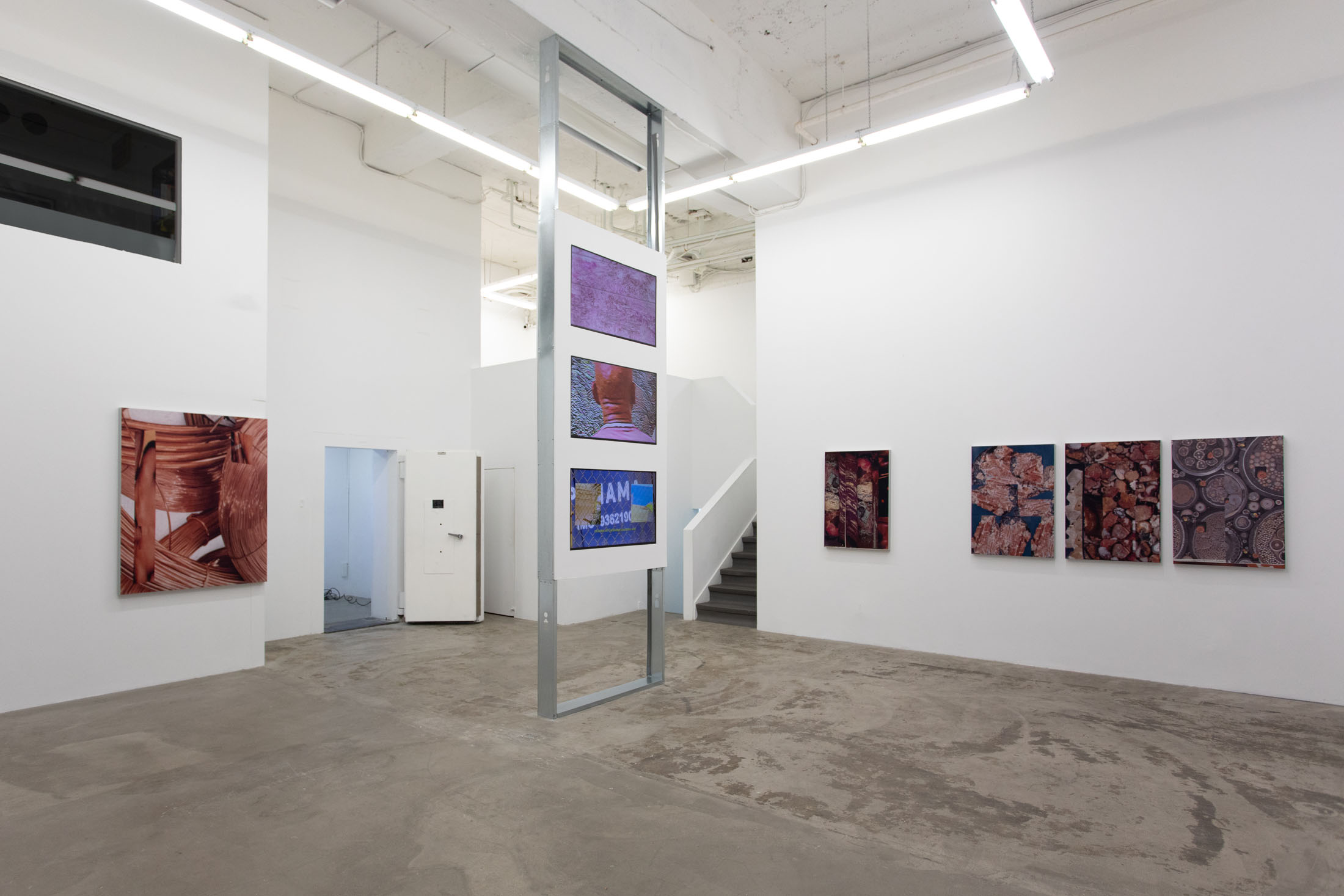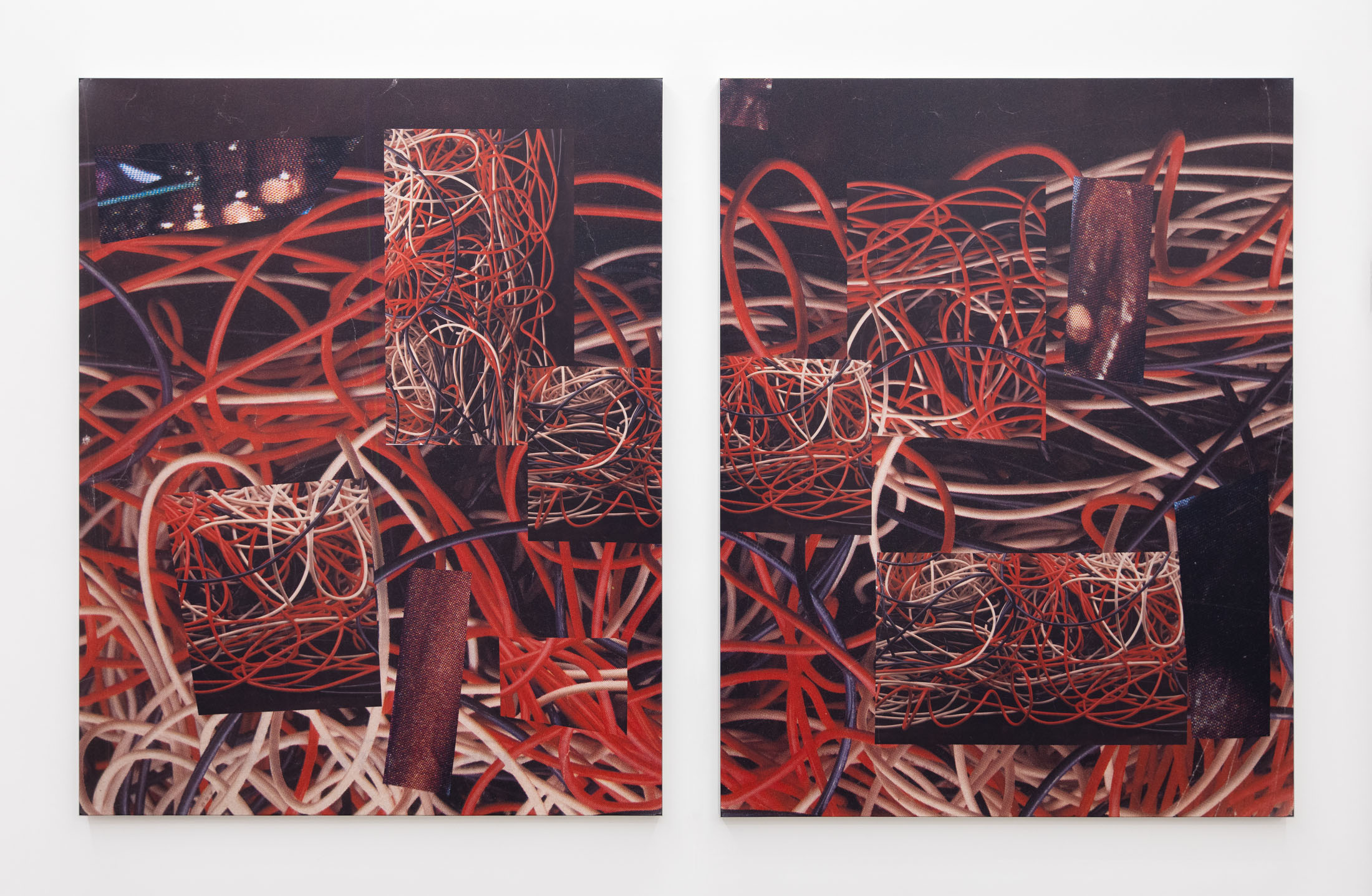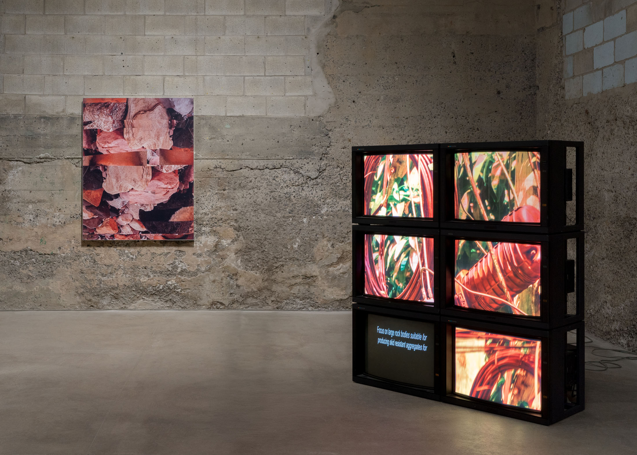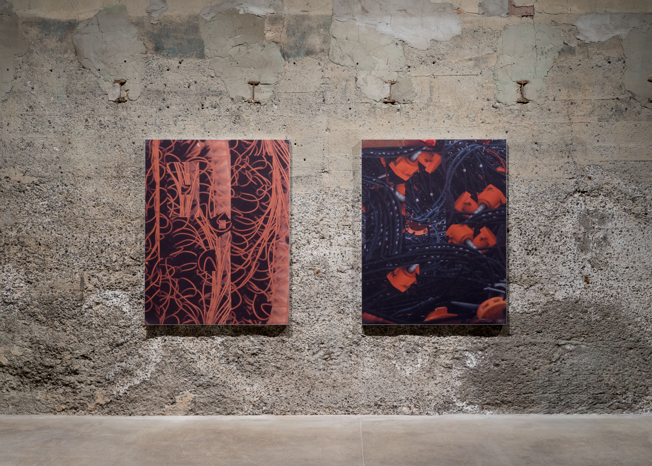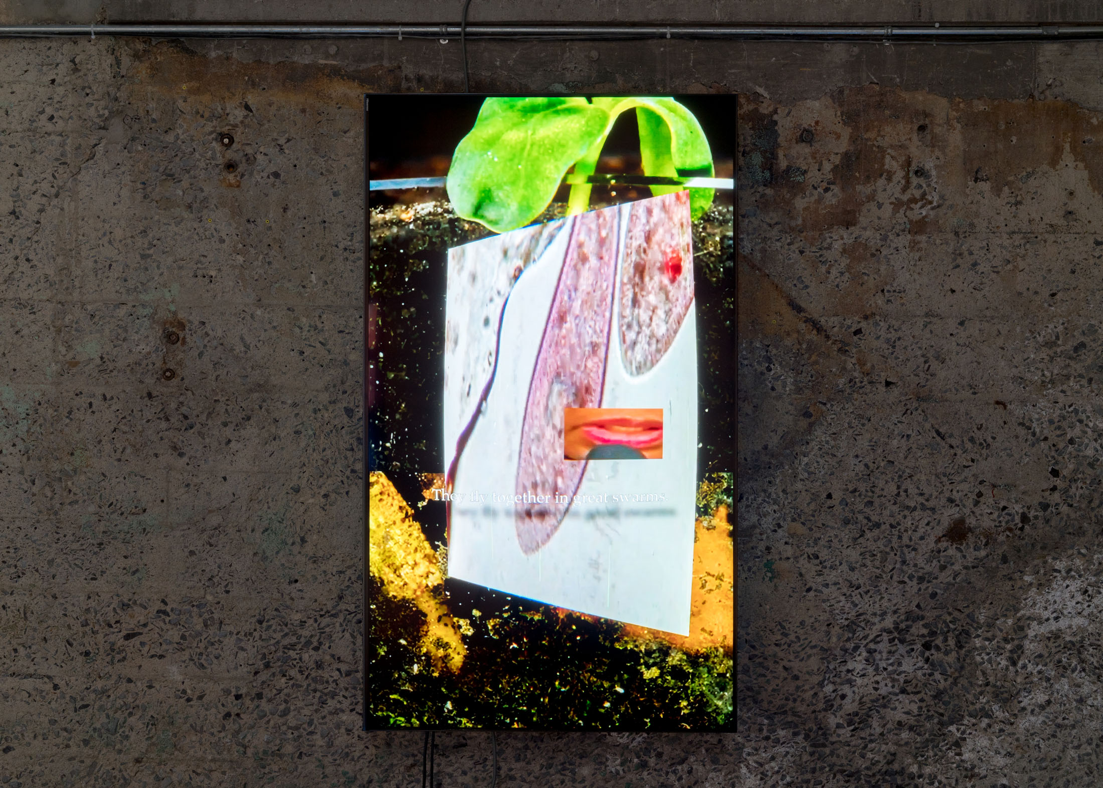 The imagery moves between infrastructural and organic registers: wiring systems appear alongside igneous foundations, biological traces of growth, and the human body. These material juxtapositions underscore how technological networks and environmental processes mirror one another in their fragility and capacity for transformation. The artworks take form as vessels for advertising, presented on commercial signage and screens, using the language of public display to question how images circulate, persuade, and shape collective understanding.