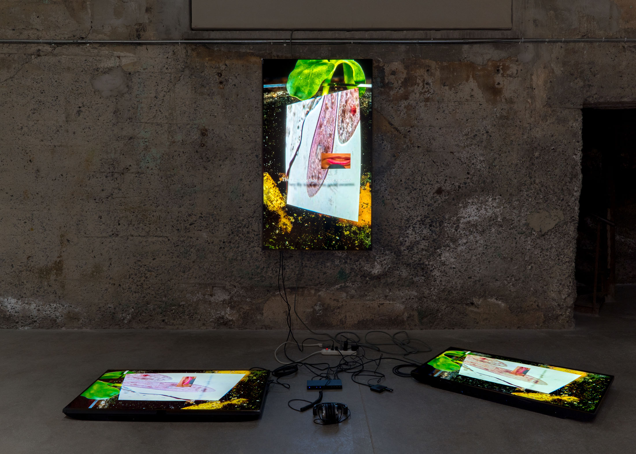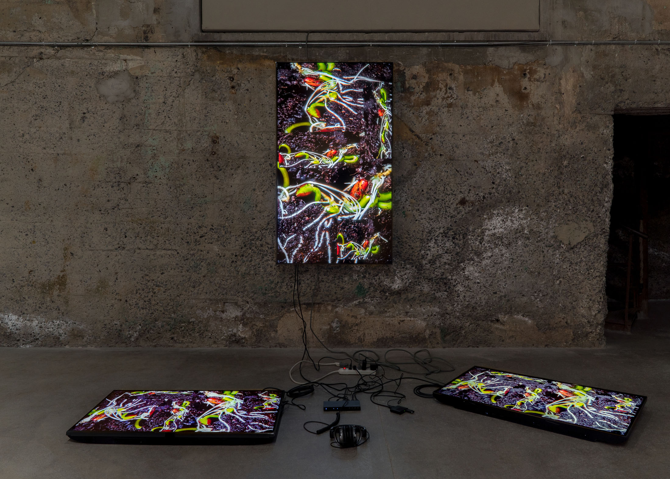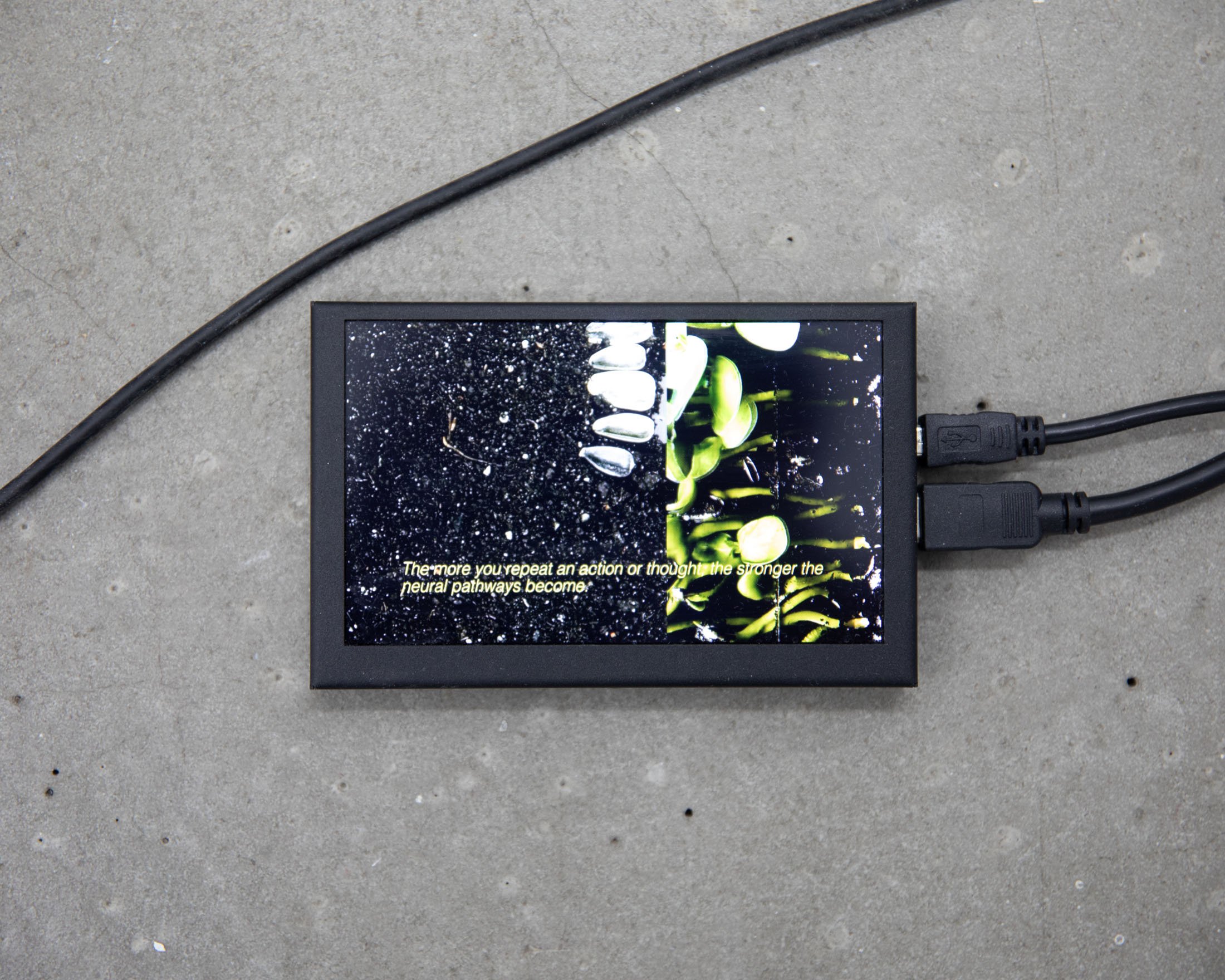 Processes of splicing, cutting, and rerecording guide the production of these works. Deconstruction operates as the central method, where fragments are isolated, repeated, and rearranged to generate new associations. Through this gesture, Hunter’s multimedia video, sound, and photography artworks resist linearity and coherence, instead centering ideas of adaptation and growth.