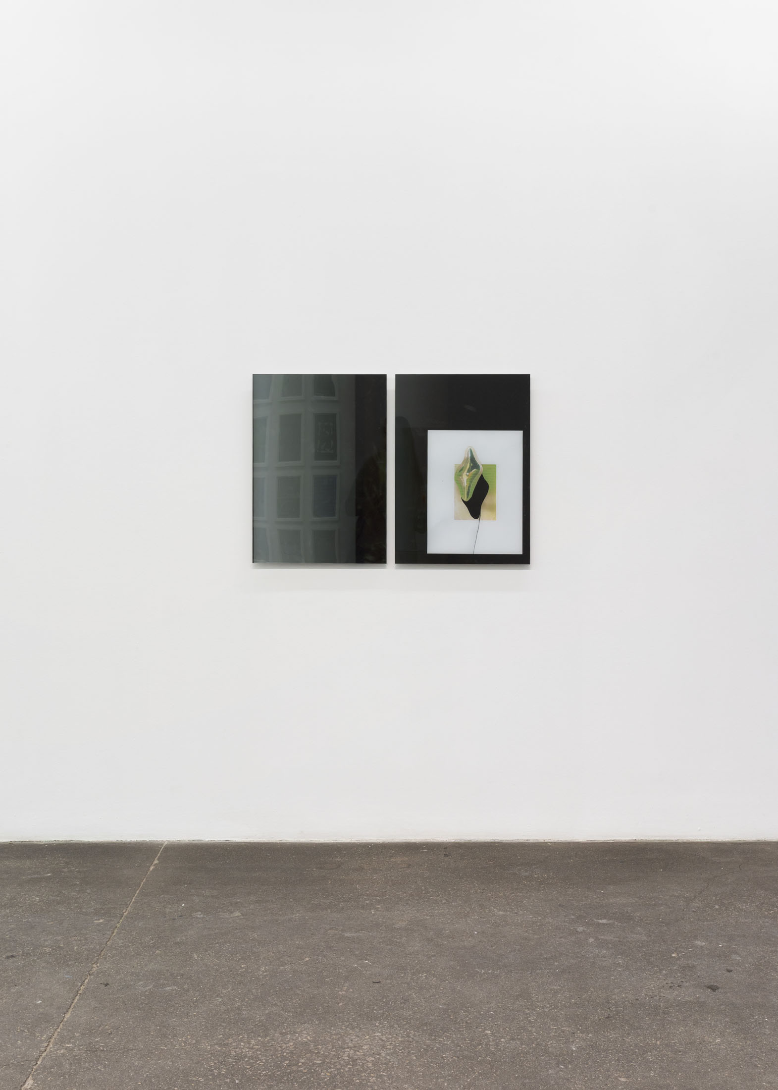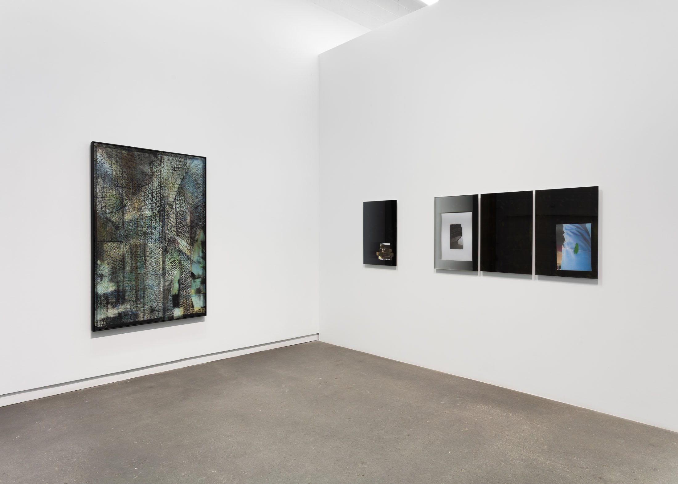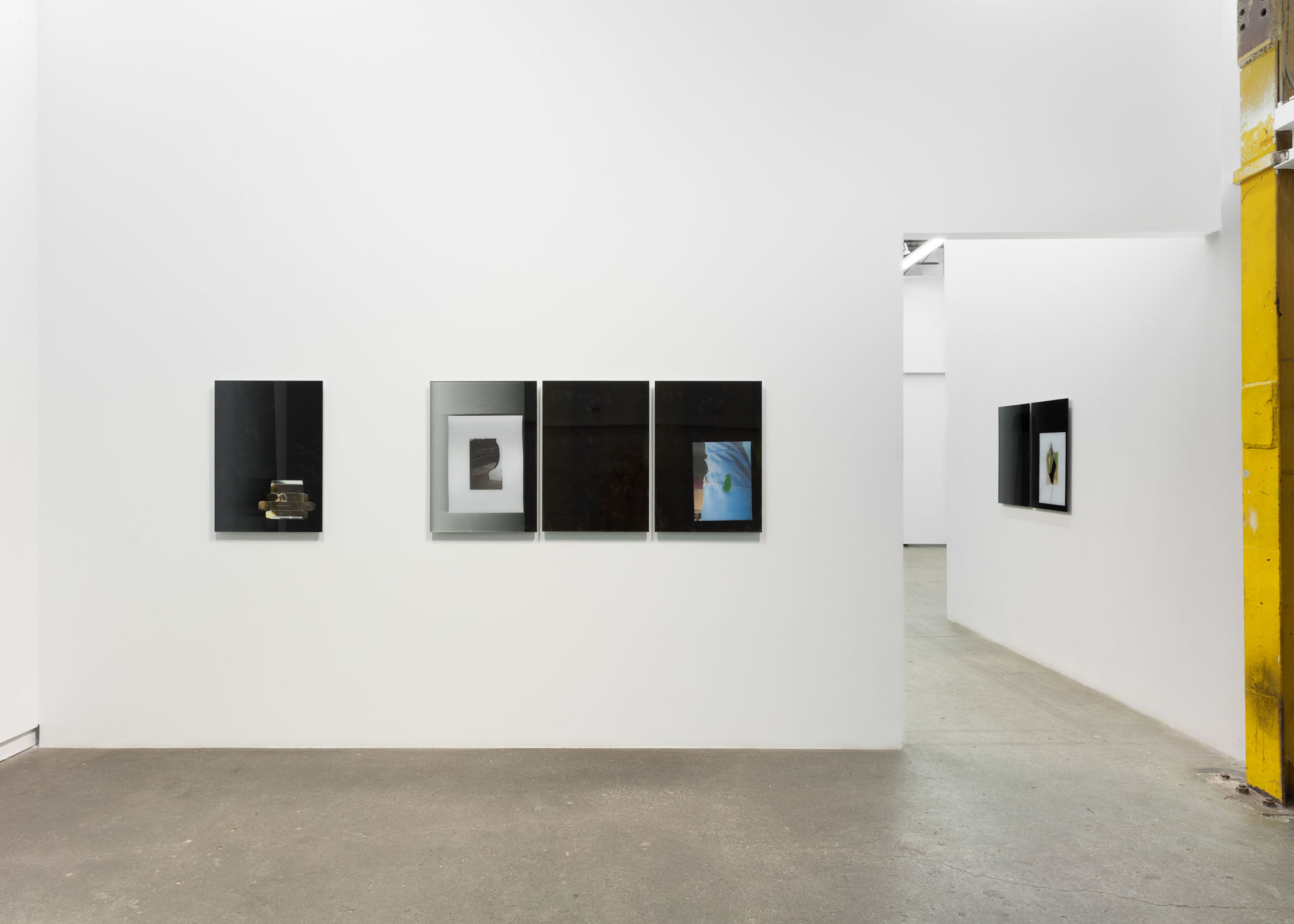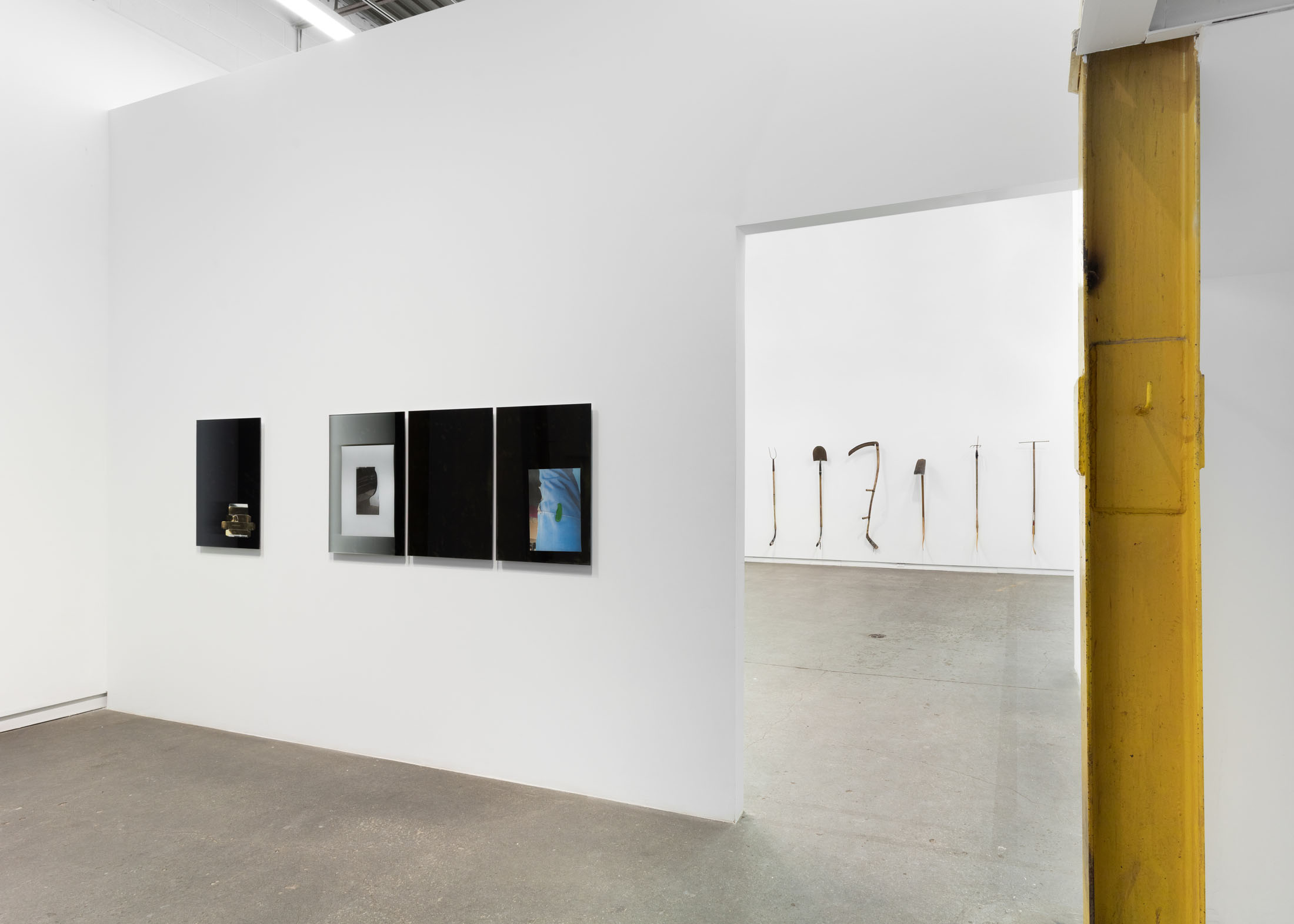 Dadson’s Cuneiform (2012-ongoing) is a series of photographs depicting spots where signs such as those declaring NO PARKING, NO SKATEBOARDING, and NO LOITERING have been removed, the leftover glue creating accidental marks that are often “surprisingly calligraphic and painterly.”[1] Shown together, they create their own typology, their title referencing one of the oldest writing systems. Similarly capturing the residue of an action, Belerique’s photographic series The Archer (2014) is made using a digital home-office scanner. Real objects—some more recognizable than others—float on a surface of gradated greys and blacks, created by Belerique’s manipulation of light from the scanner and the room, which together act as a surrogate aperture. Scattered across all the images are the artists fingerprints—marks and smears leftover from her arrangement of items atop the glass of the scanner, assembling and creating the images we see.