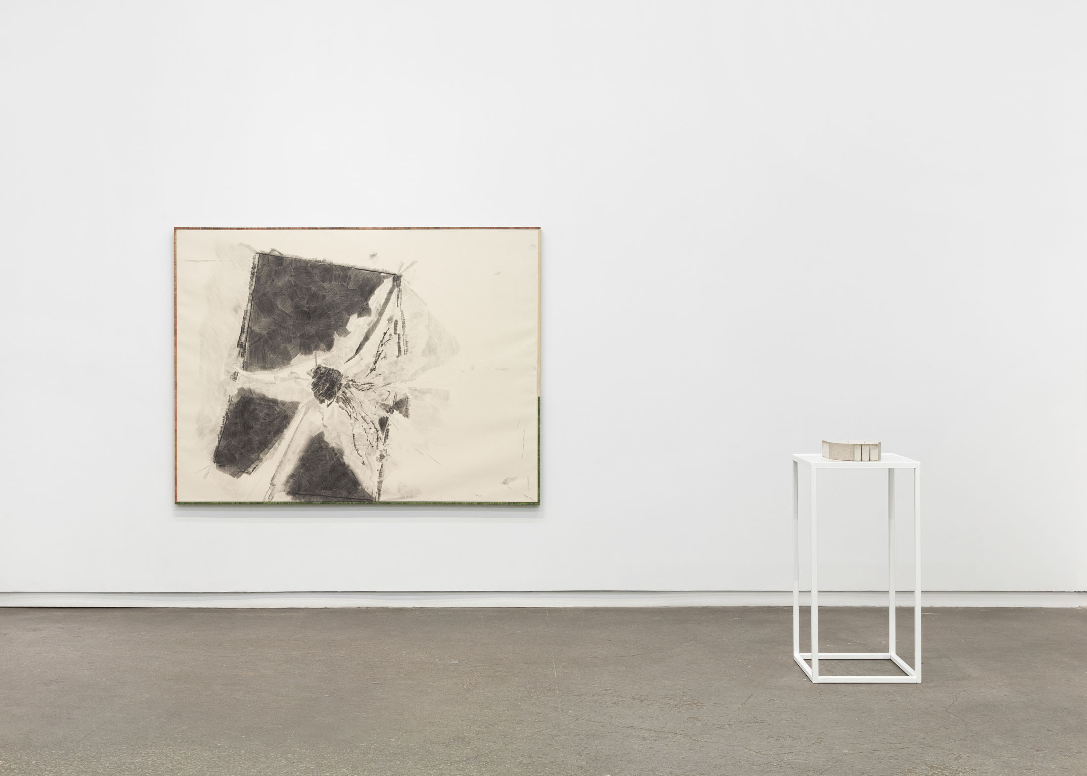 In Liddington’s work, The plant proceeded to tip as I drew it, at which point I made the decision to let it fall as I felt it would improve the composition. (2015), the object of his still life drawing is covered with canvas as he attempts to capture its form, reproducing its physical qualities through touch and, to some degree, memory. Sciarrino’s sculpture North Facingon December 21 (2014) also depicts something unseen. In a 3D rendering program, Sciarrino builds a fictional public sculpture. Within that digital world, sunlight is then projected on to the imagined sculpture, as it would be cast on the 21st of December, the shortest day of the year. Sciarrino then copies the lines of the sculpture’s shadows, which are finally water jet cut into a block of concrete as if traced on a public sidewalk.