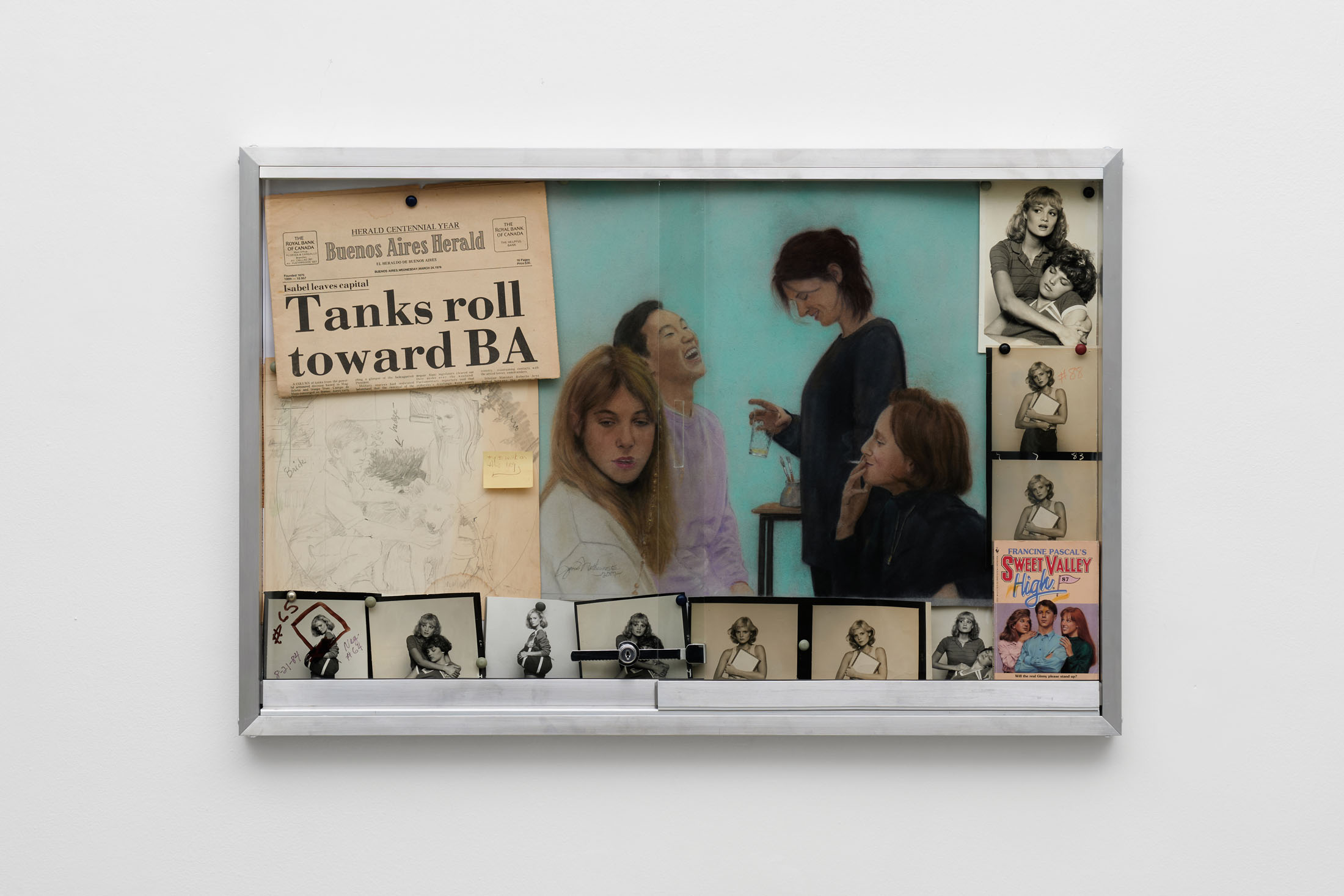 Victoria Colmegna, Lolita Taxi Standard Futura, 2025, exhibition view, hipopoety, ArgentinaVictoria Colmegna, Lolita Taxi Standard Futura, 2025, exhibition view, hipopoety, ArgentinaVictoria Colmegna, Lolita Taxi Standard Futura, 2025, exhibition view, hipopoety, ArgentinaVictoria Colmegna, Lolita Taxi Standard Futura, 2025, exhibition view, hipopoety, ArgentinaVictoria Colmegna, Lolita Taxi Standard Futura, 2025, exhibition view, hipopoety, ArgentinaVictoria Colmegna, Lolita Taxi Standard Futura, 2025, exhibition view, hipopoety, ArgentinaVictoria Colmegna, Tanks roll towards BA, Aluminum display case with key, chalk pastel commissioned from James Mathewuse, Buenos Aires Herald, book, photos, and original sketches, 2016/2025, 60 x 90 cmVictoria Colmegna, “Al beber un líquido, se encoge, pero olvida la llave dentro de la habitación y no puede alcanzarla.” From the series Giftshop watercolors, Watercolor and ink on canvas, 2025, 34 x 47 cmVictoria Colmegna, Friendship and service, From the series Giftshop watercolors, Watercolor and ink on canvas, 2025, 34 x 45 cmVictoria Colmegna, S/t, From the series Giftshop watercolors, Watercolor and ink on canvas, 2025, 34 x 45 cmVictoria Colmegna, Lluvia de cartas, From the series Giftshop watercolors, Watercolor and ink on canvas, 2025, 34 x 47 cmVictoria Colmegna, A través del espejo, From the series Giftshop watercolors, Watercolor and ink on canvas, 2025, 47,5 x 34 cmVictoria Colmegna, Car Scene, Synthetic enamel on a Ford Falcon Futura part, 2025, 74 x 119 cmVictoria Colmegna, Room Scene, Synthetic enamel on a Ford Falcon Futura part, 2025, 74 x 119 cmVictoria Colmegna, Chess Scene, Synthetic enamel on a Ford Falcon Futura part, 2025, 119 x 113 cmVictoria Colmegna, Embrujados, Table, chairs, photocopies of the book Esoteric Astrology by López Rega, crayons, 2025, Variable dimensions