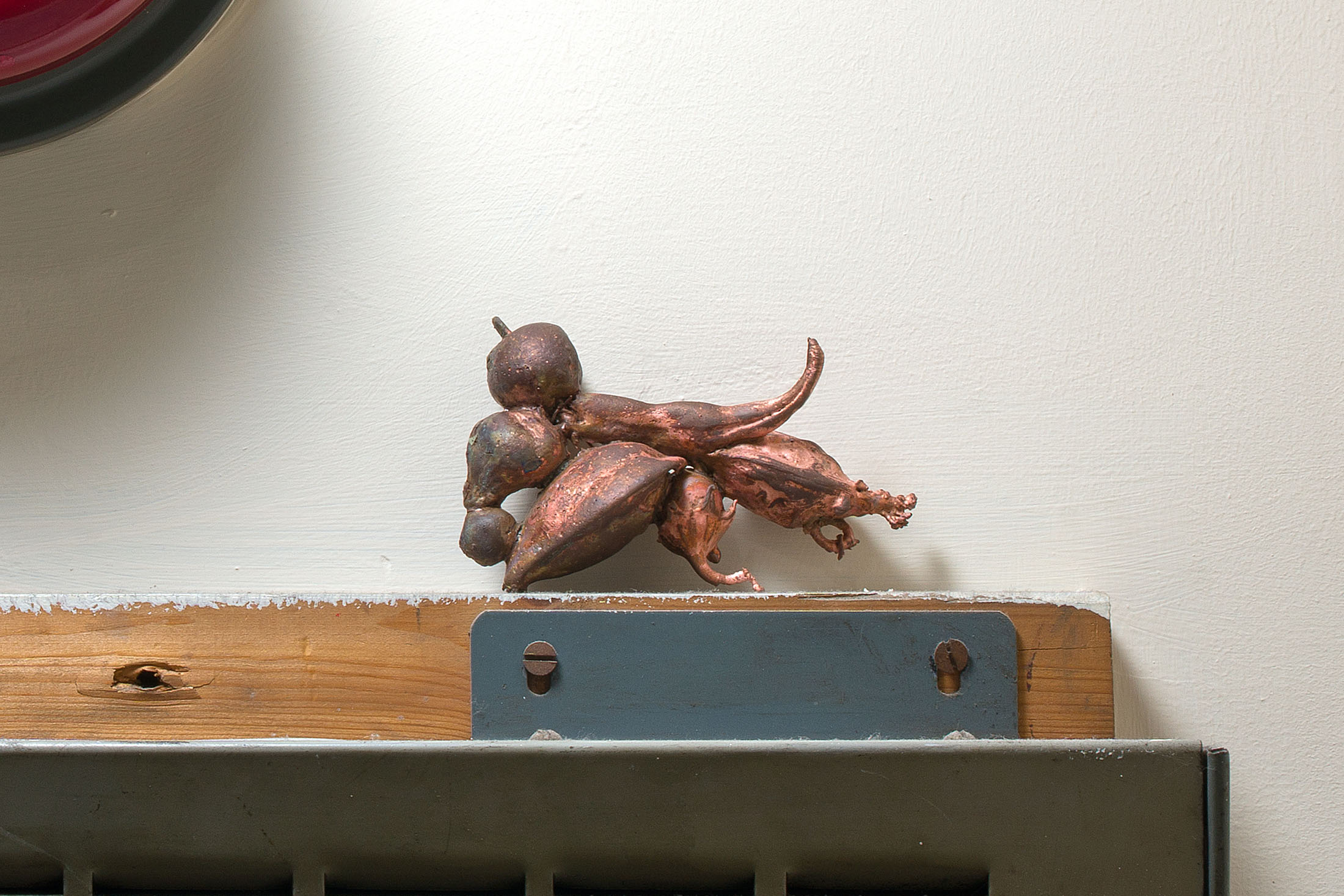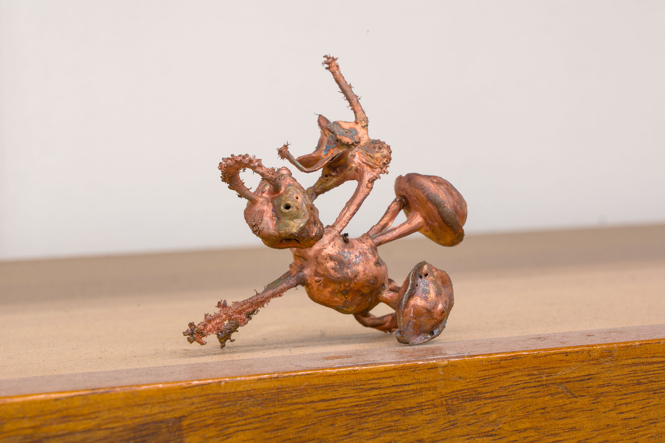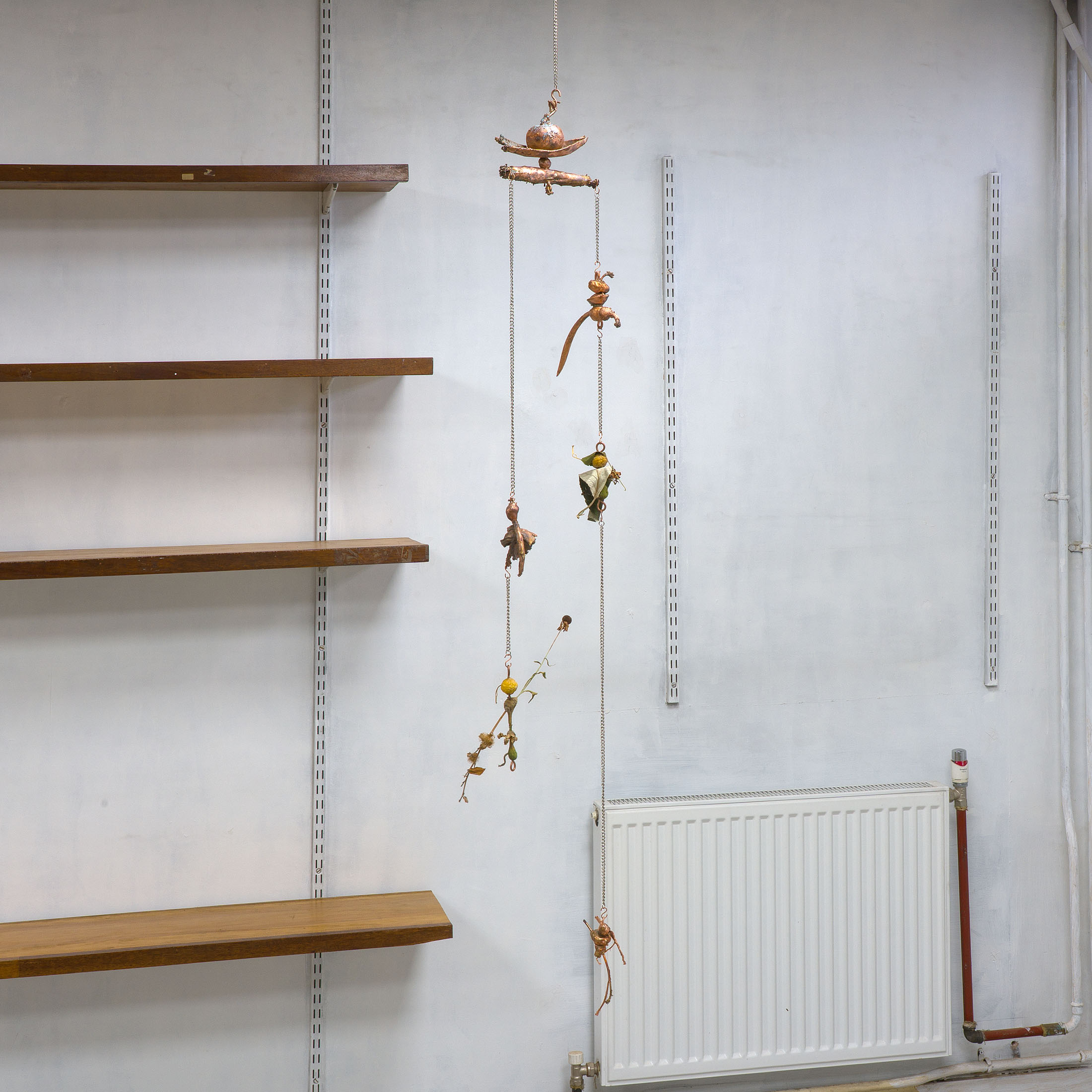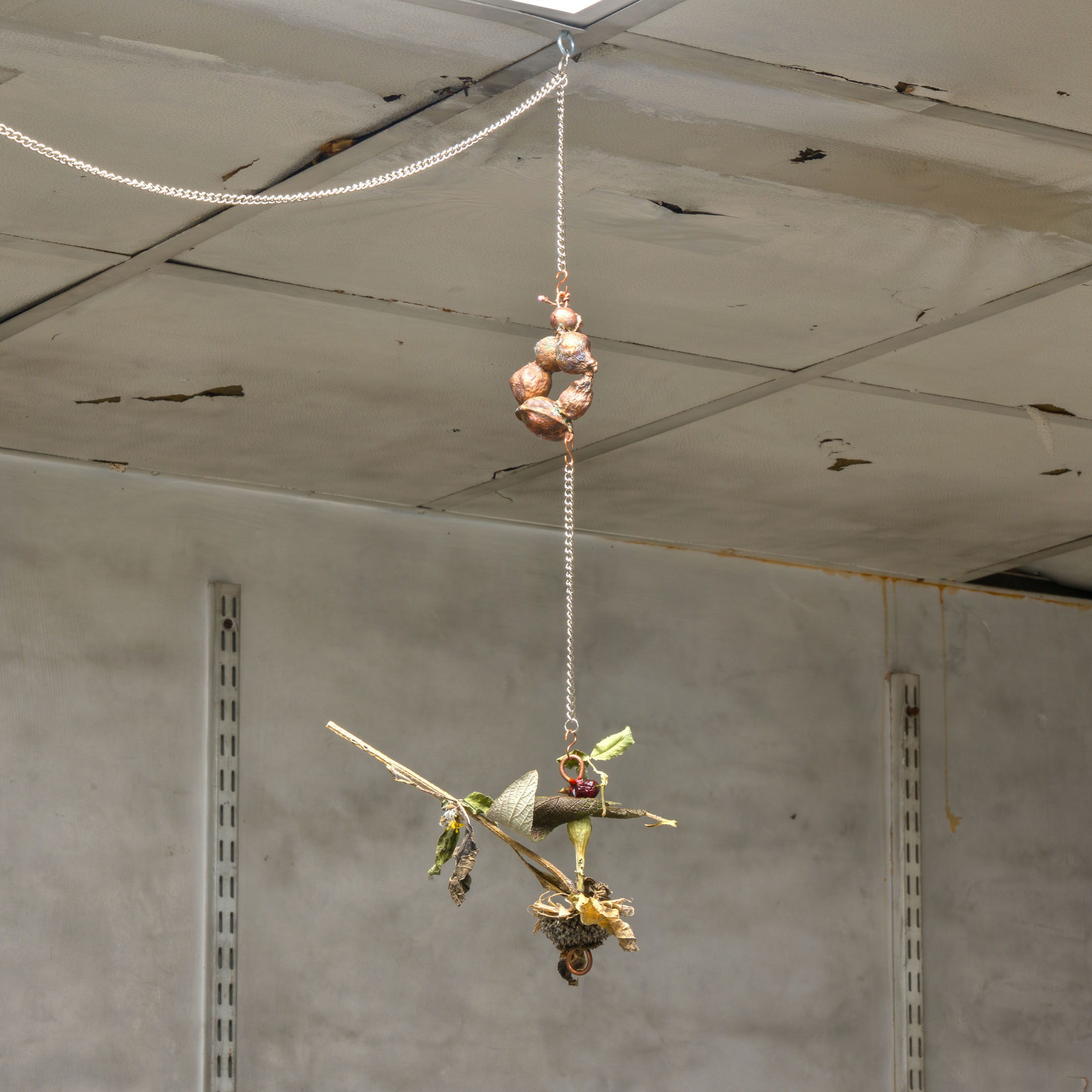 Umico Niwa’s practice moves between sculpture and installation, creating worlds where myth and animism intertwine. Often fashioned from scavenged or organic materials – electroplated branches, fruit rinds, dried flora – her hybrid beings appear both mischievous and tender, inviting viewers to project memory and fantasy onto their delicate frames, blurring the boundary between play and ritual. From intimate objects to site-specific installations, Niwa resists binary definitions, suggesting that selfhood is an ongoing metamorphosis – a process of disintegration and recombination that yields new, often unruly forms of kinship.