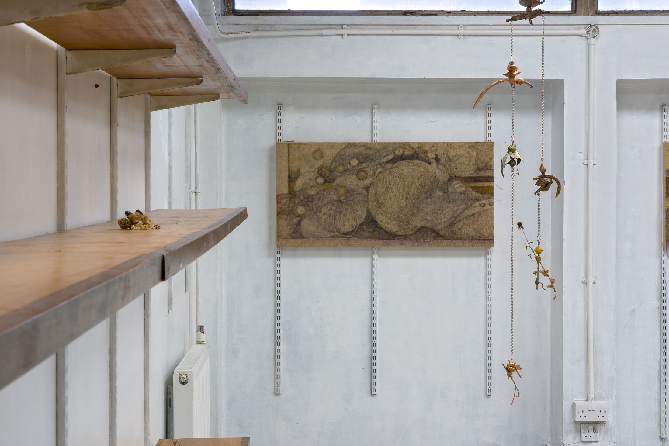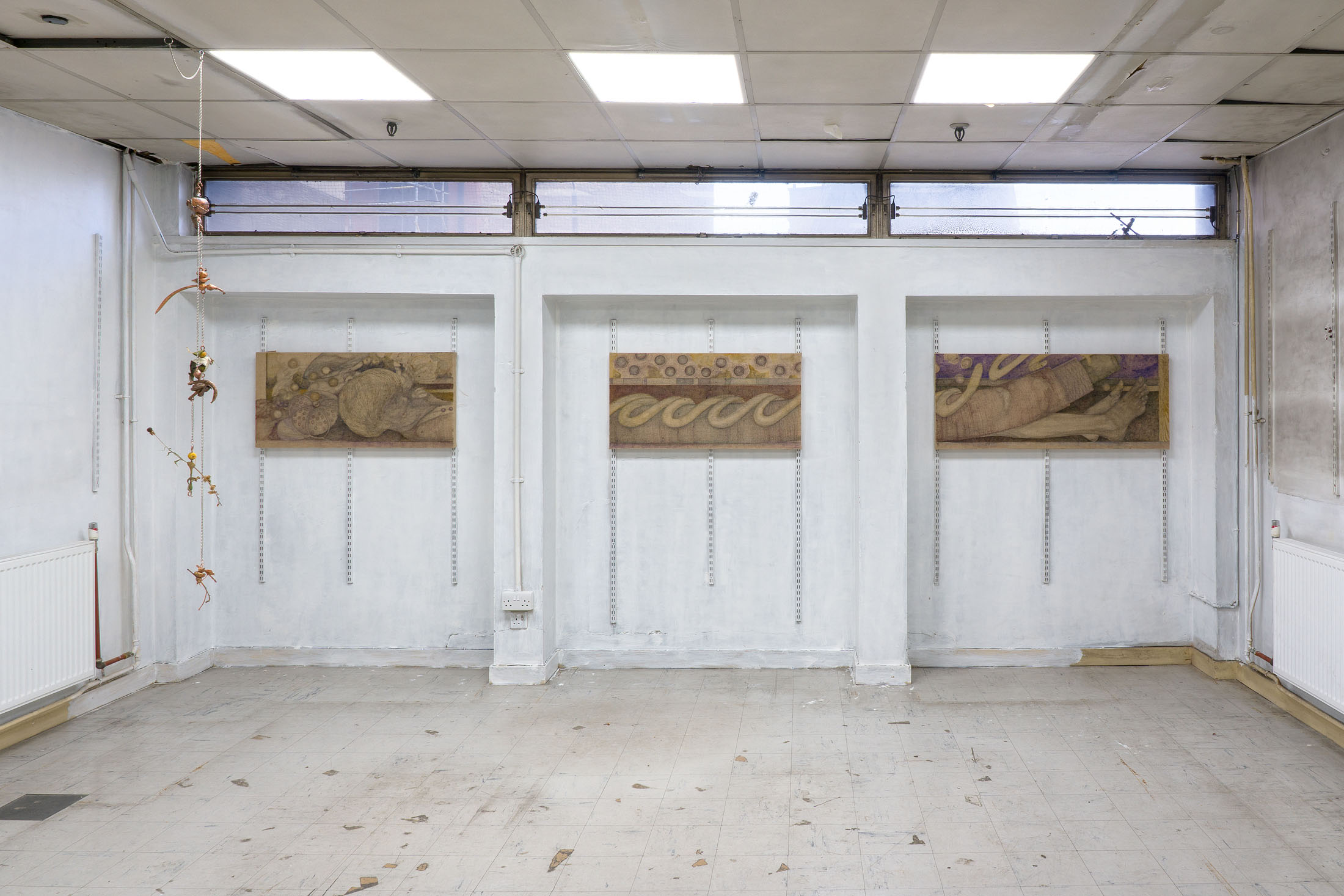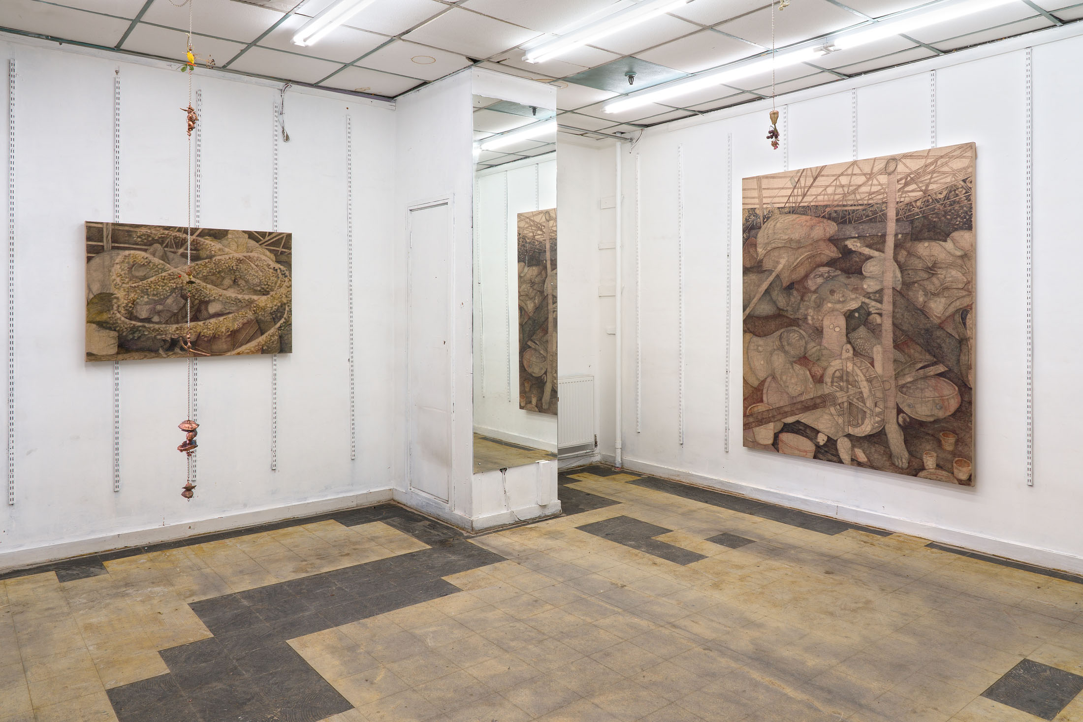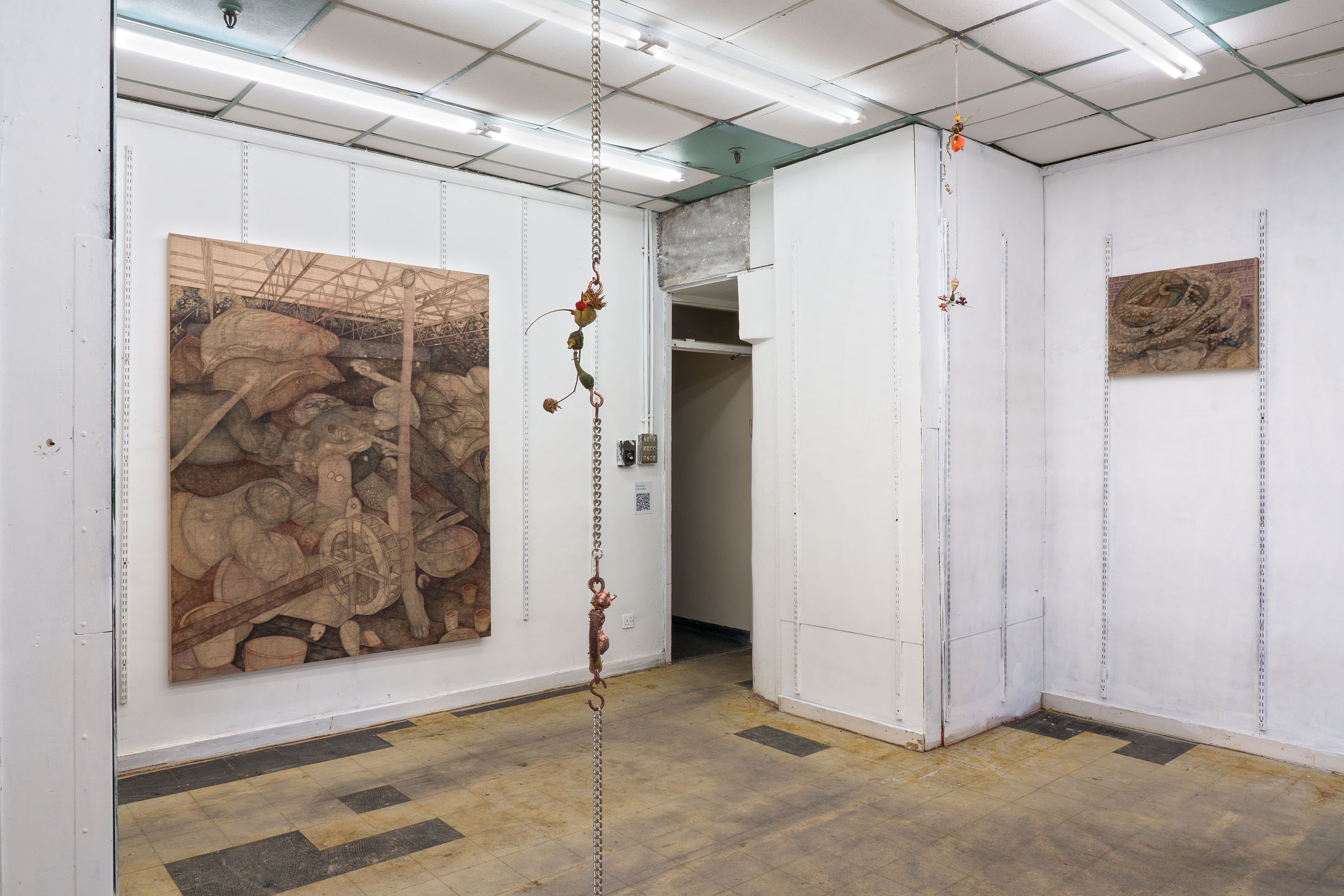 Public Gallery is pleased to present Gut Friendly, a duo exhibition of painting and sculpture by artists Victor Bengtsson and Umico Niwa, whose individual practices uniquely trace cycles of decay and renewal, together meditating on digestion as a poetic framework for processes of transformation. From this dialogue emerges a meditation on friendship – a porous exchange through which individual forms are metabolized into hybridized wholes, conjured through mythical acts of excavation and preservation.