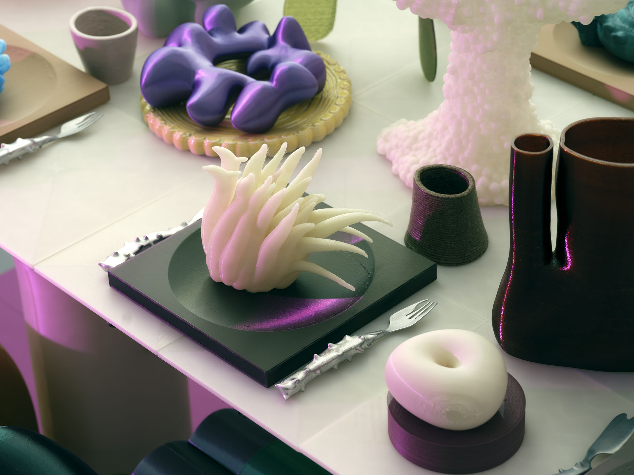 Wang & Söderström’s work is characterised by playful design and sensual forms. In their pieces, the duo creates new synthetic realities. It focuses on how the digital world affects us humans – and how ecology, materials and the senses are changing in the digital age.