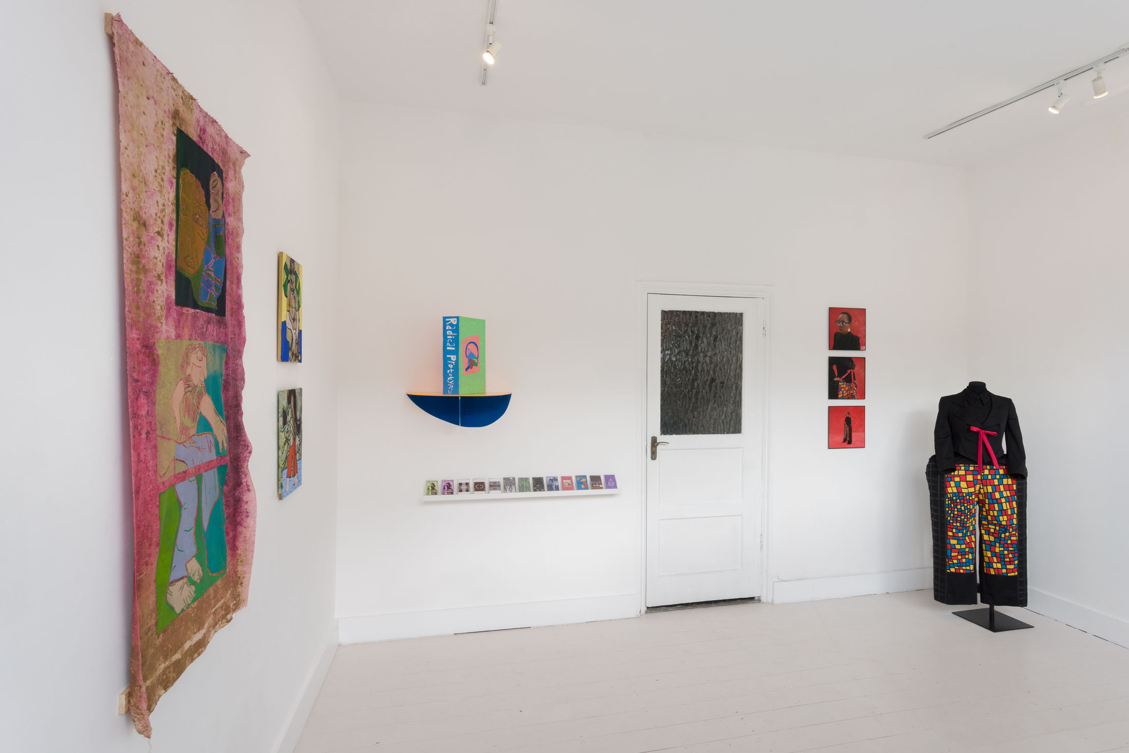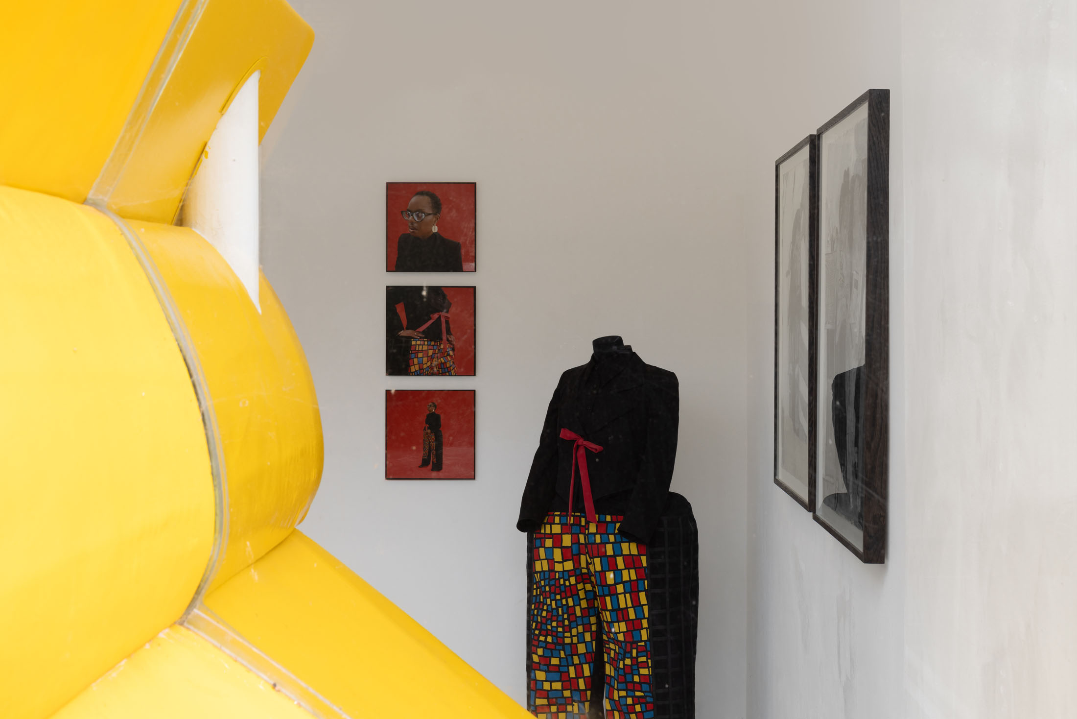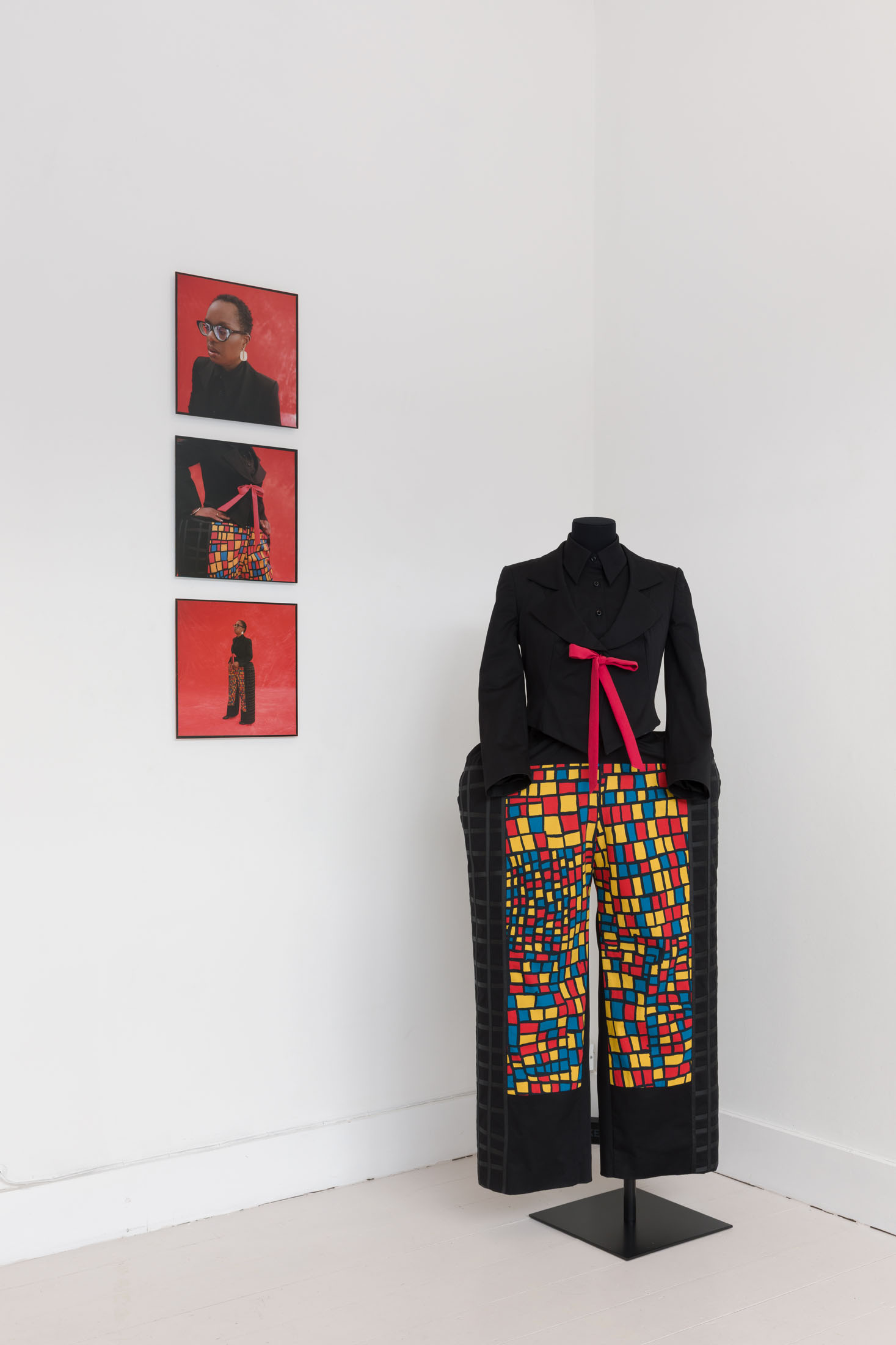 Featuring her kaleidoscopic drawings, Ntiense Eno-Amooquaye’s sculptural garments reimagine historic costume and avant-garde couture. For this exhibition we see the immaculately tailored garment mounted alongside a striking series of photographic self-portraits of the artist wearing the piece. These images, which evoke studio fashion photography, present the artist embodying an act of self-transformation. Providing a soundtrack to the space we hear a mixtape selected by the artist as background music for her photoshoot. Eno-Amooquaye has collaborated with FTHo since 2019,