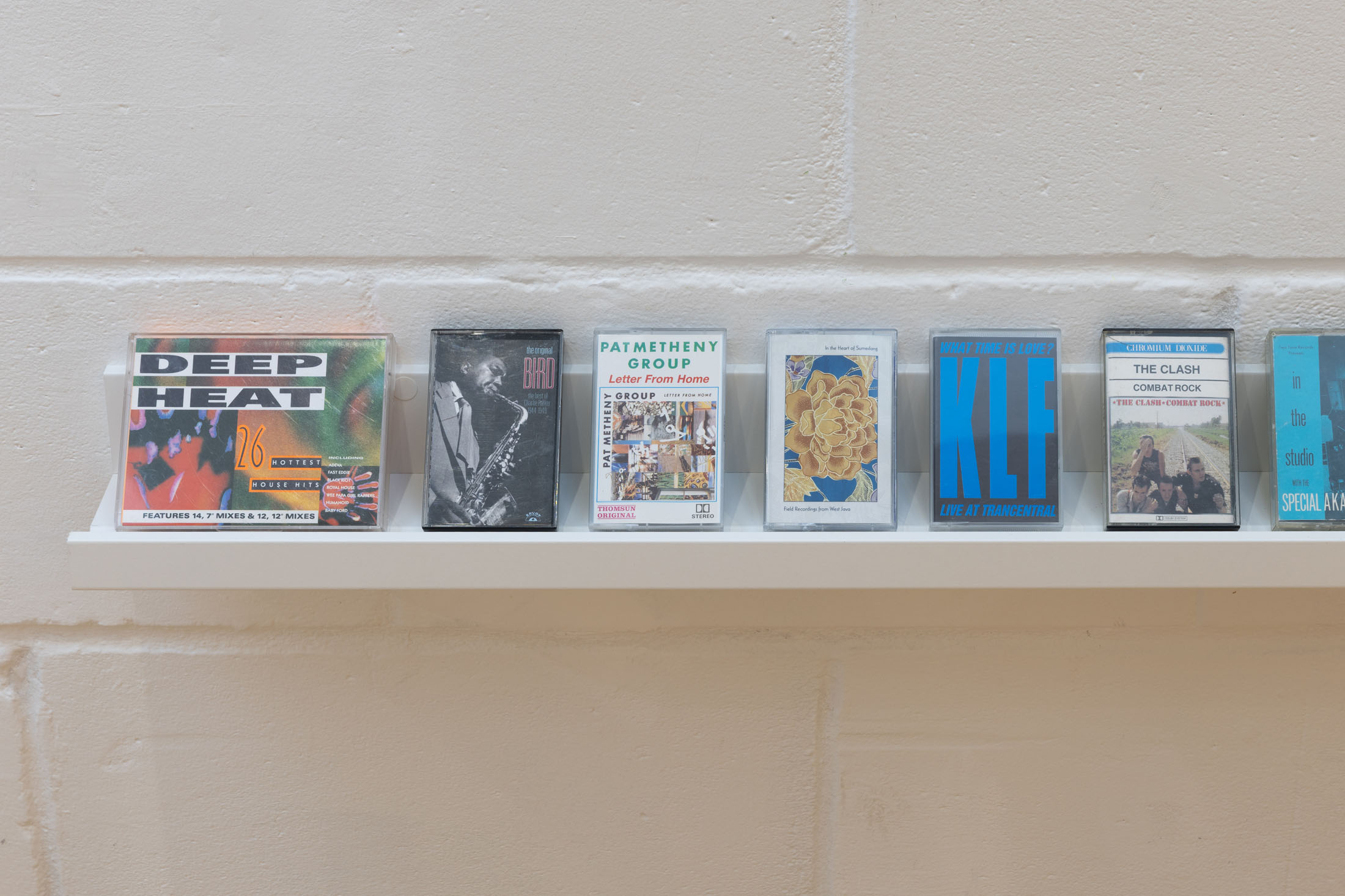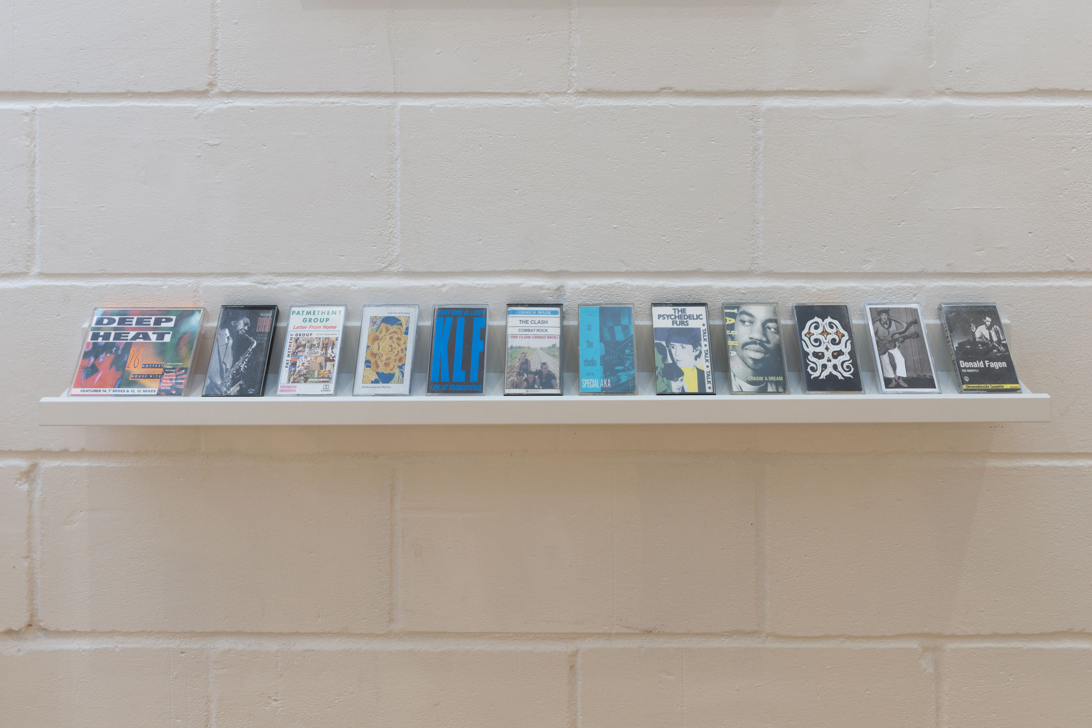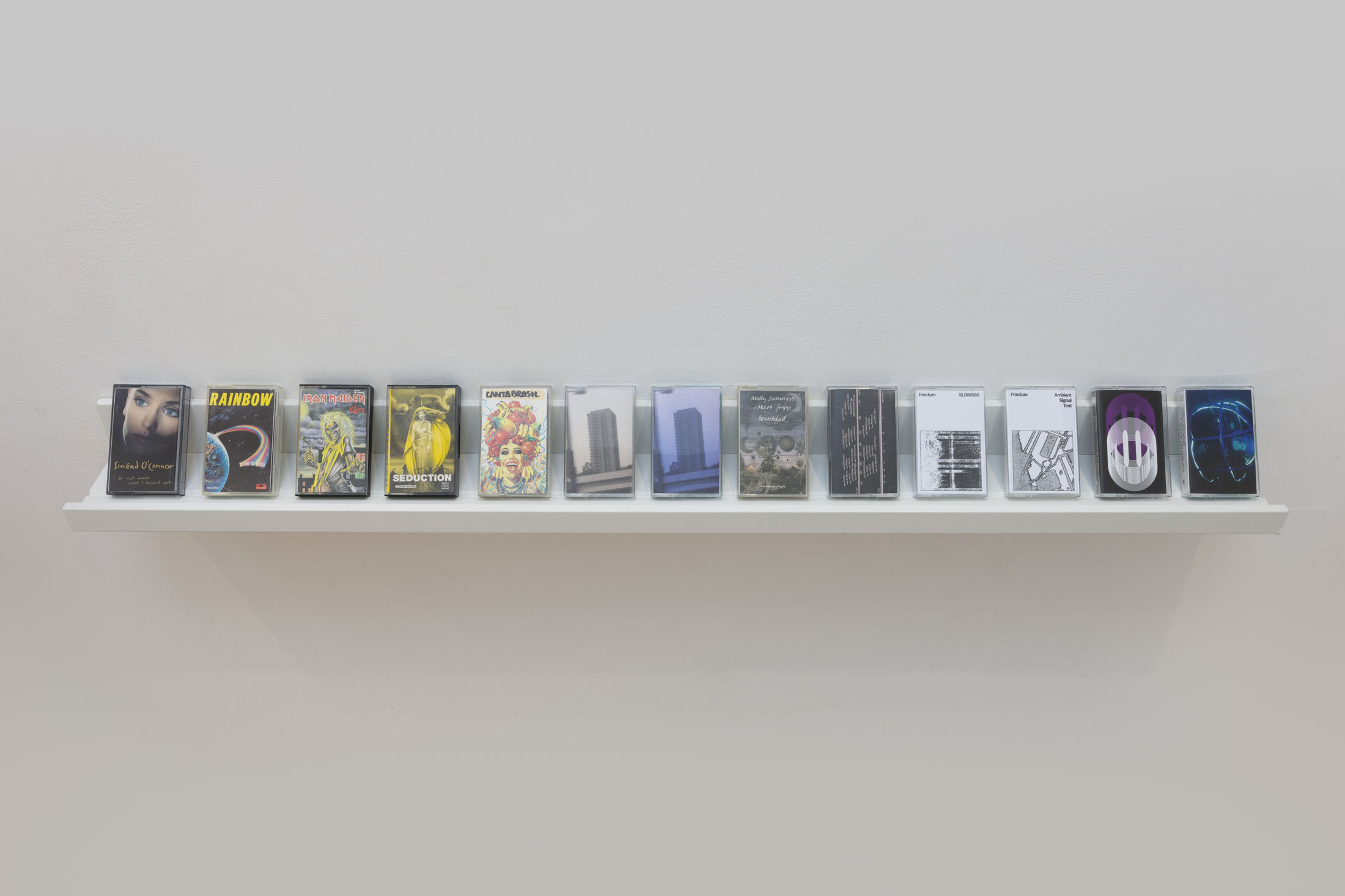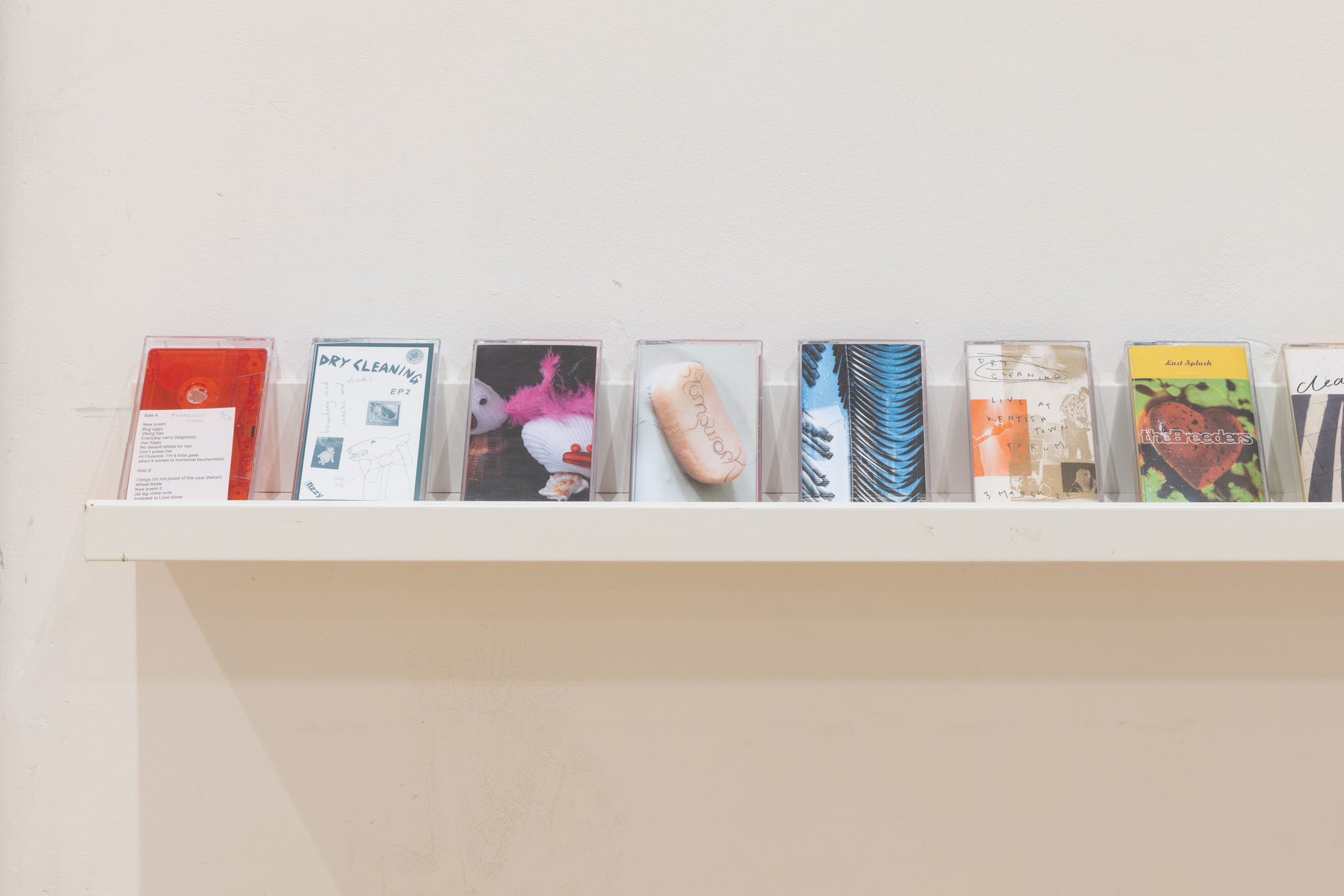 A collection of cassette tapes curated by the artists, and featuring contributors close to FTHo and Intoart, has grown over time as the exhibition developed. Cassettes are available to listen to in the gallery alongside the artworks, serving as an audio mapping of the cultural scenes feeding into the production of the works on display.