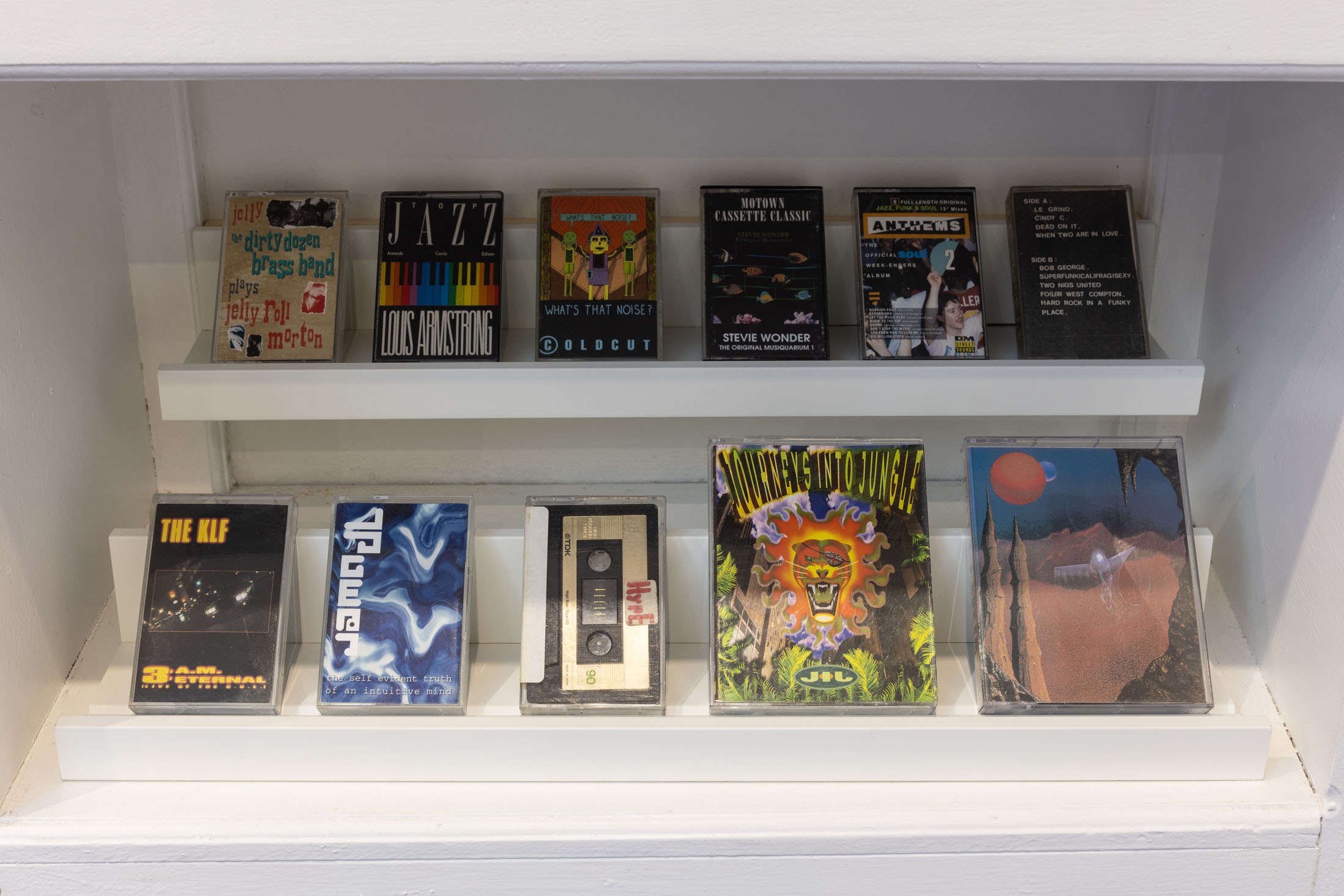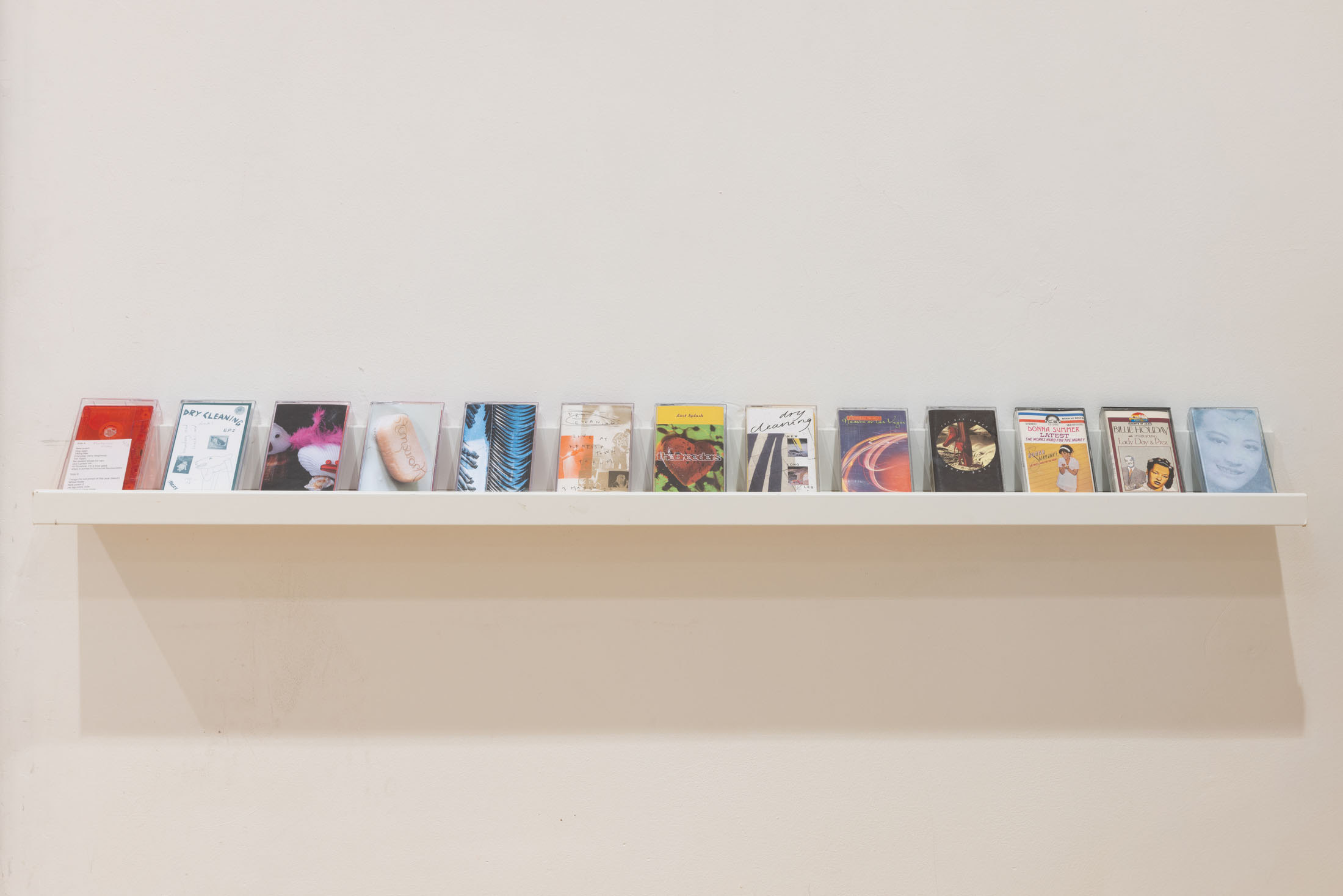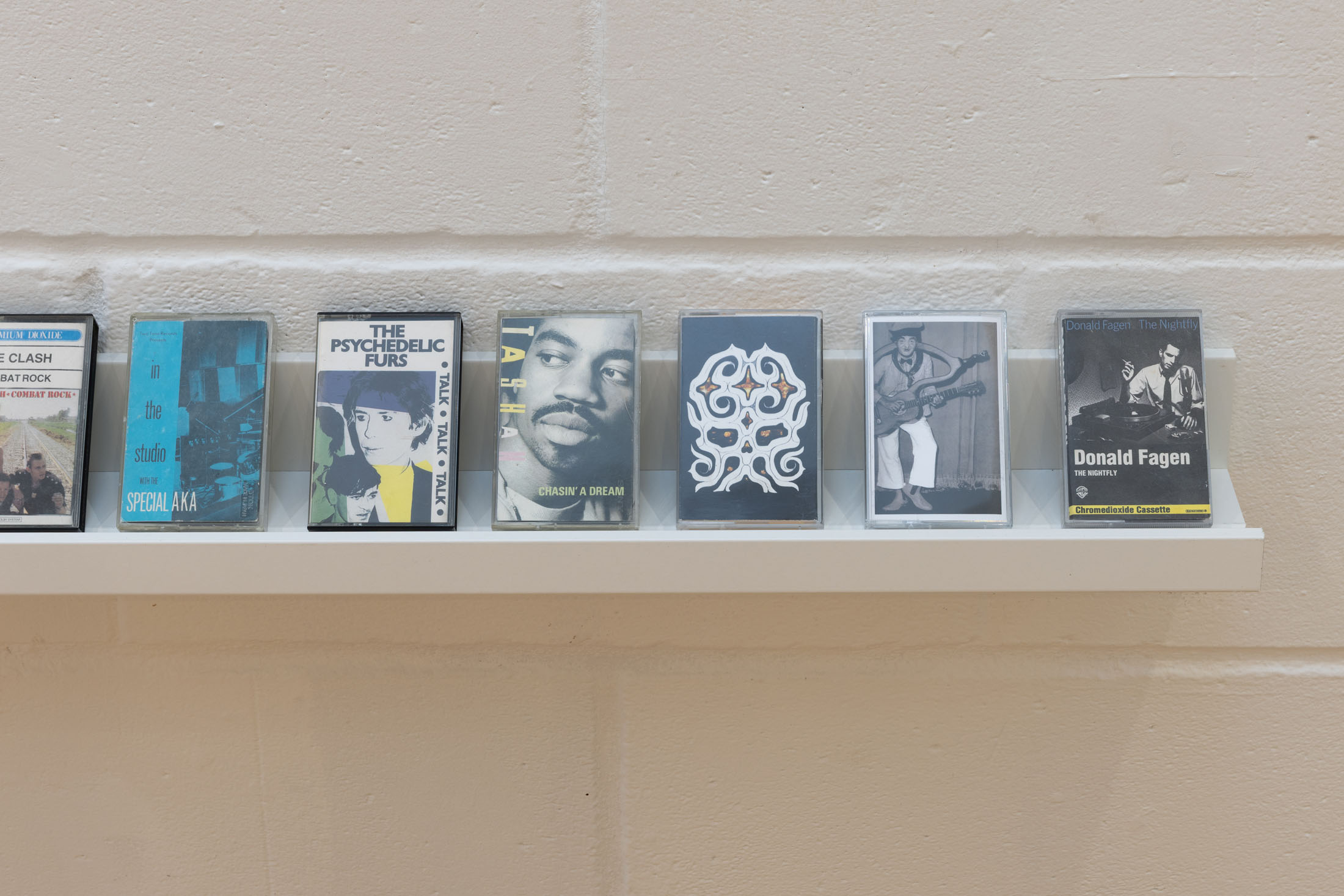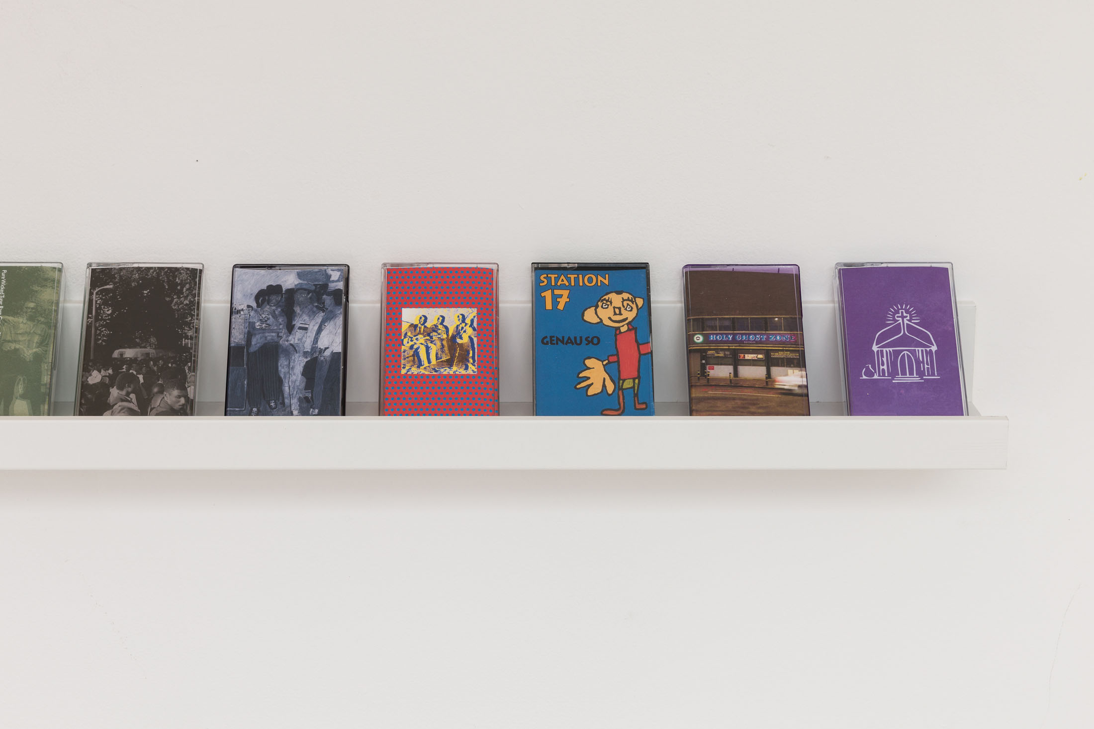 A collection of cassette tapes curated by the artists, and featuring contributors close to FTHo and Intoart, has grown over time as the exhibition developed. Cassettes are available to listen to in the gallery alongside the artworks, serving as an audio mapping of the cultural scenes feeding into the production of the works on display.