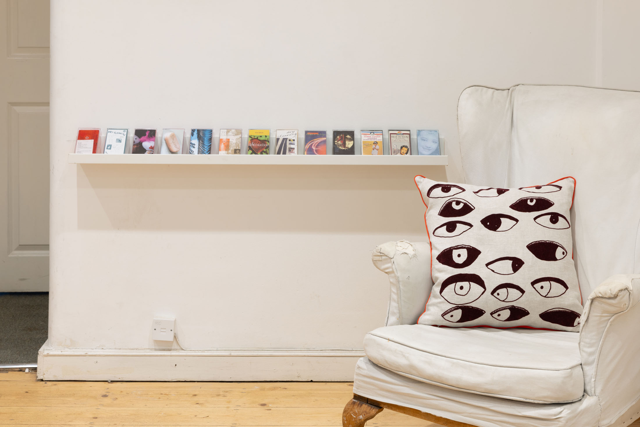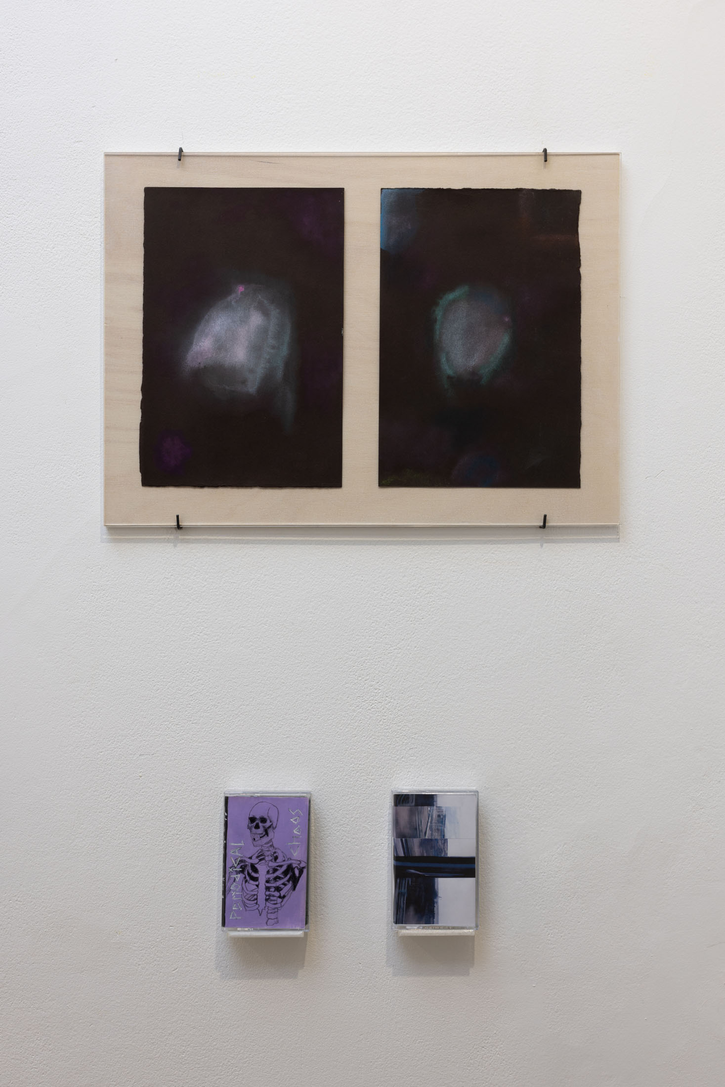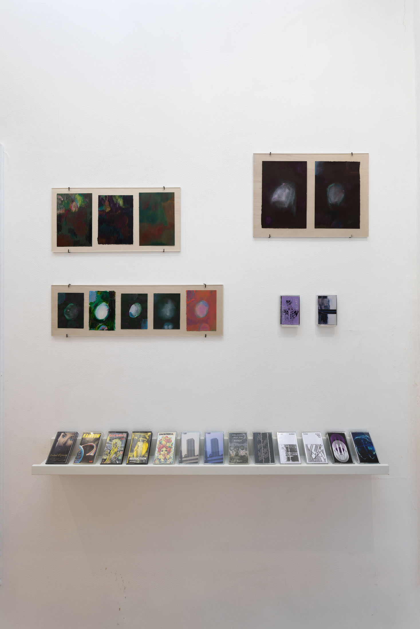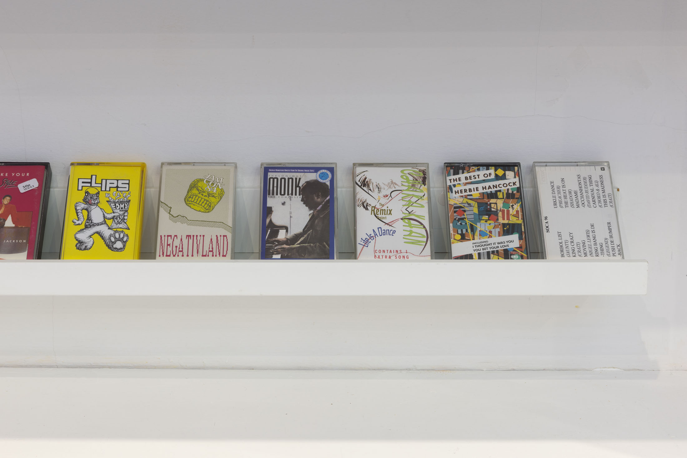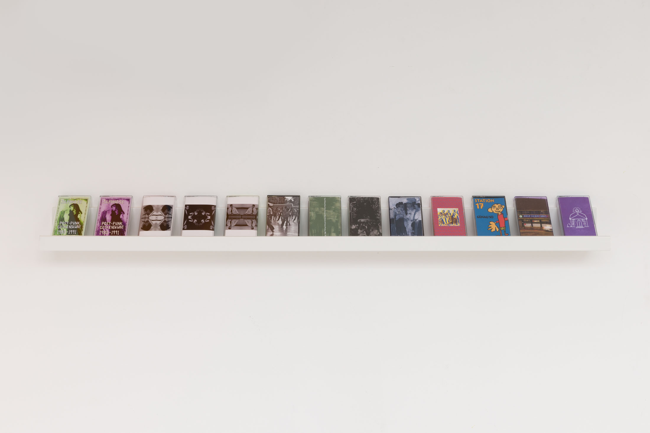 A collection of cassette tapes curated by the artists, and featuring contributors close to FTHo and Intoart, has grown over time as the exhibition developed. Cassettes are available to listen to in the gallery alongside the artworks, serving as an audio mapping of the cultural scenes feeding into the production of the works on display.