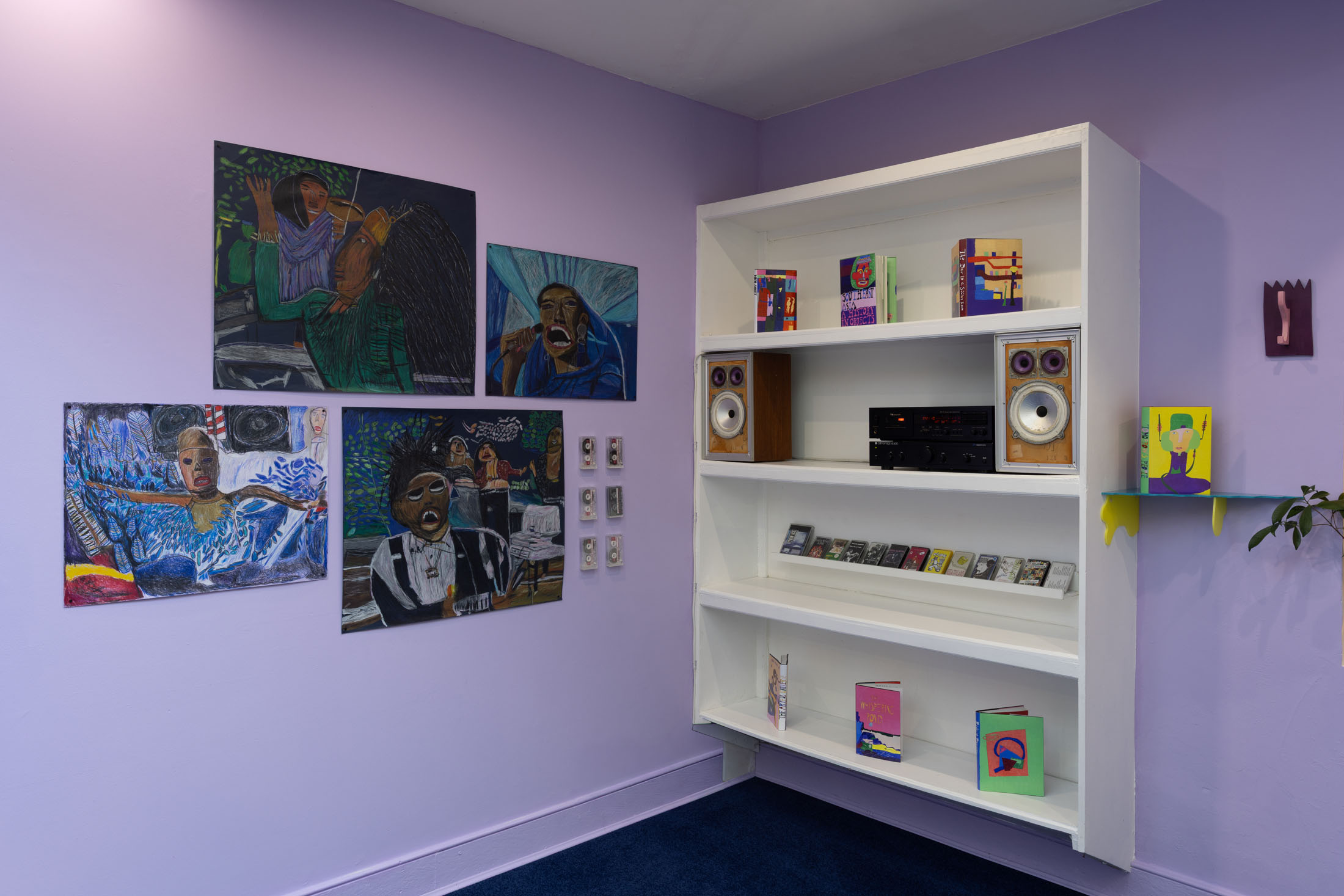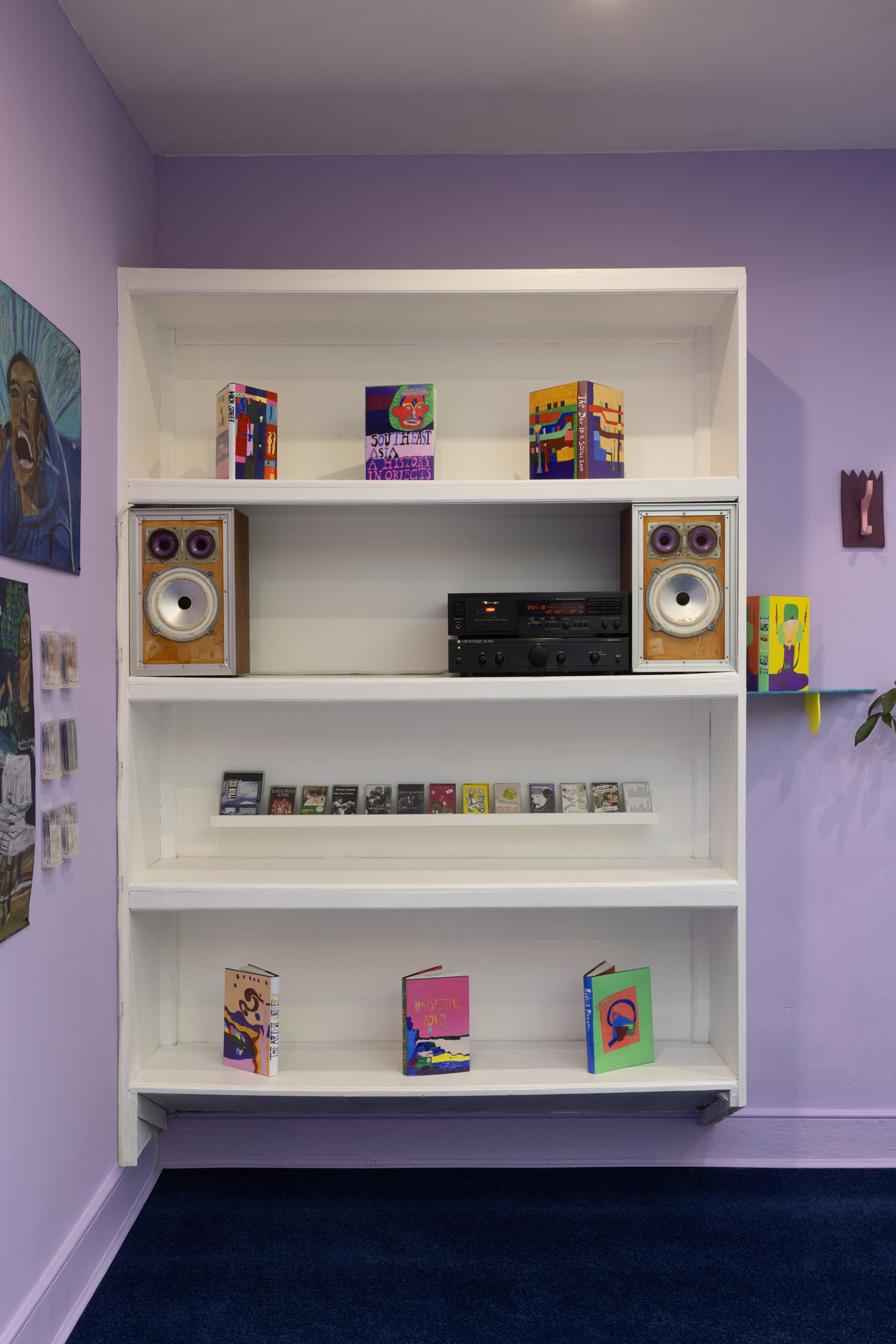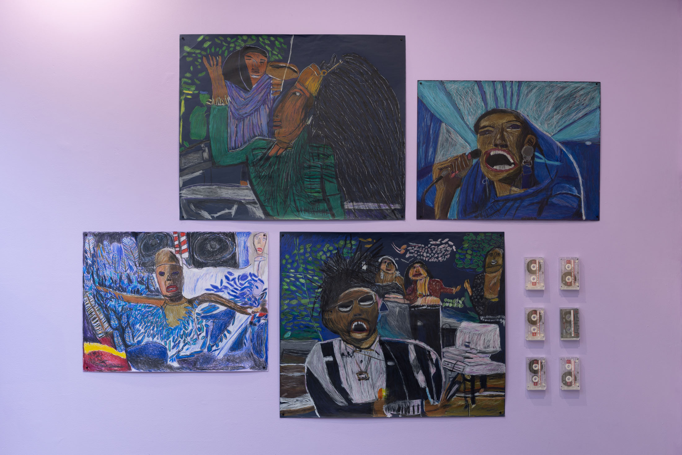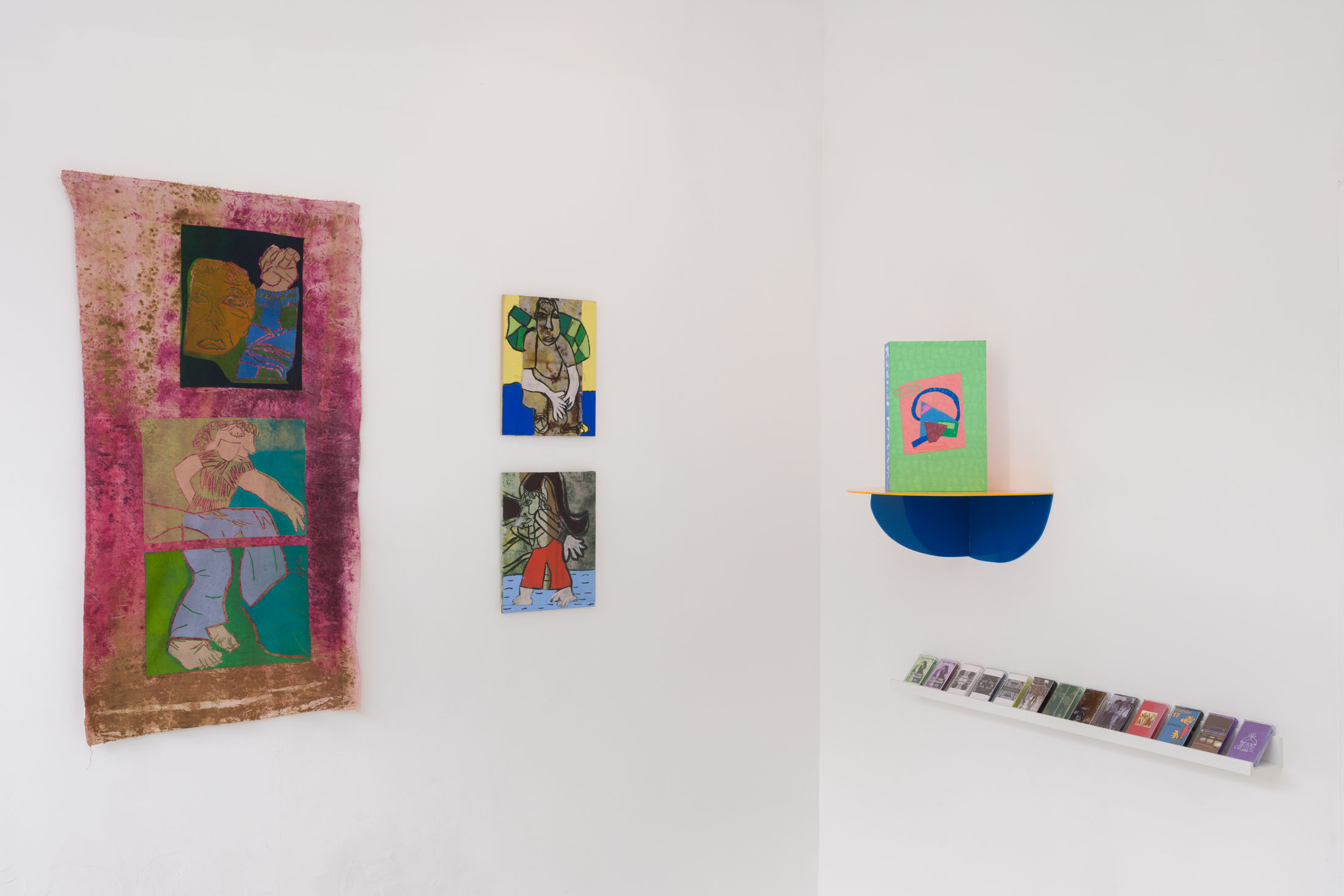 A collection of cassette tapes curated by the artists, and featuring contributors close to FTHo and Intoart, has grown over time as the exhibition developed. Cassettes are available to listen to in the gallery alongside the artworks, serving as an audio mapping of the cultural scenes feeding into the production of the works on display.
