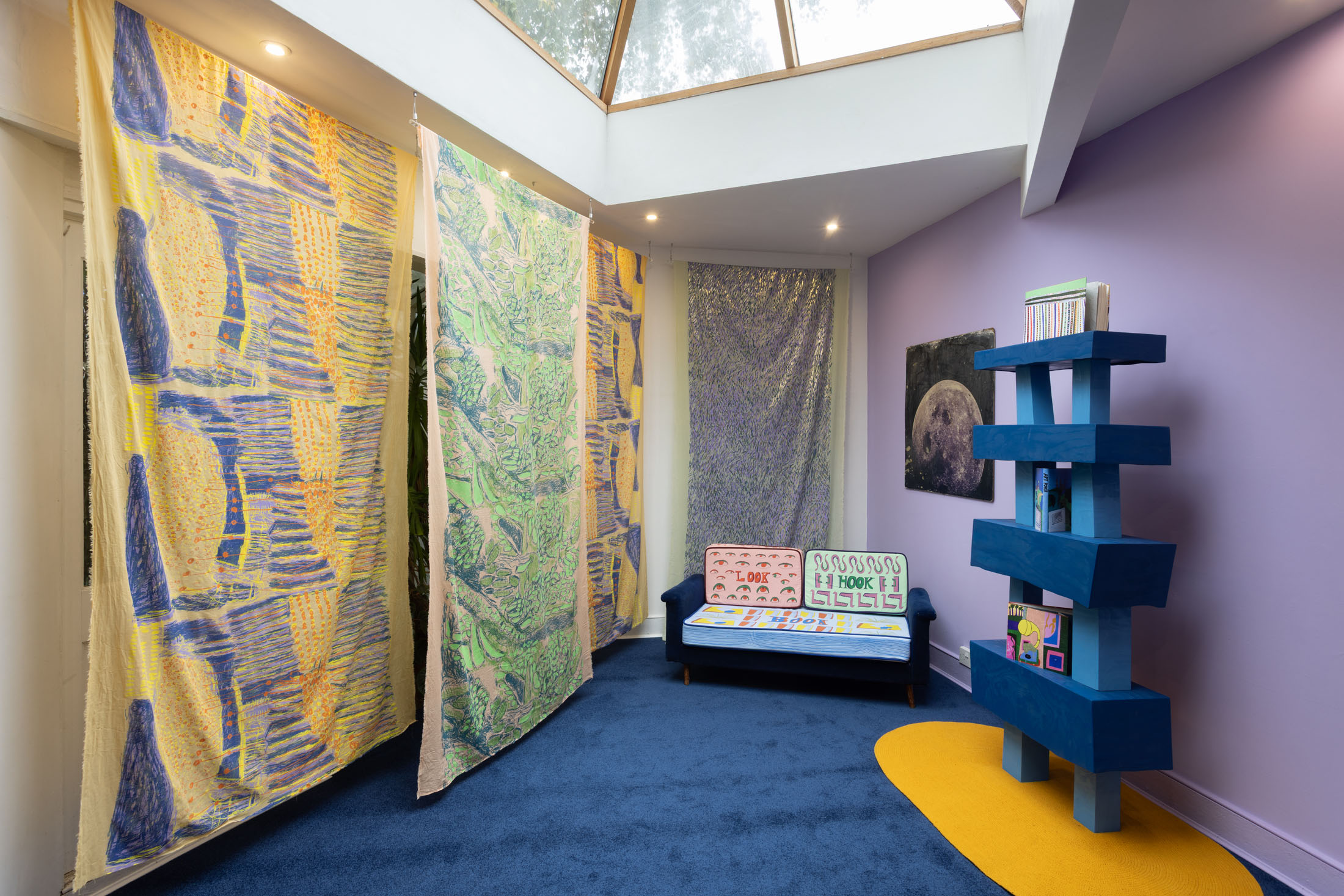 What Time is Love? is an exhibition created by six artists from Peckham based collective Intoart responding to the domestic space of Flat Time House, the studio home of artist John Latham (1921– 2006). Incorporating textiles, furniture, book works, drawing, painting, sculptural garments and photography, the artworks in What Time is Love? speak in chorus about moments of connection and belonging.