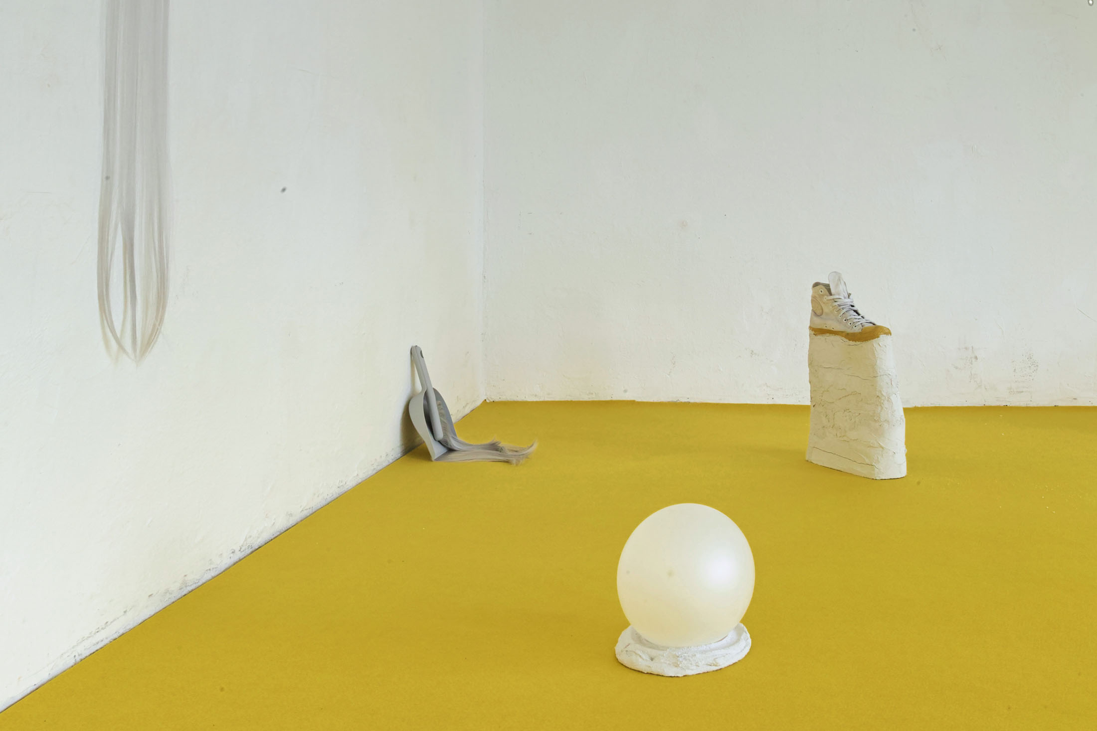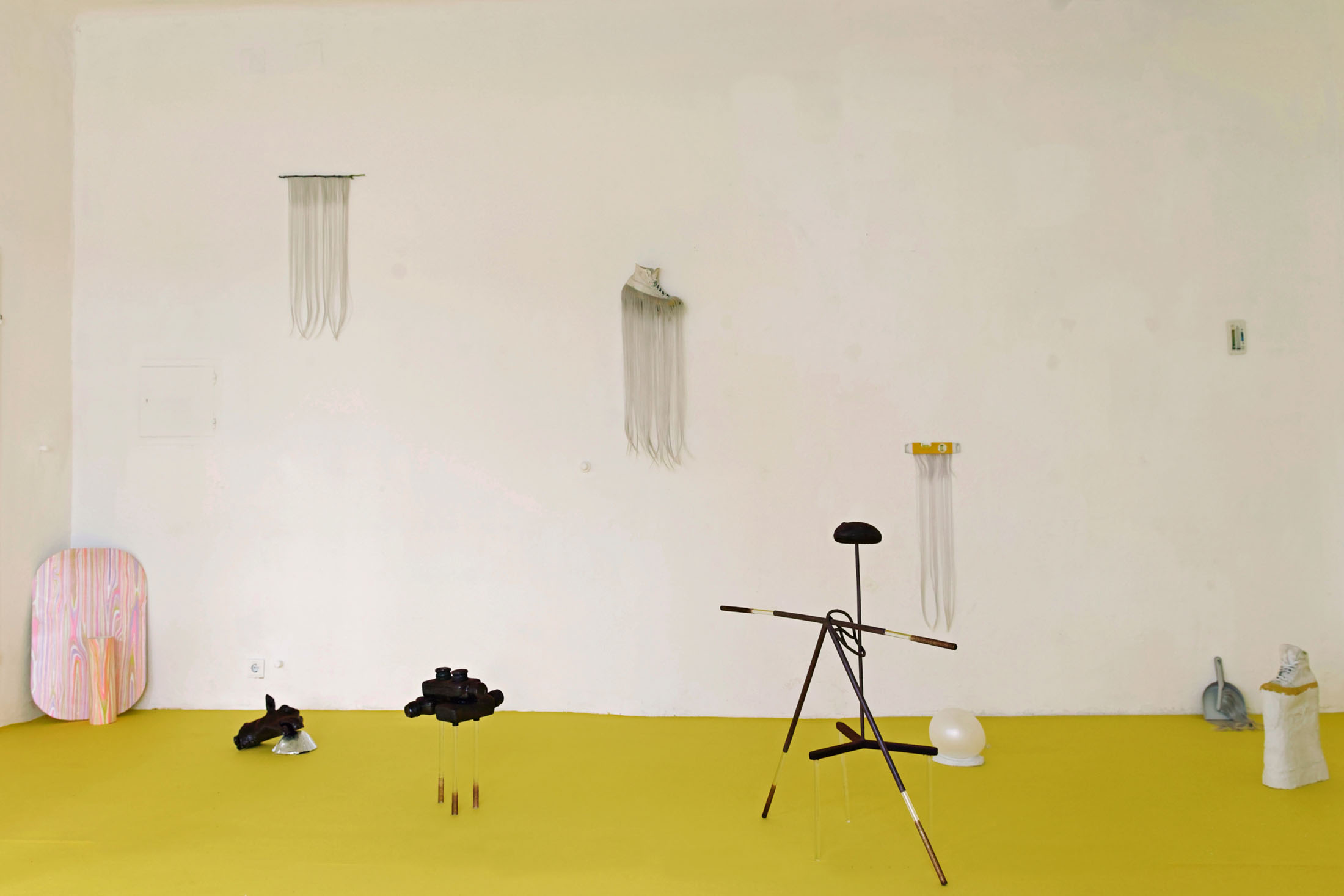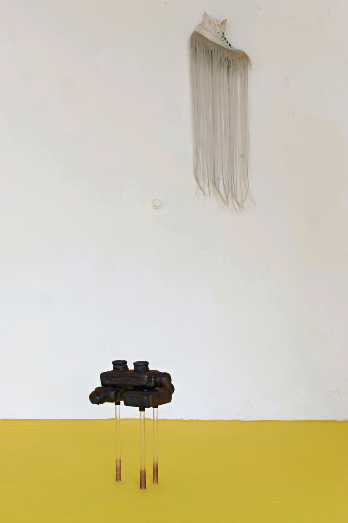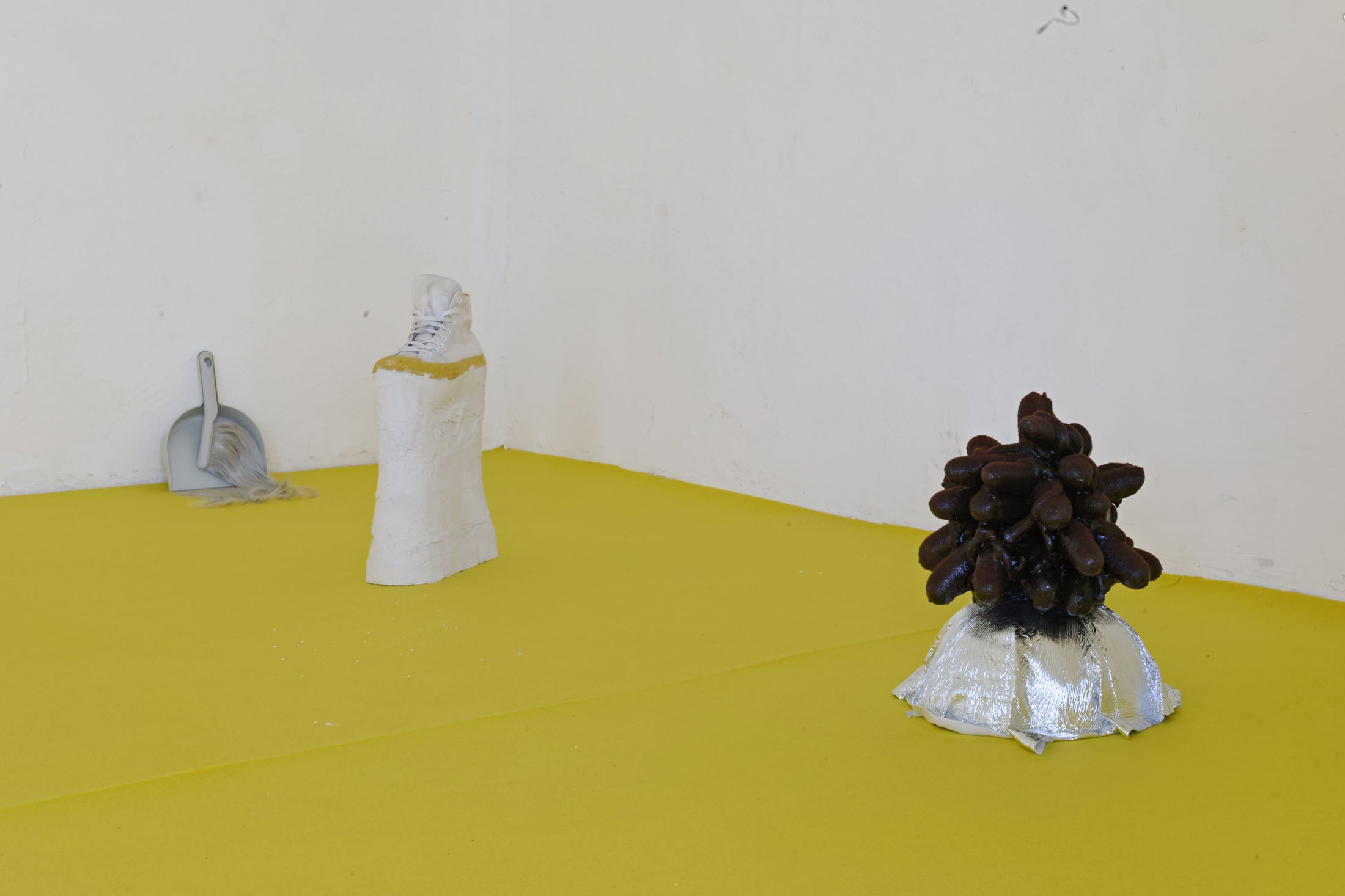 Rubber Souls is an exhibition by Viennese artists Anny Wass and Wolfgang Obermair. The two come together in the Salzburg art space periscope to explore shared aspects of their work: materiality, surface, environment, and animism. Their positions materialize the handling of things as physical and social presence, countering modern alienation with a “Parliament of Things” (Bruno Latour). The title “Rubber Souls” connects the flexibility of rubber—a stretchable, cartoon-like material—with the profoundly anti-modern concept of the soul. The secret subtitle of the exhibition is the cover image of the invitation, a work by Anny Wass, which depicts a plastic bottle with the inscription “Universal Solution.” The title and motif of the exhibition not only reference a dialogical principle but also formulate a positive claim that at least shows the journey continues.