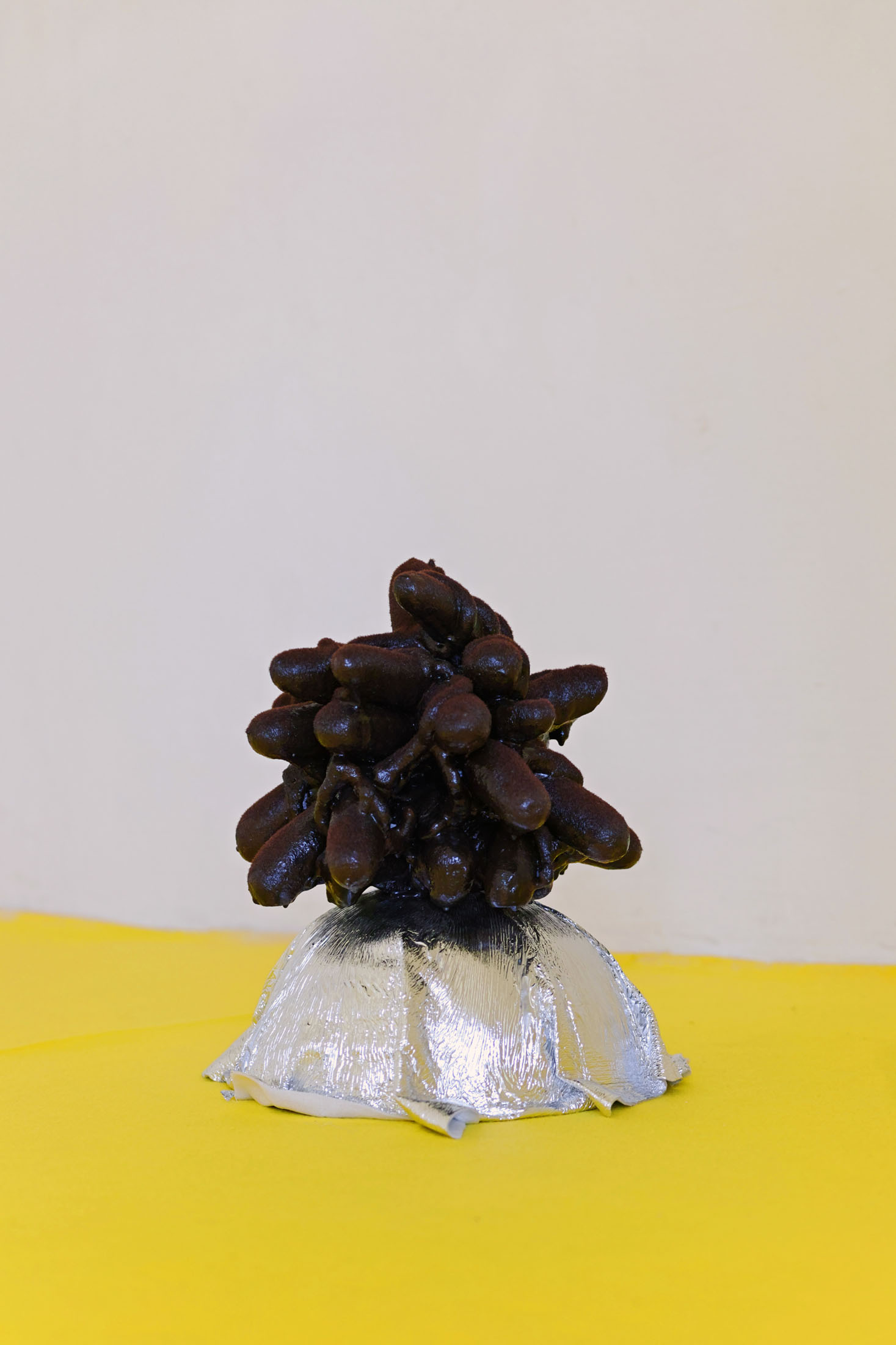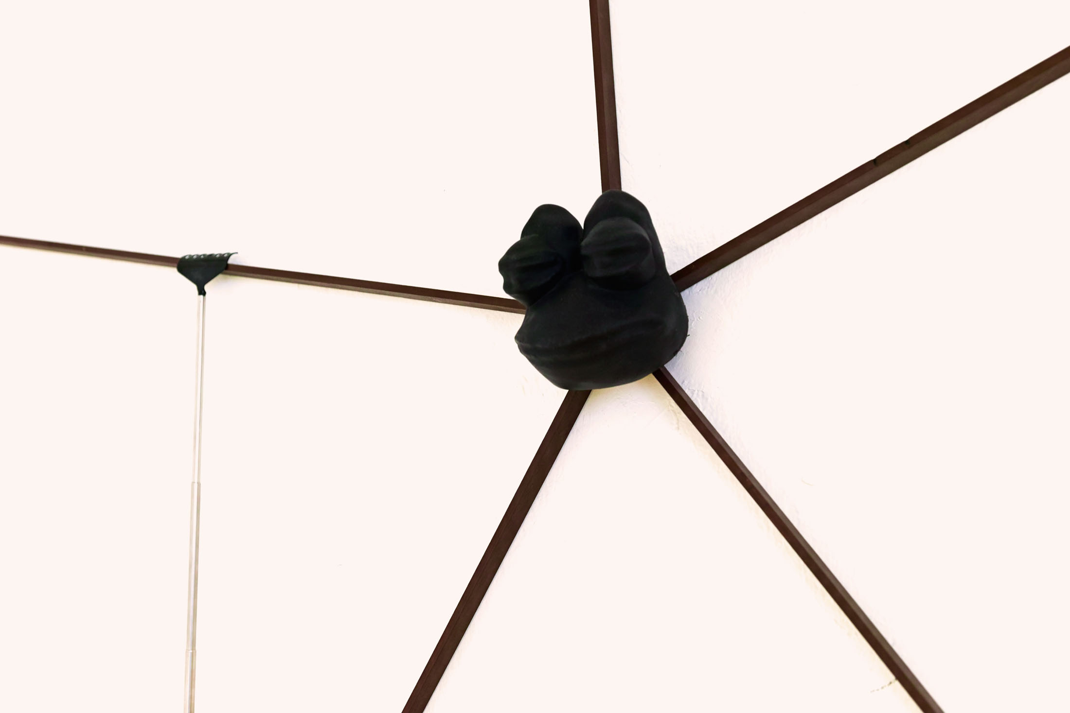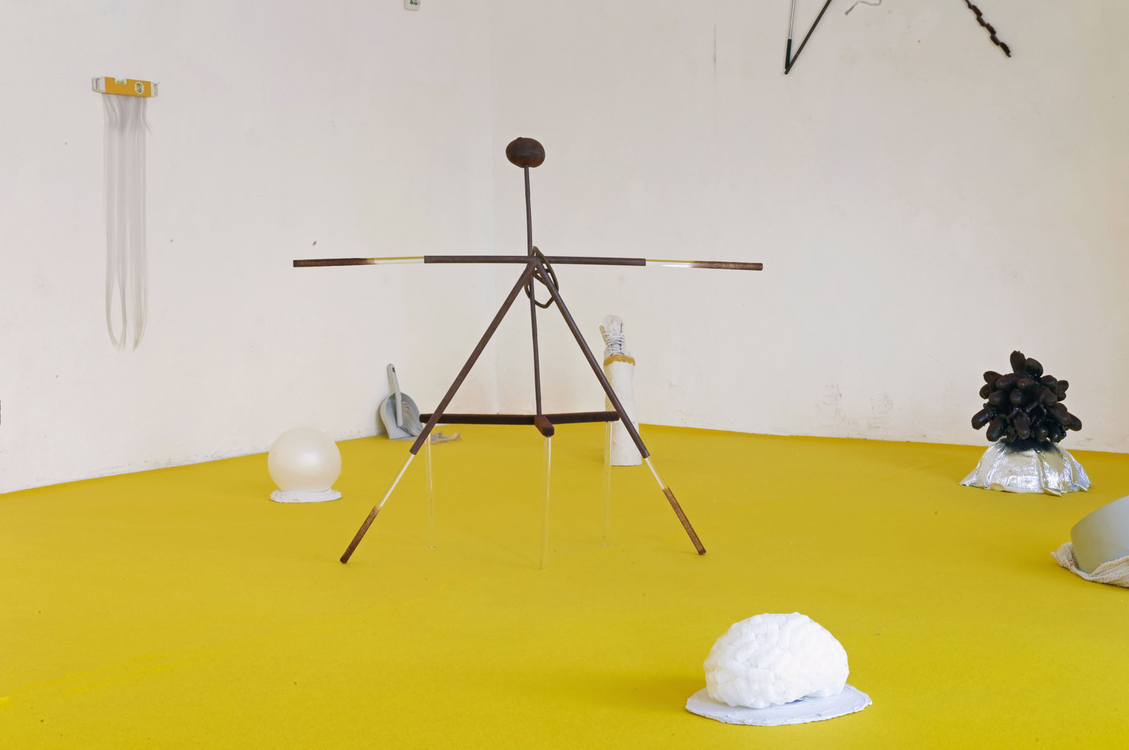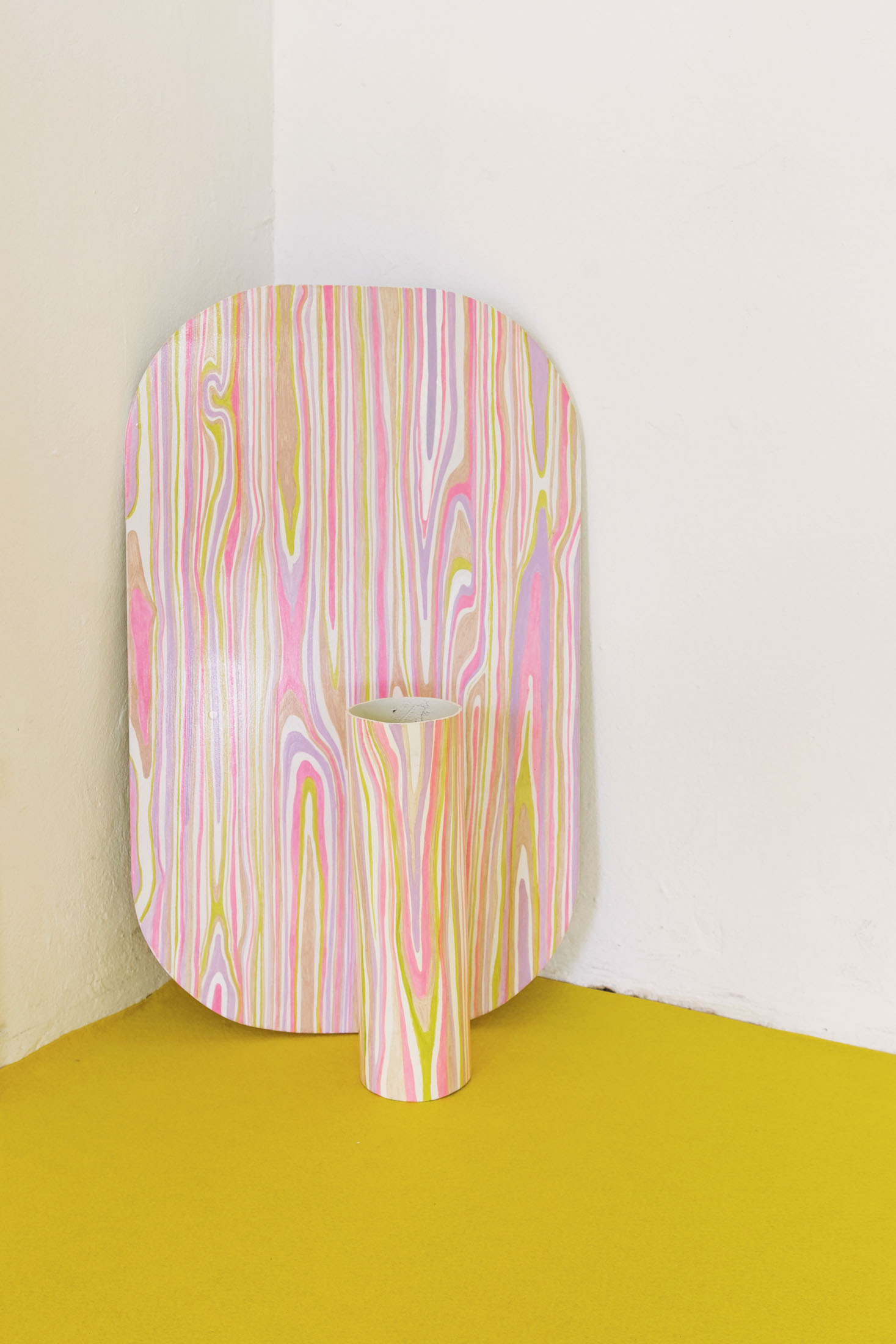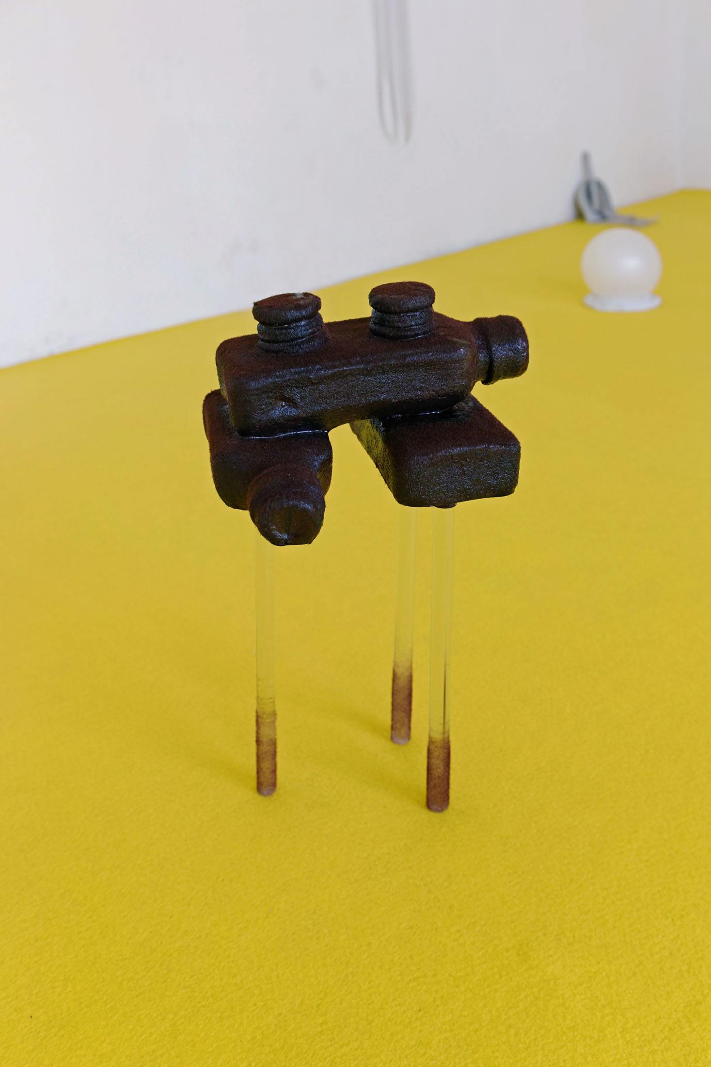 Rubber Souls is an exhibition by Viennese artists Anny Wass and Wolfgang Obermair. The two come together in the Salzburg art space periscope to explore shared aspects of their work: materiality, surface, environment, and animism. Their positions materialize the handling of things as physical and social presence, countering modern alienation with a “Parliament of Things” (Bruno Latour). The title “Rubber Souls” connects the flexibility of rubber—a stretchable, cartoon-like material—with the profoundly anti-modern concept of the soul. The secret subtitle of the exhibition is the cover image of the invitation, a work by Anny Wass, which depicts a plastic bottle with the inscription “Universal Solution.” The title and motif of the exhibition not only reference a dialogical principle but also formulate a positive claim that at least shows the journey continues.