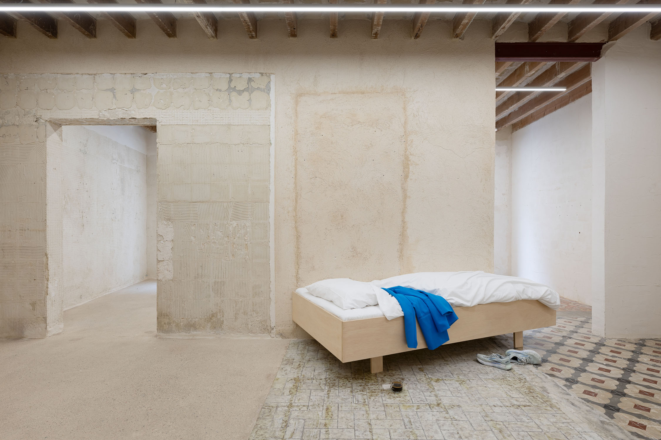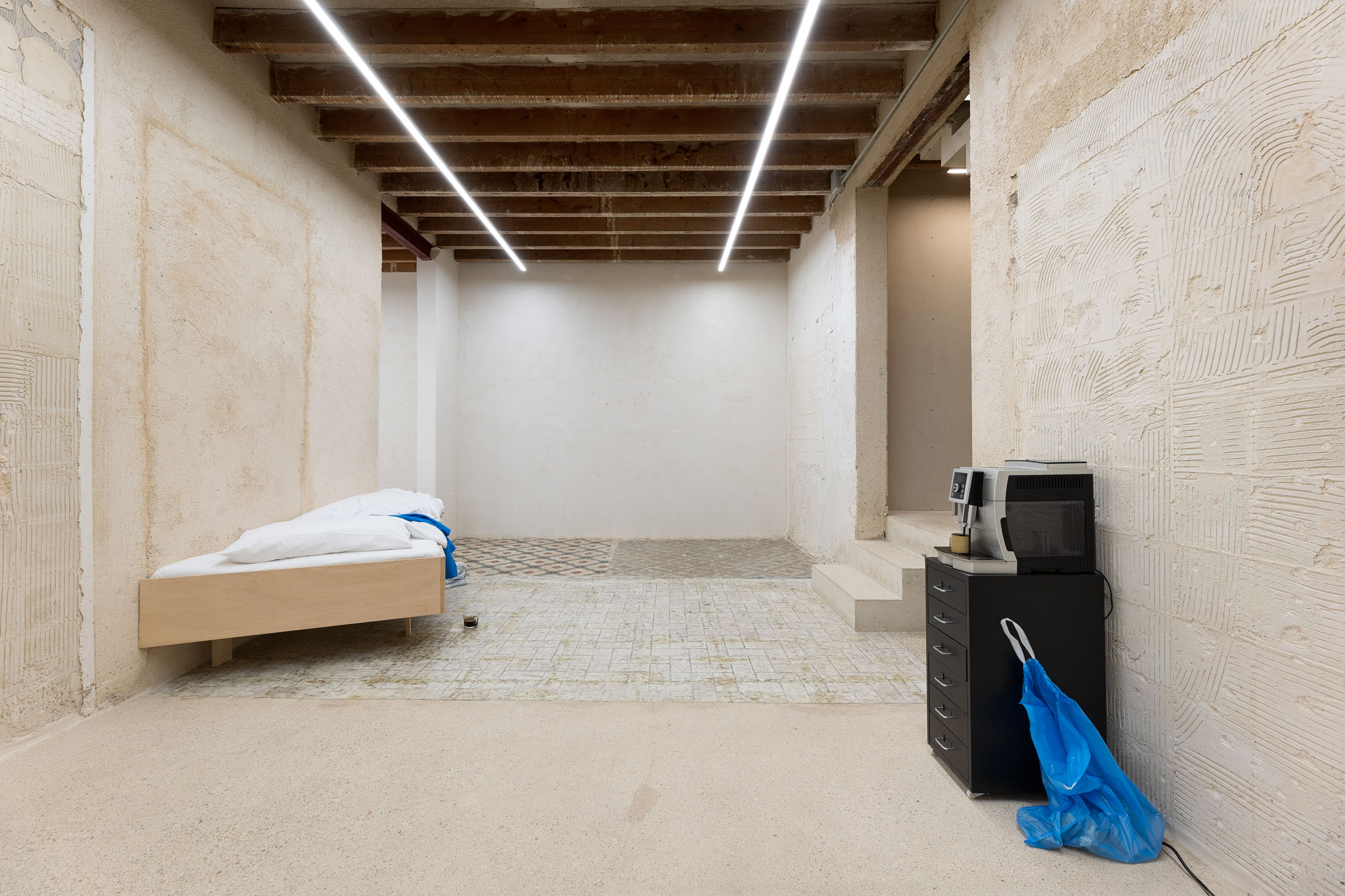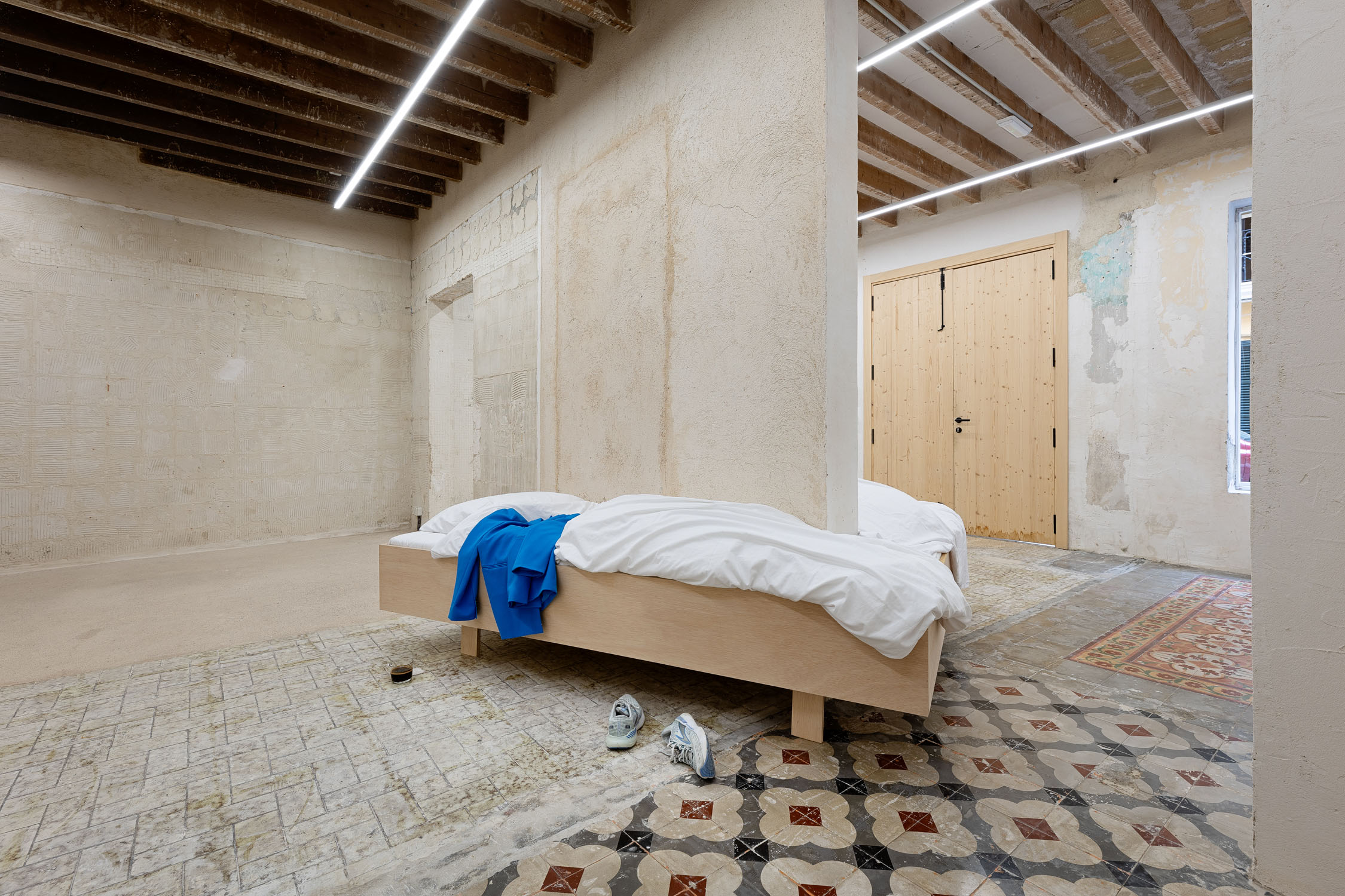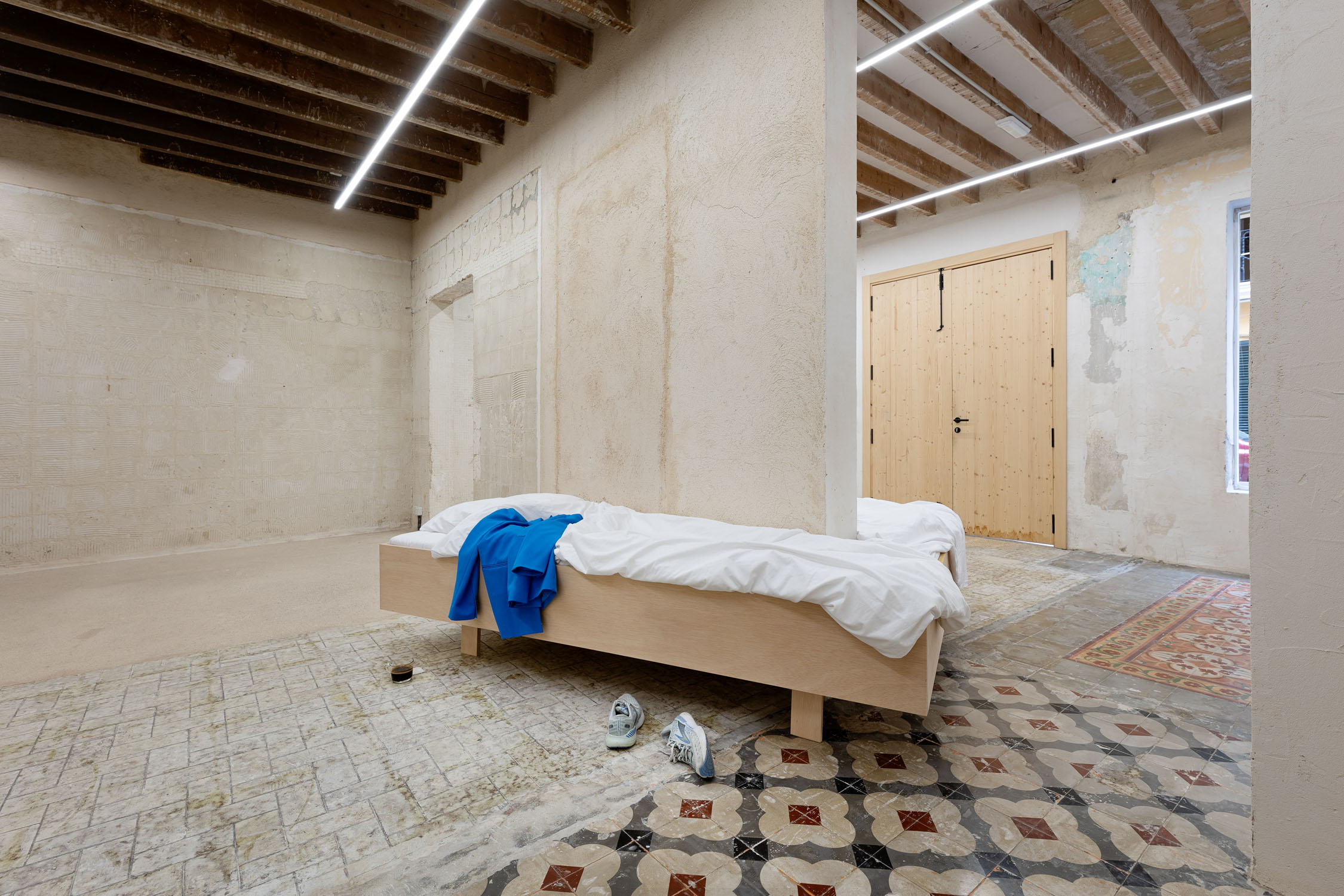 Objects are charged with a quiet but insistent energy. “Every object tells a story if you know how to read it,” said Barbara Kruger—and Lesniewski’s arrangements invite precisely that kind of slow, attentive reading, the more you read the room the more you can discover. Beds, fabrics, machines, structures—each becomes a vessel for something more than form; each carries a residue of use, of context, of coded meaning.