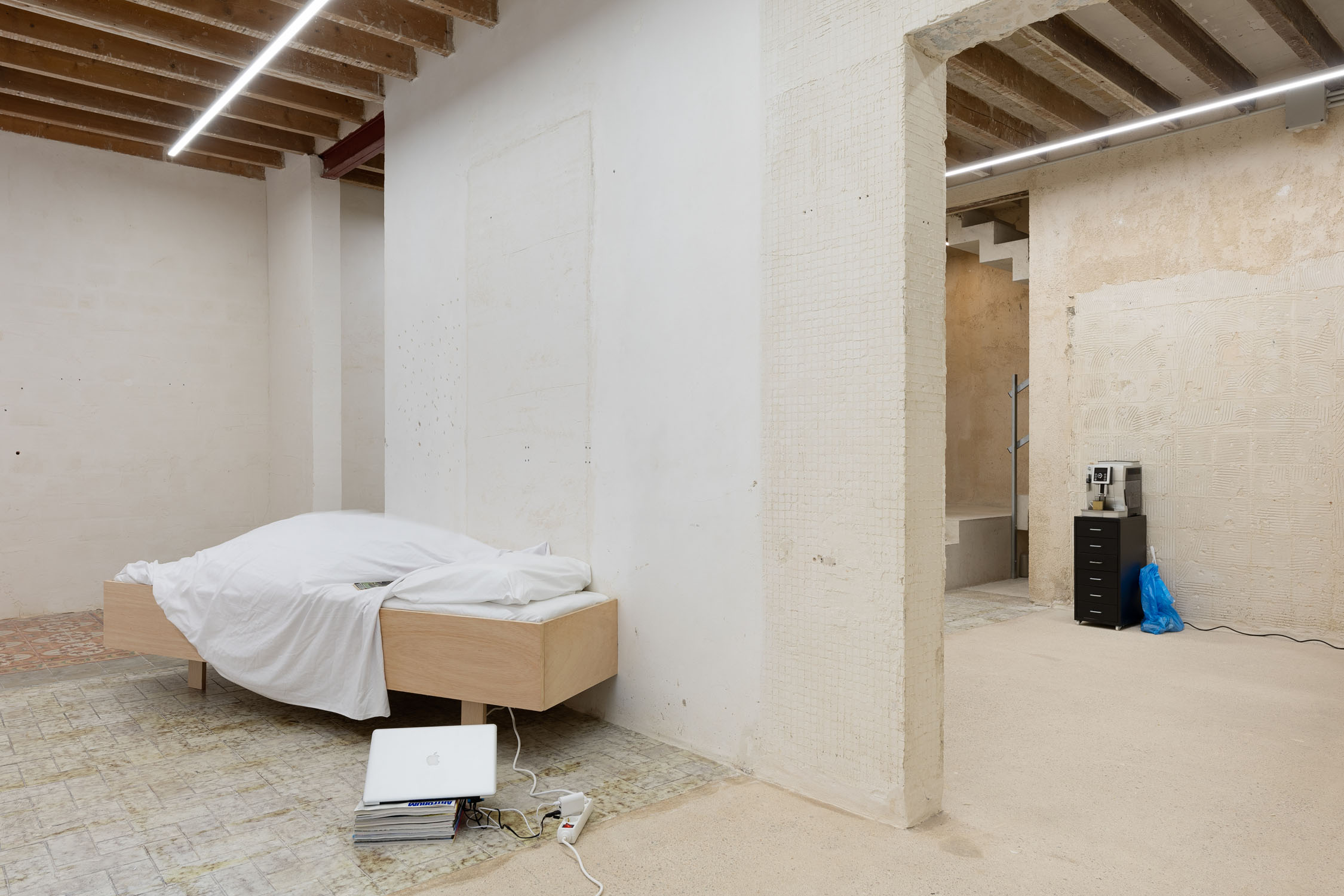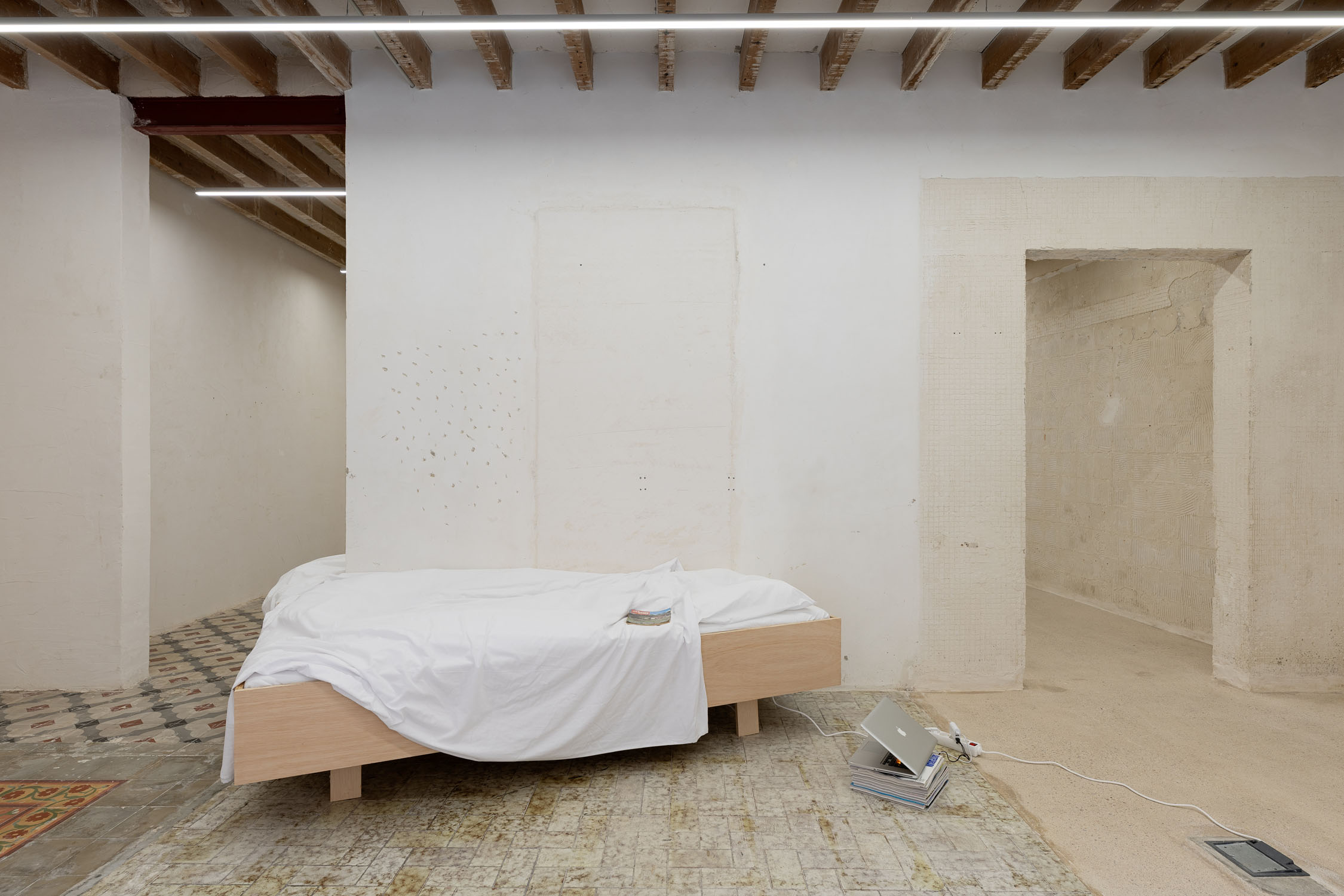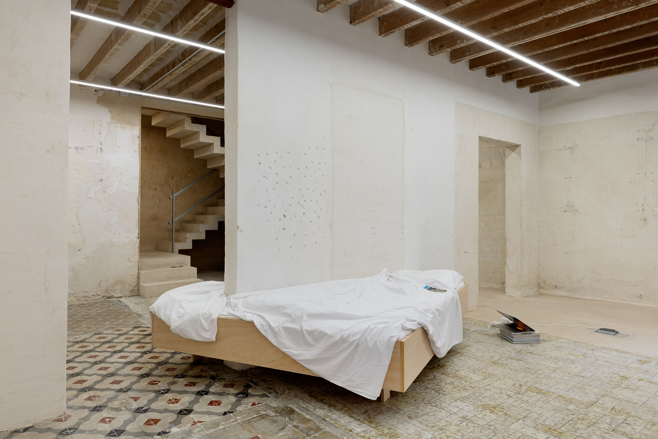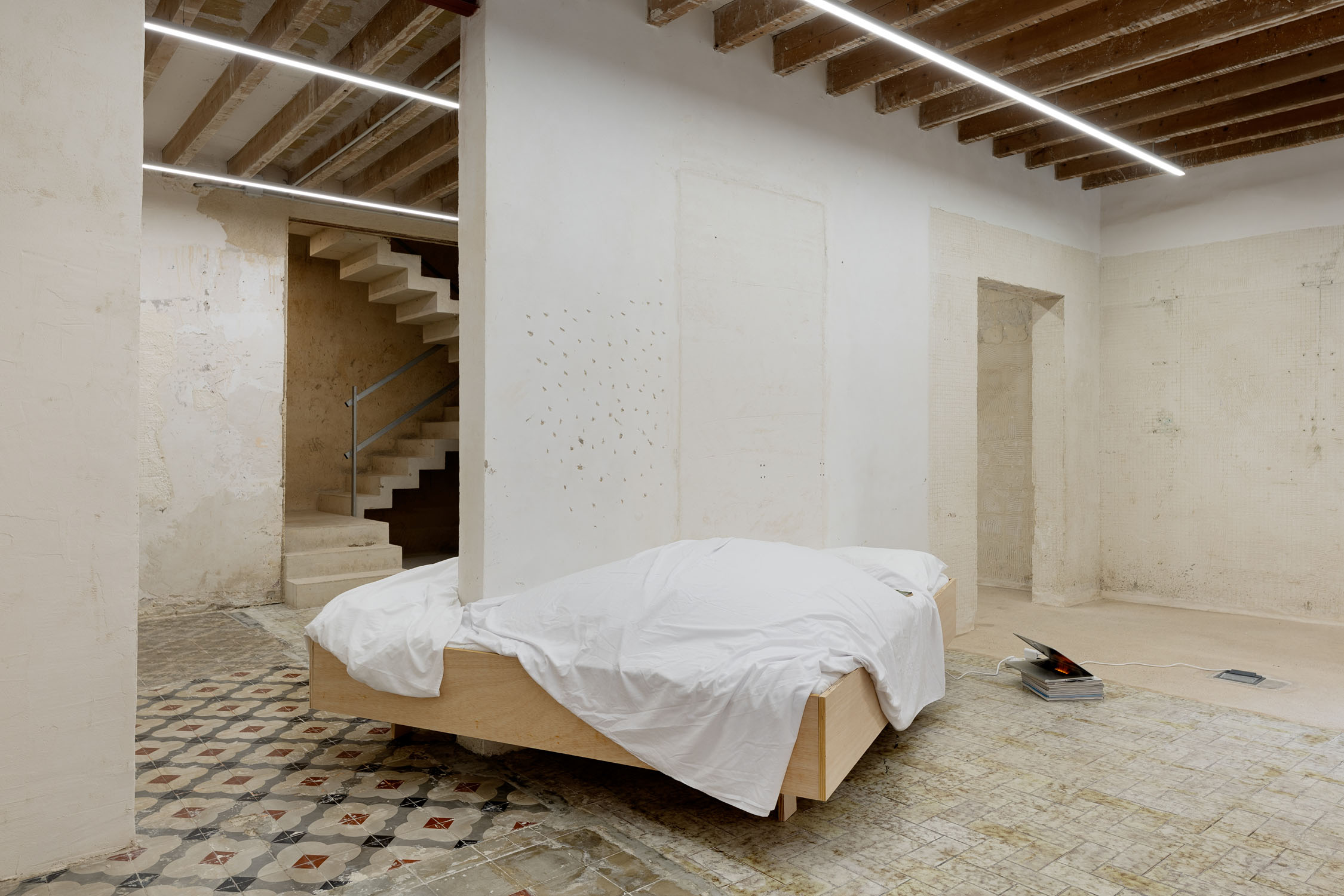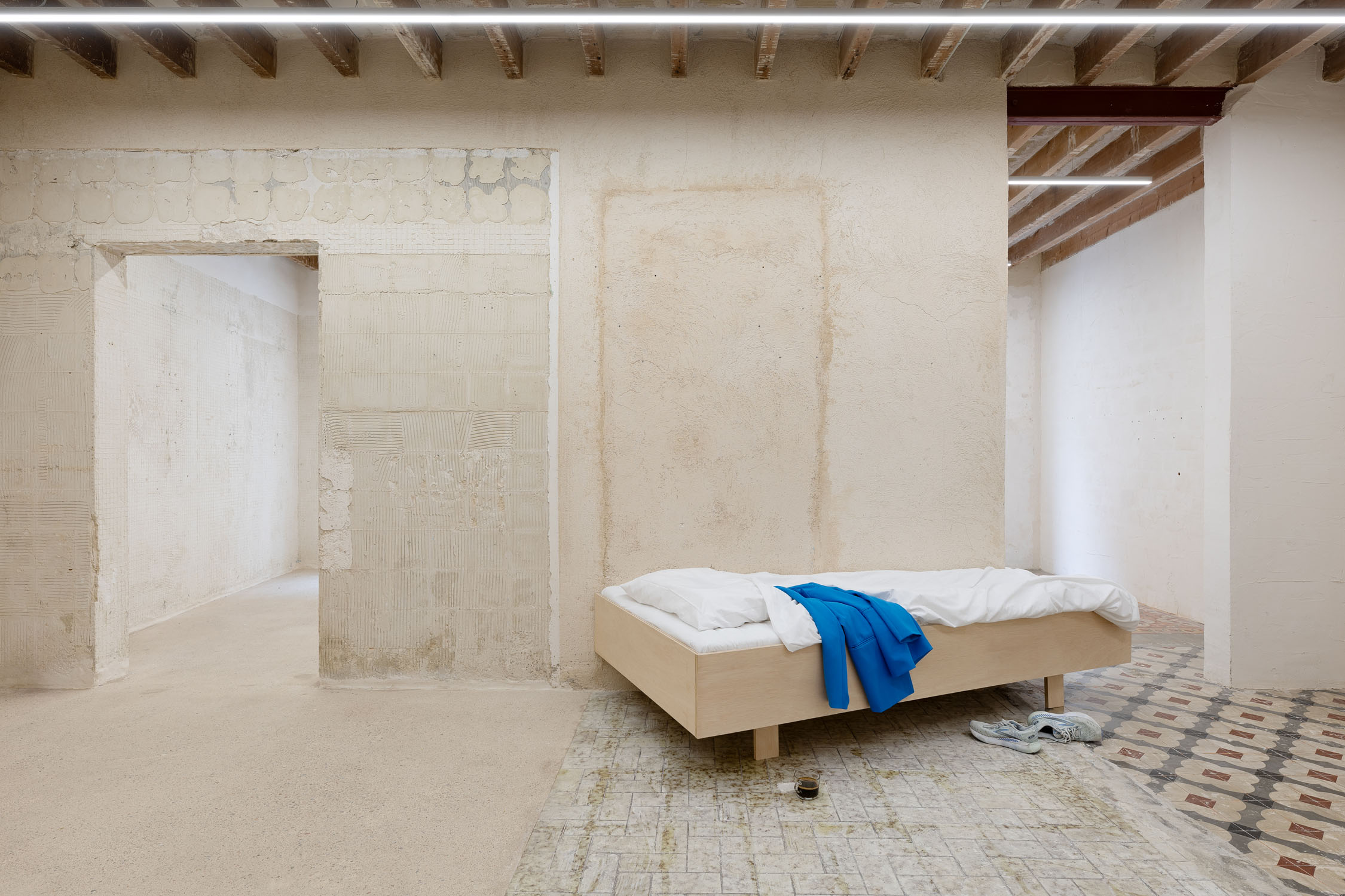 Objects are charged with a quiet but insistent energy. “Every object tells a story if you know how to read it,” said Barbara Kruger—and Lesniewski’s arrangements invite precisely that kind of slow, attentive reading, the more you read the room the more you can discover. Beds, fabrics, machines, structures—each becomes a vessel for something more than form; each carries a residue of use, of context, of coded meaning.
