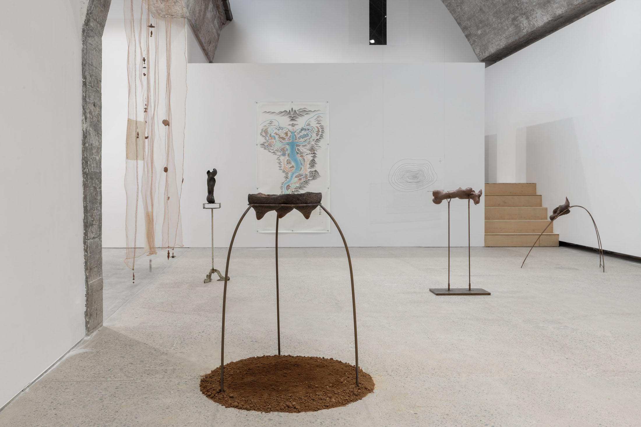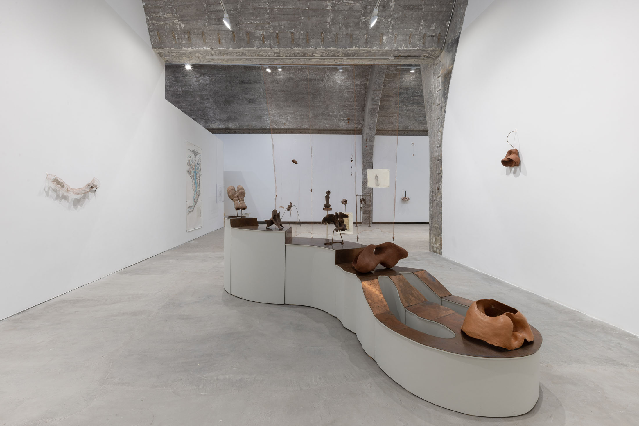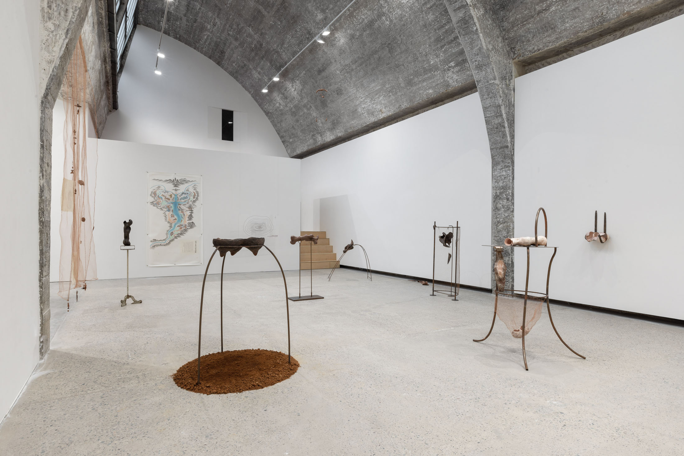 This exhibition presents a fake archeological site of Nuwa tomb, unfolding her obliterated traces through the discovered solid remains in the matrilineal pottery. Kneading clay is a technique both for making everyday utensils and as one of the earliest forms of artistic expression. The ancient pottery extends beyond the human body; the hollow part inside can hold nourishment for body and soul. Moreover, the pottery can serve as a vessel for wrapping the deceased. The counterpart for such a psychic artifact is the womb of the female. In the earliest moments of human history, the female body played a crucial role in ceremonies tied to collective unconscious events. As the creative wonder that can conceive life, female bodies have also served as a bridge and a teleport, the witch, for communication between the sky and the earth. Surrounded are the snakes, the primitive totem, whose shedding skins are associated with rebirth, as well as self-renewal and liberation