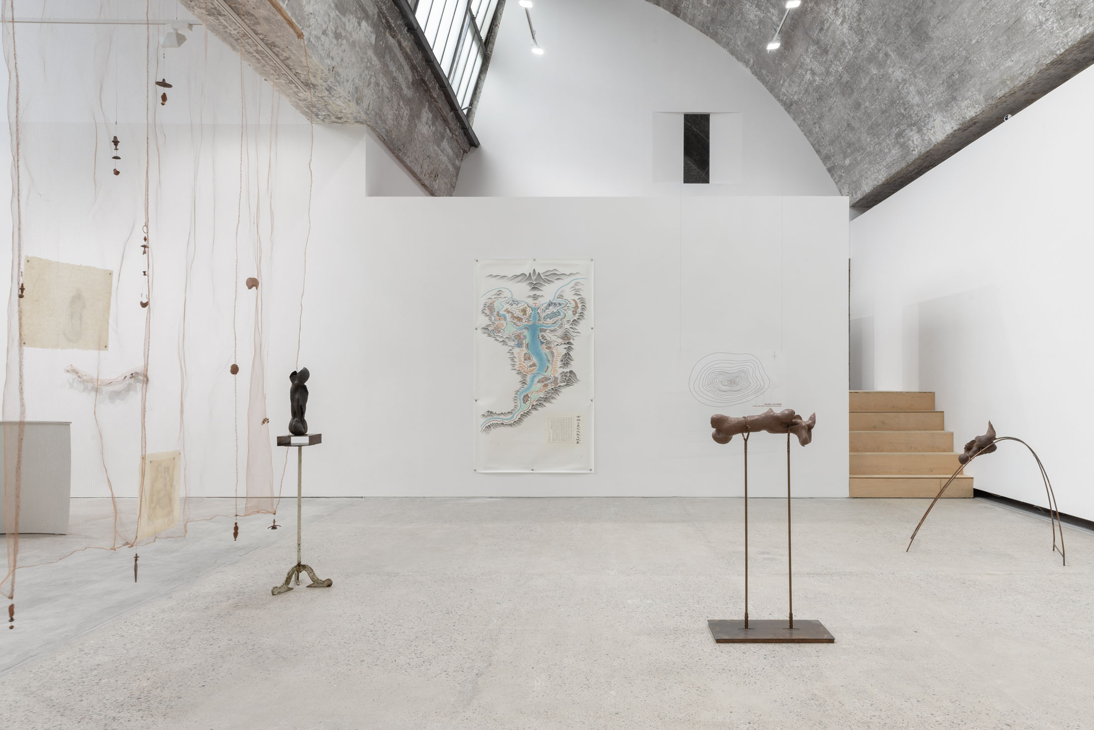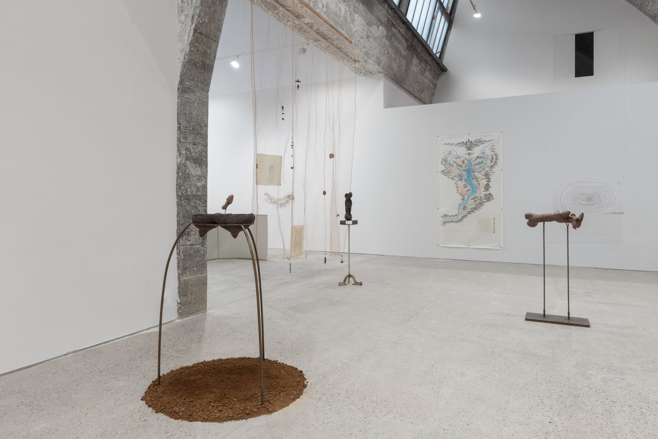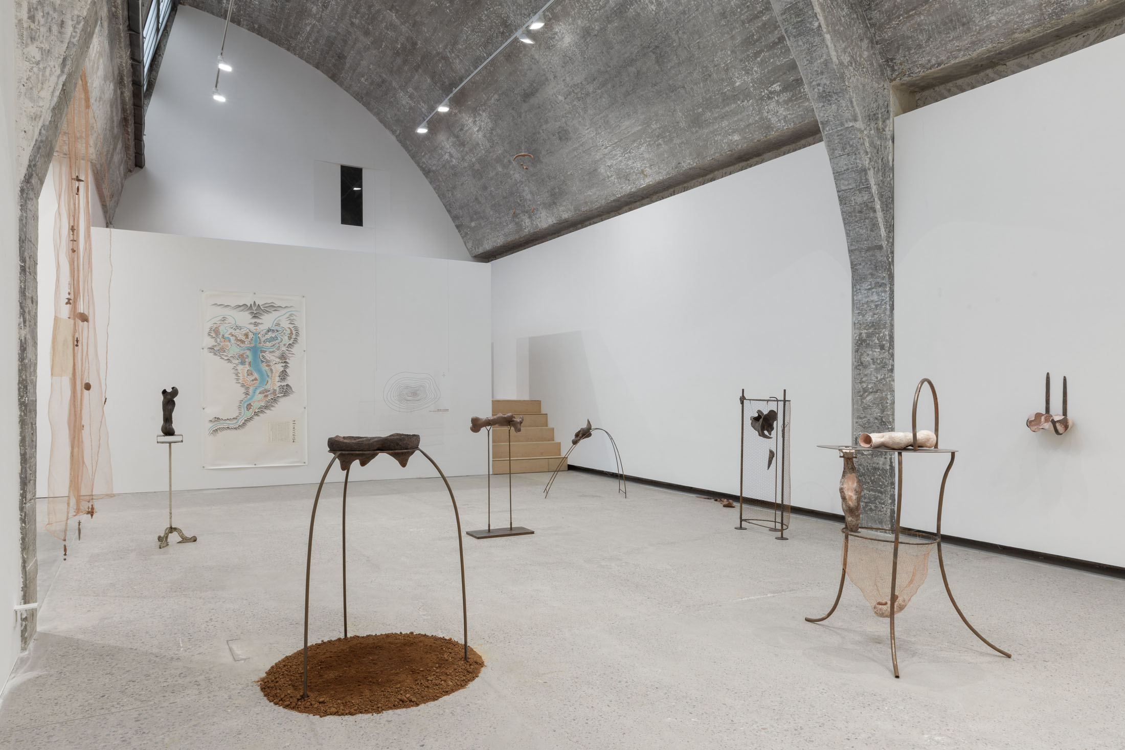 This exhibition presents a fake archeological site of Nuwa tomb, unfolding her obliterated traces through the discovered solid remains in the matrilineal pottery. Kneading clay is a technique both for making everyday utensils and as one of the earliest forms of artistic expression. The ancient pottery extends beyond the human body; the hollow part inside can hold nourishment for body and soul. Moreover, the pottery can serve as a vessel for wrapping the deceased. The counterpart for such a psychic artifact is the womb of the female. In the earliest moments of human history, the female body played a crucial role in ceremonies tied to collective unconscious events. As the creative wonder that can conceive life, female bodies have also served as a bridge and a teleport, the witch, for communication between the sky and the earth. Surrounded are the snakes, the primitive totem, whose shedding skins are associated with rebirth, as well as self-renewal and liberation