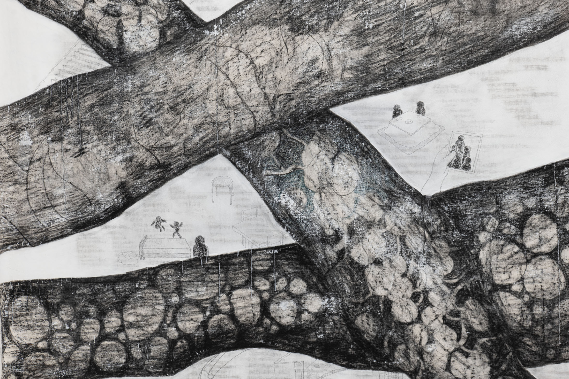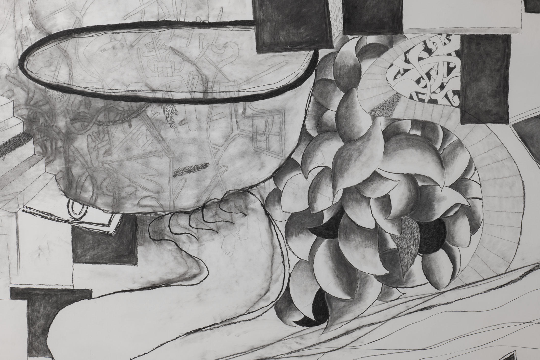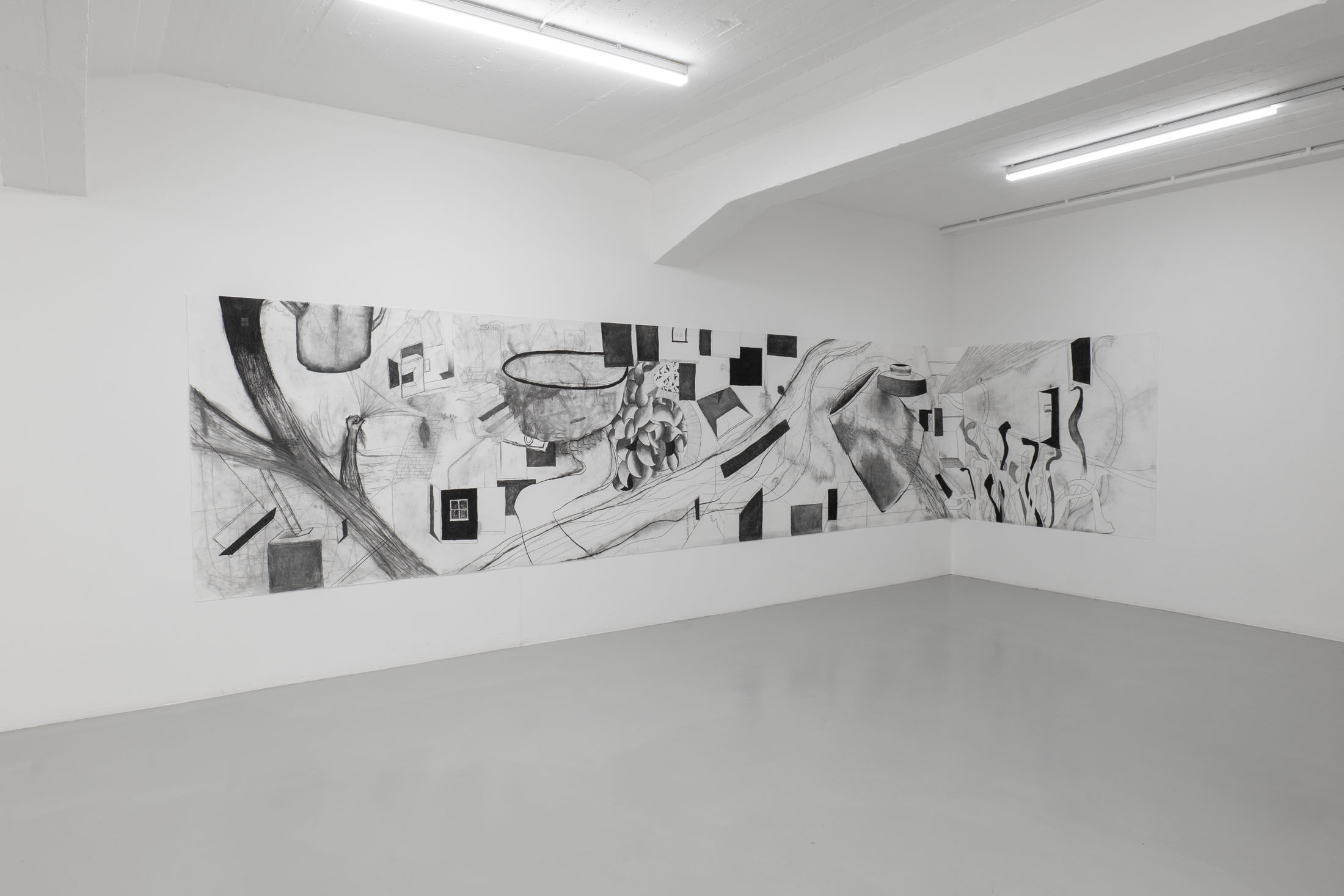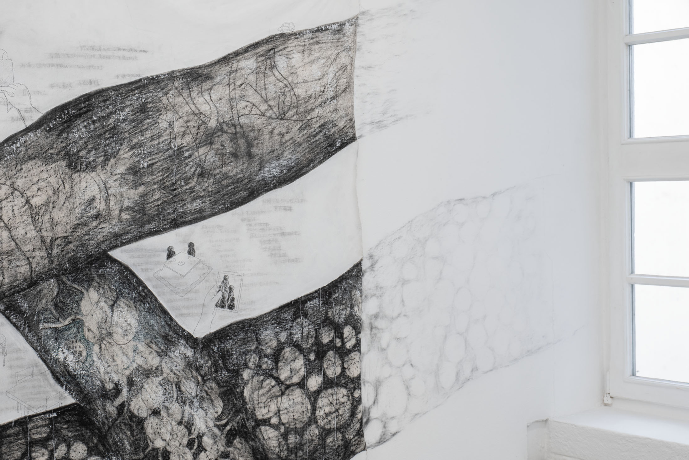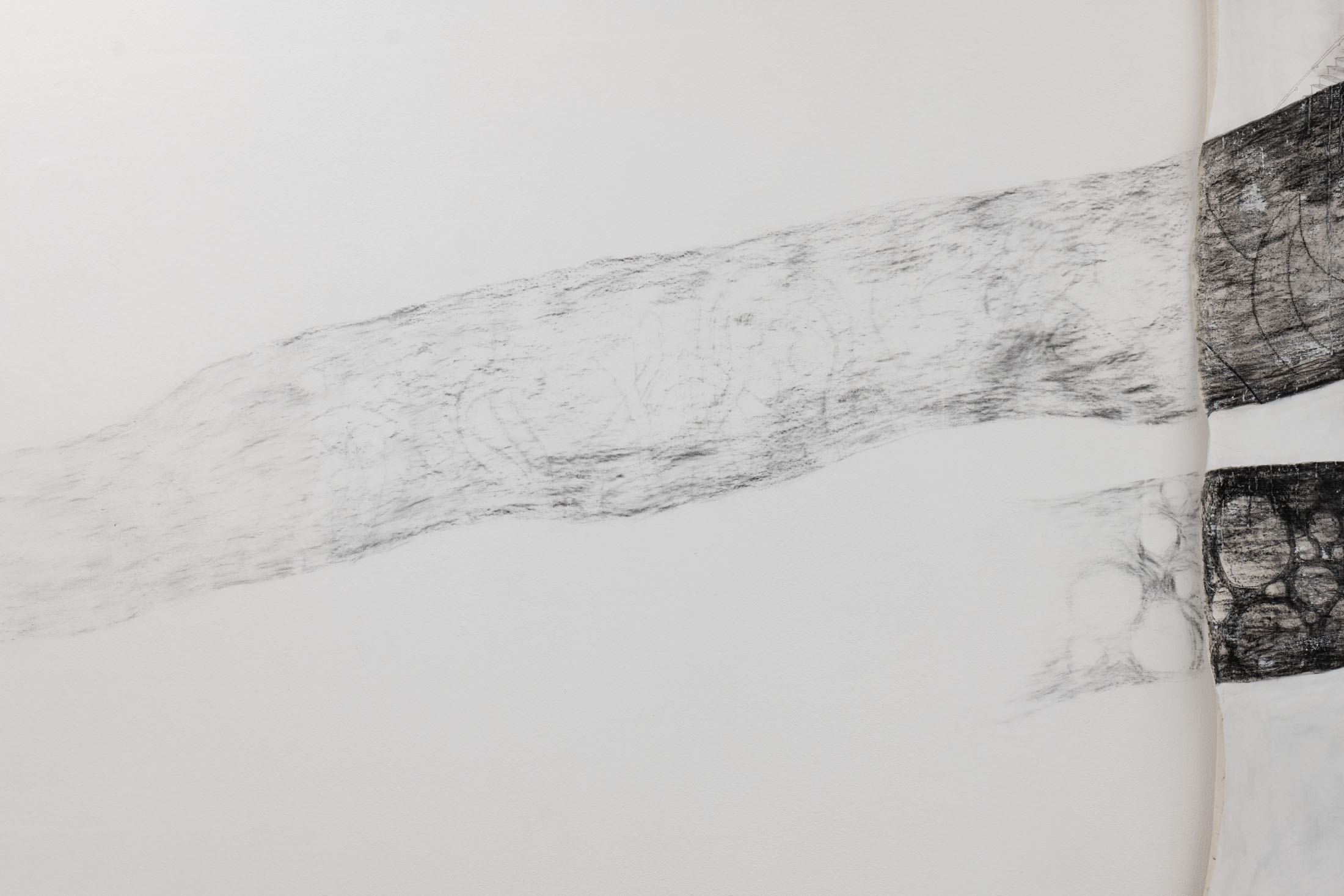 Seto not only draws her current thoughts and experiences, but also uses drawing as a form of remembrance: initially abstract lines give rise to fragments of memories of her friend and aunt, who passed away last year. Seto weaves these fragments of memory into meter-long charcoal drawings in a creative process lasting several months. Seto is just as interested in the traces of memory as she is in the traces of charcoal on the drawing surface.