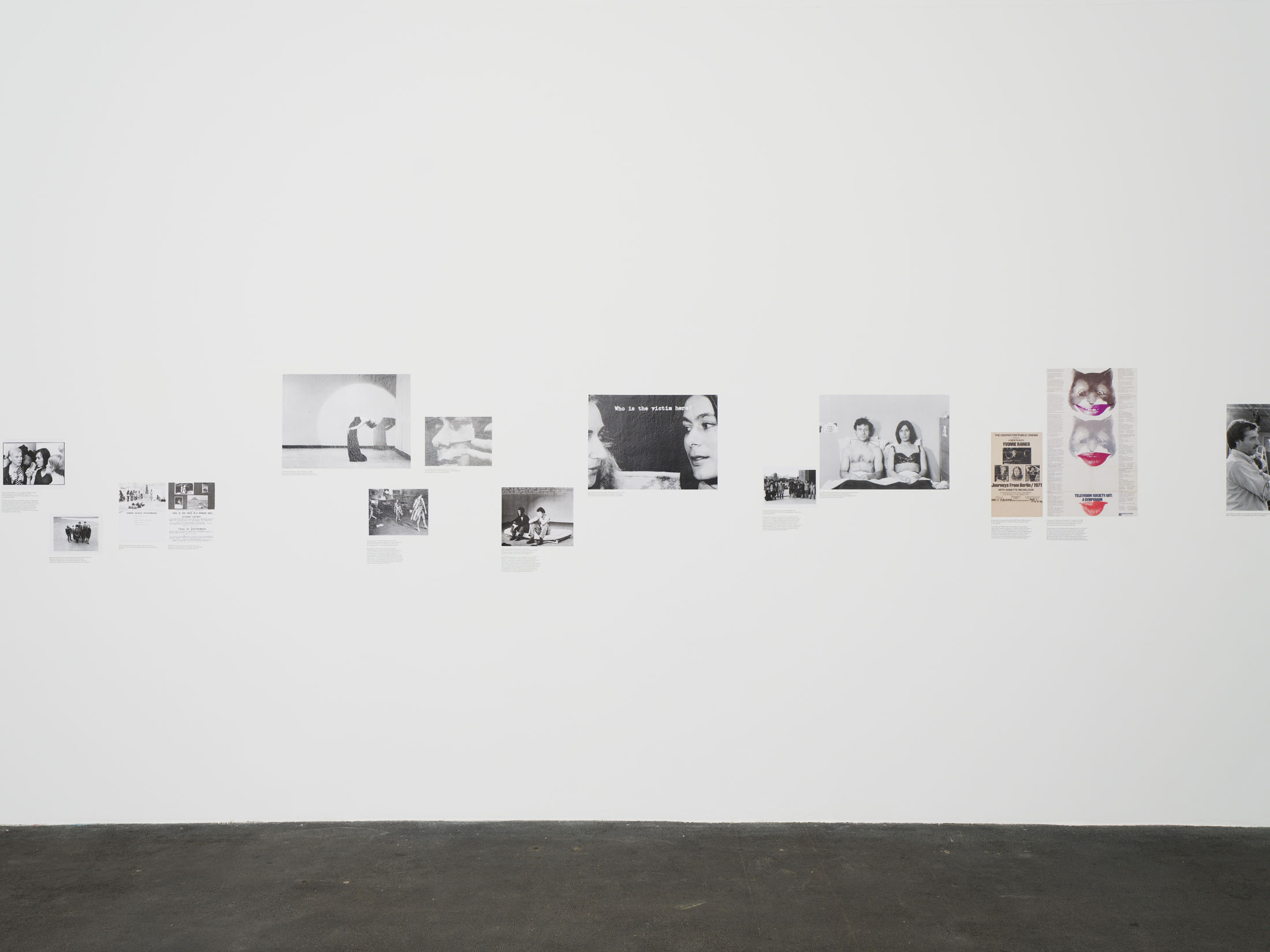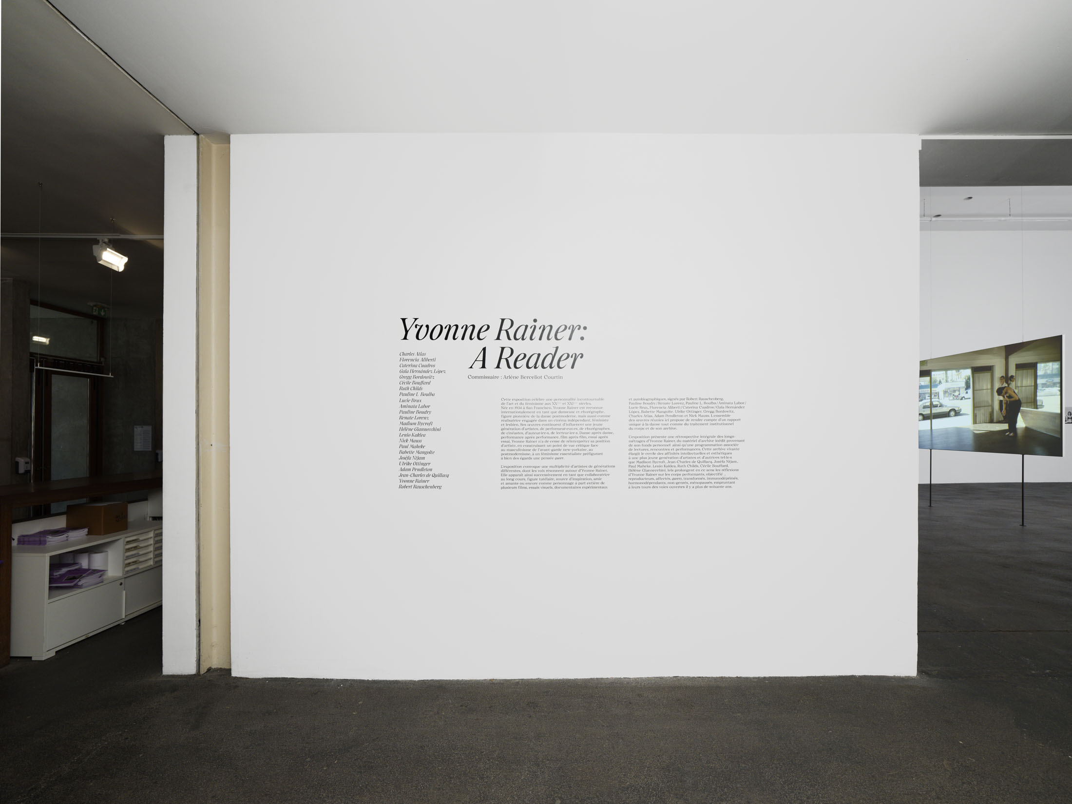 Though it might look like a solo exhibition, it assembles a multiplicity of artists, performers and researchers whose voices resonate around Yvonne Rainer. The exhibition also offers a complete retrospective of Yvonne Rainer’s feature films, as well as material from her personal archives, and a