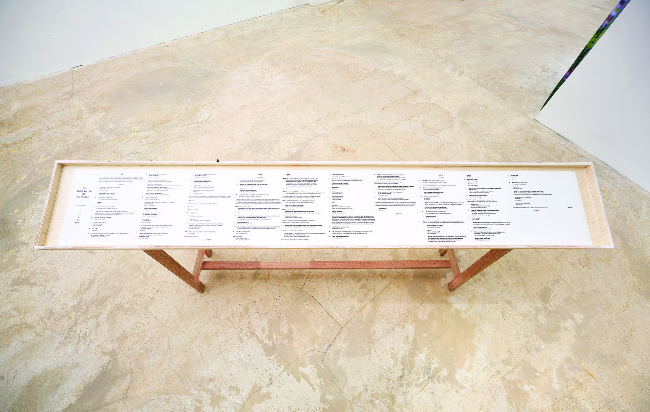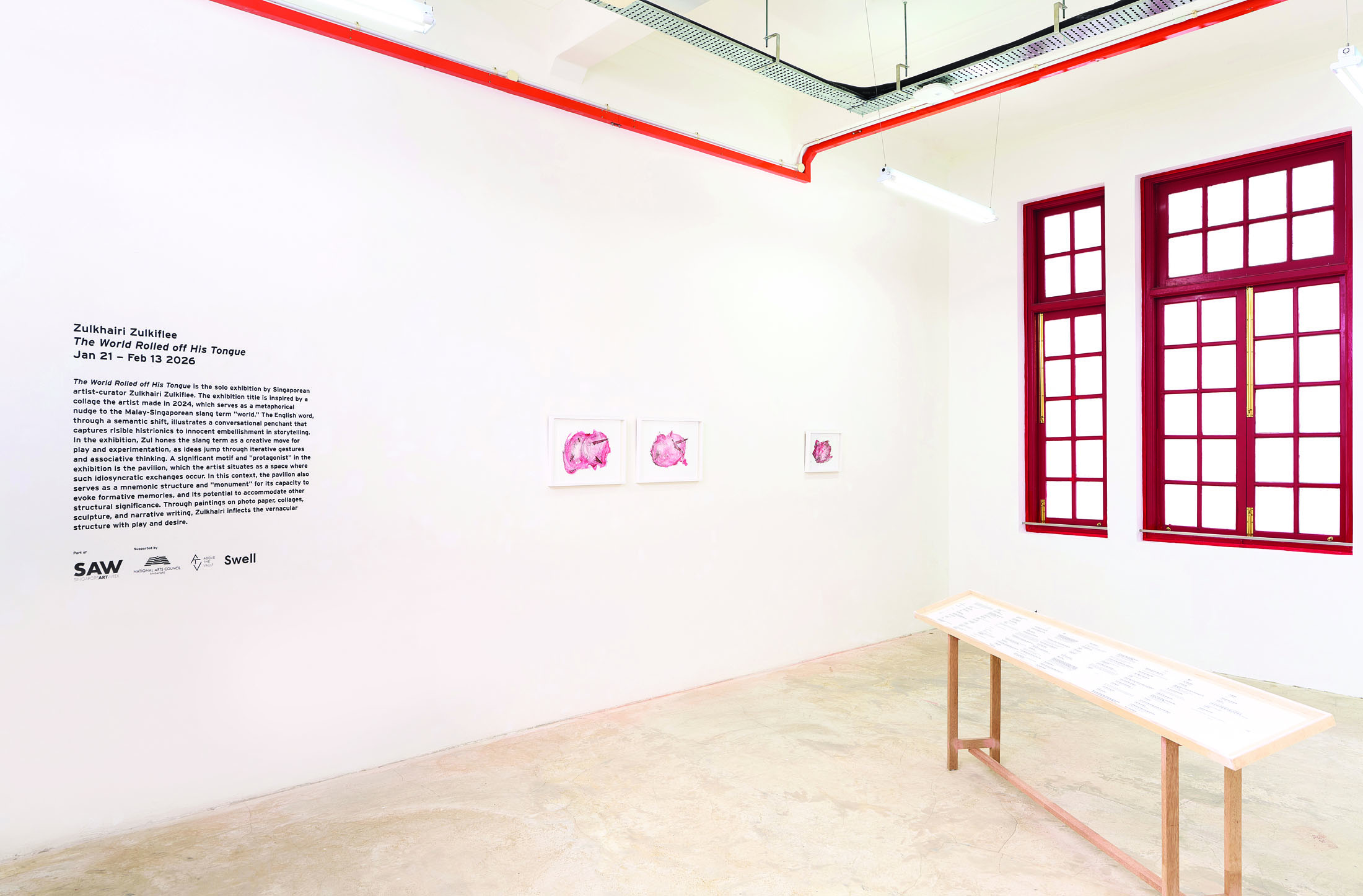 The World Rolled off His Tongue is the solo exhibition by Singaporean artist-curator Zulkhairi Zulkiflee. The exhibition title is inspired by a collage the artist made in 2024, which serves as a metaphorical nudge to the Malay-Singaporean slang term “world.” The English word, through a semantic shift, illustrates a conversational penchant that captures risible histrionics to innocent embellishment in storytelling.